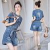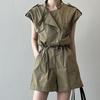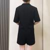 [Stock Listo] Verano 2024 Traje Mono Estilo Mc Cuello V Negro Estilo Coreano Holgado Casual Para Viajar Pantalones Cortos