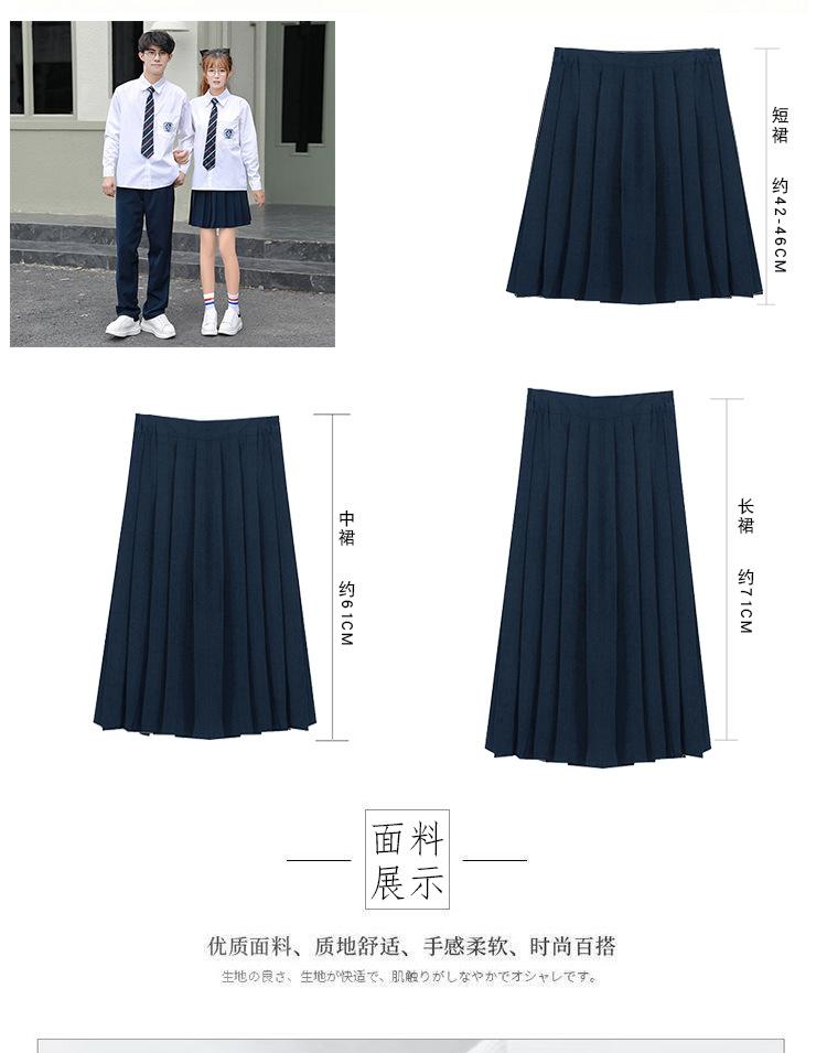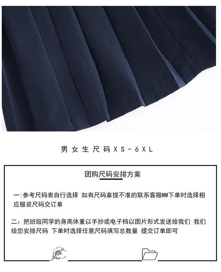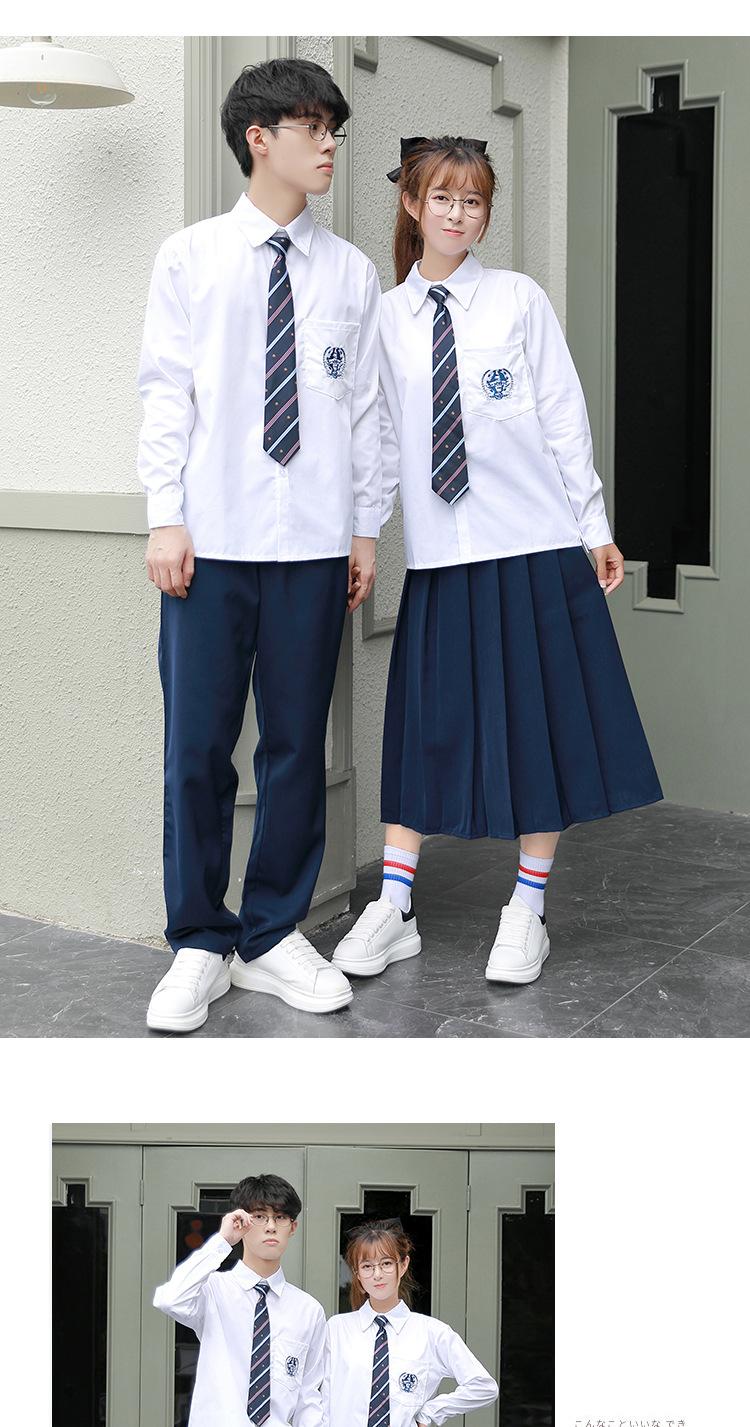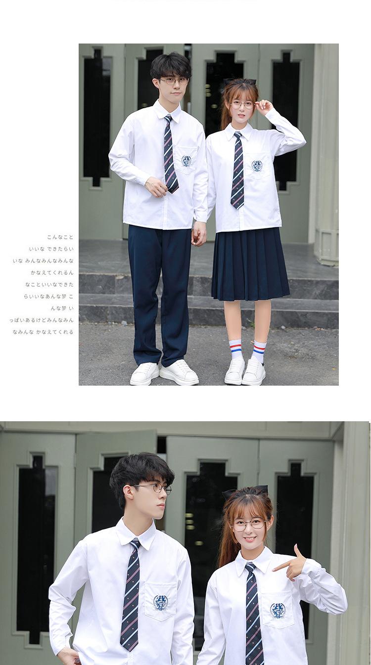 Men's long-sleeved shirt + trousers + tie, Women's long sleeve + tie + skirt, Women's long sleeve + tie + mid ...