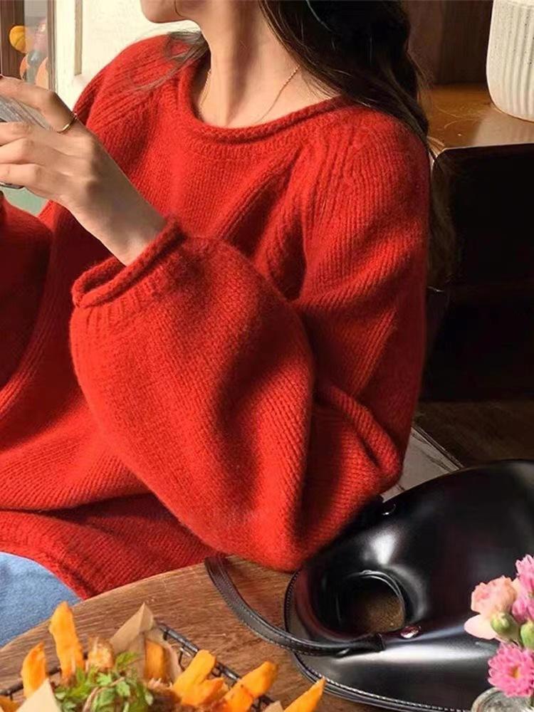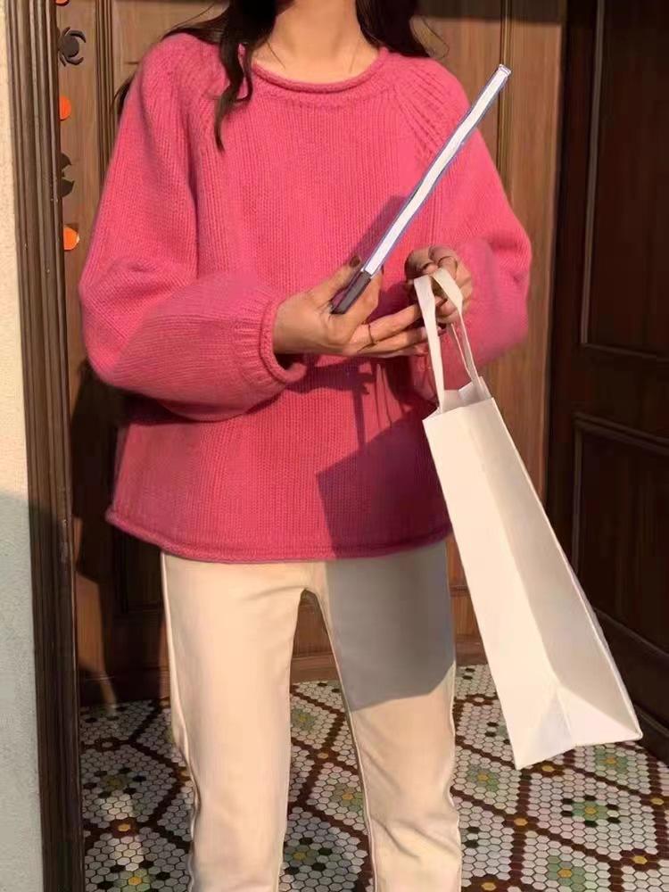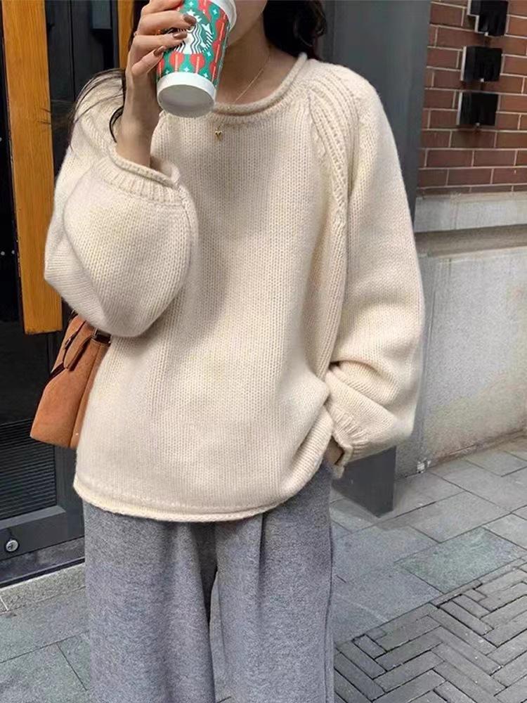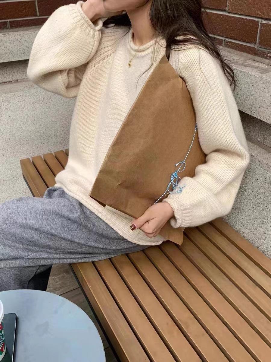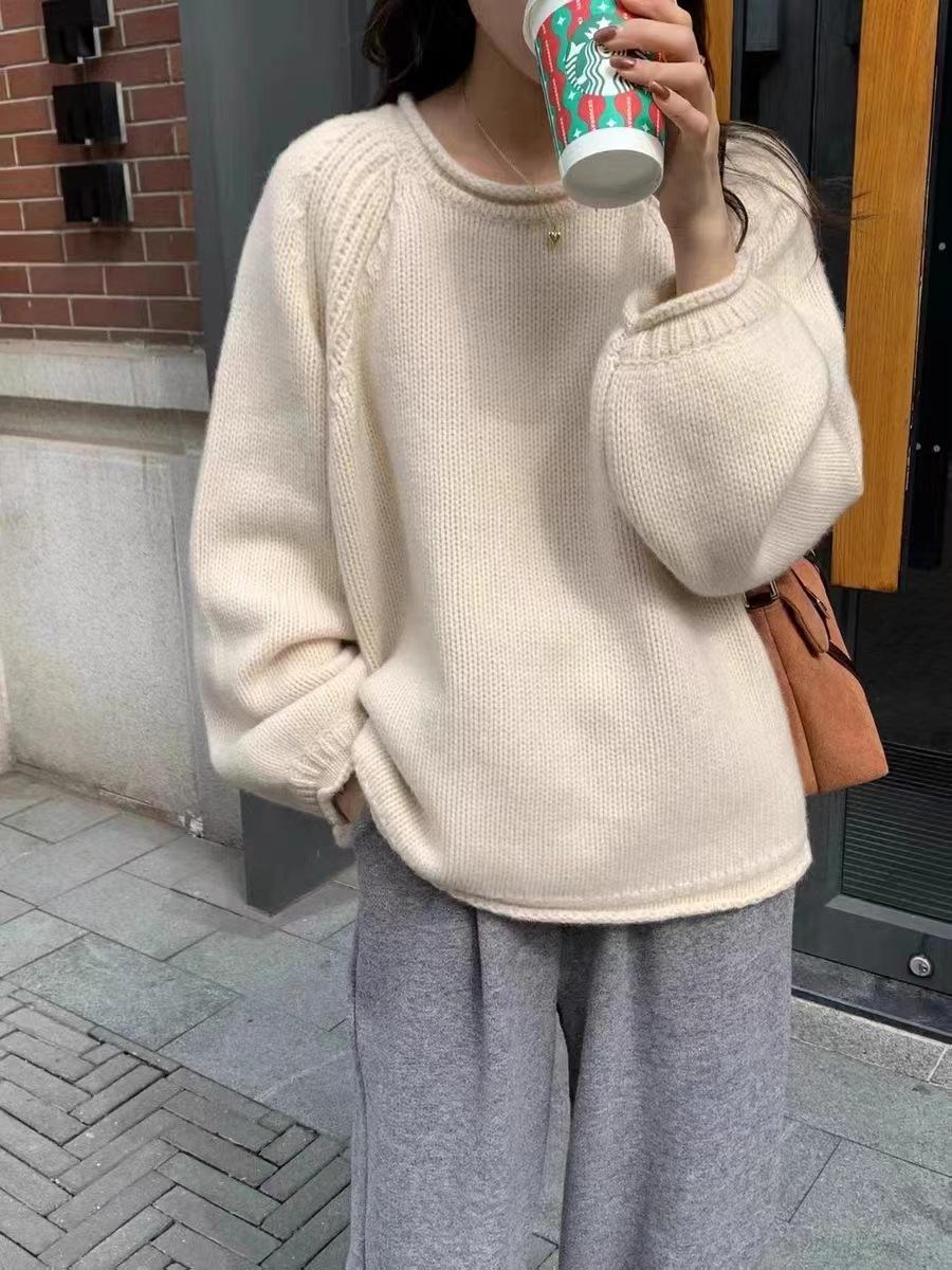 Suéter de Punto de Lana Antiedad Francés 2024 Nuevo para Mujer Otoño e Invierno Grueso Aguja de Punto Suelto Estilo Perezoso Top de Punto