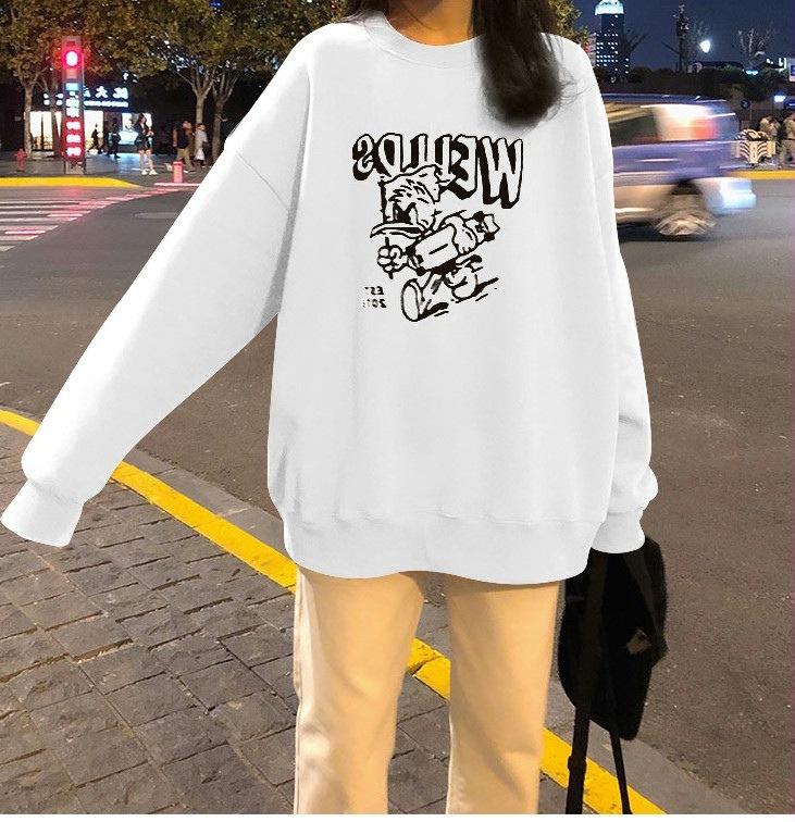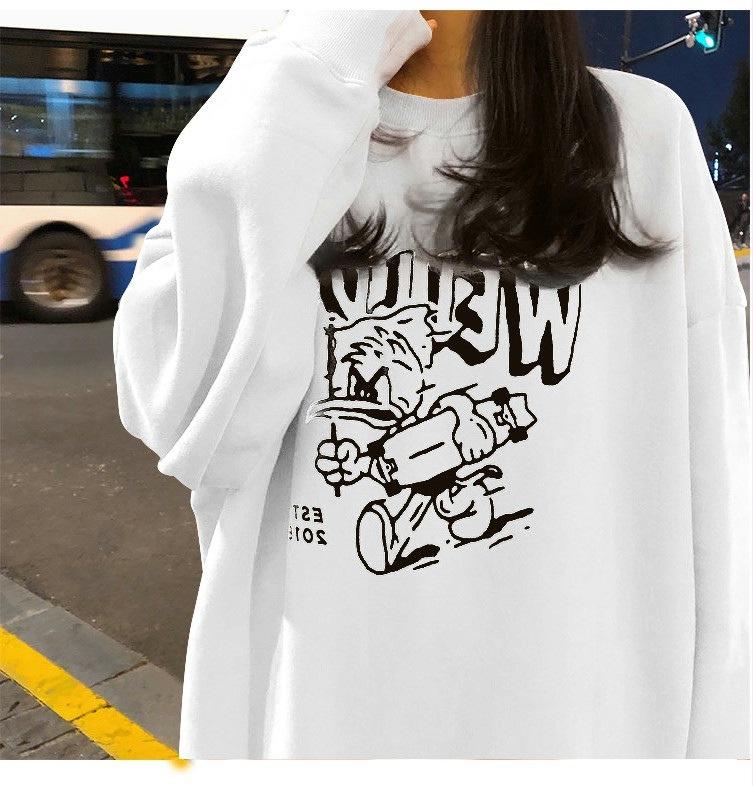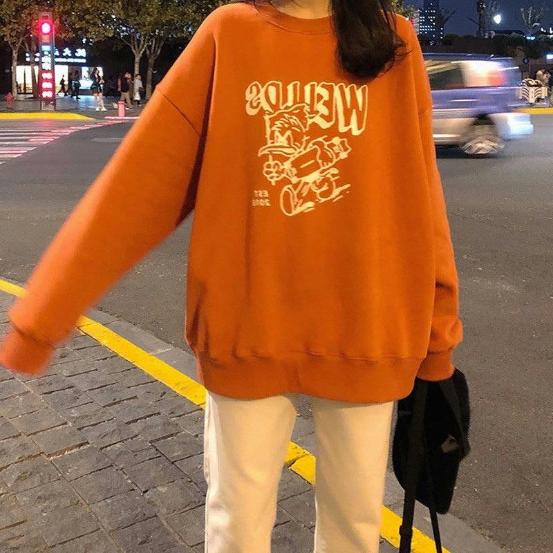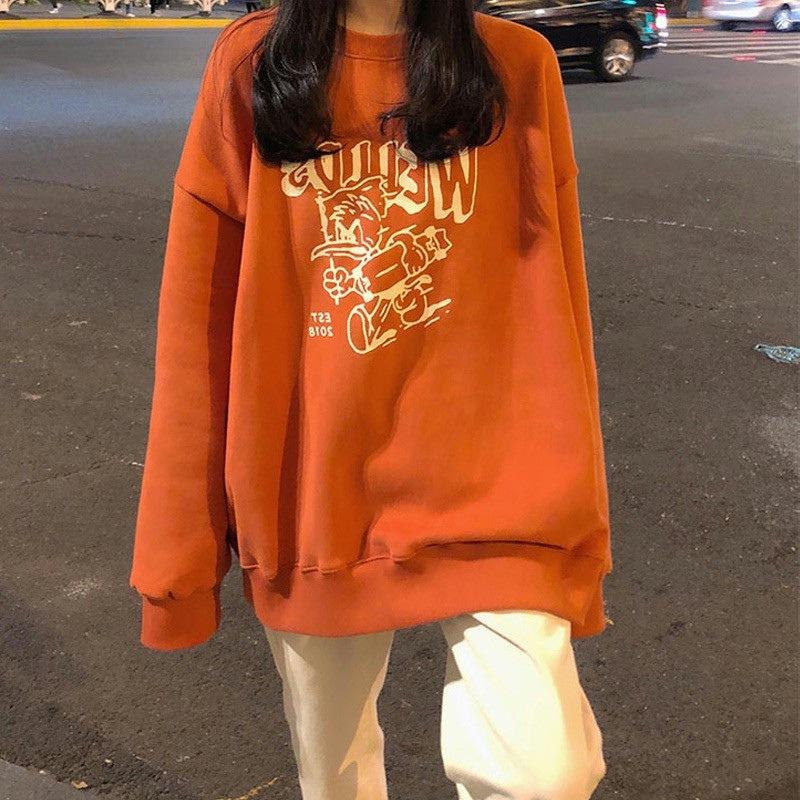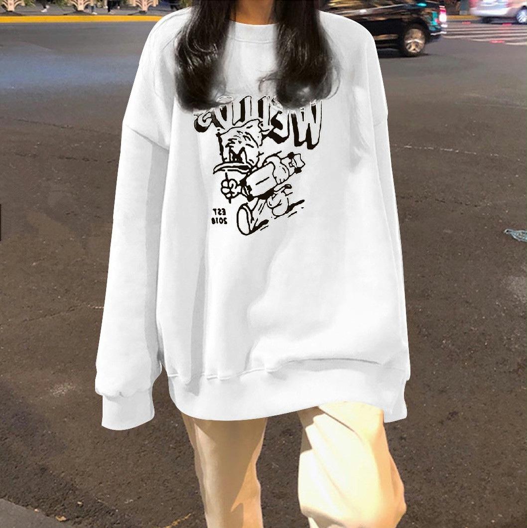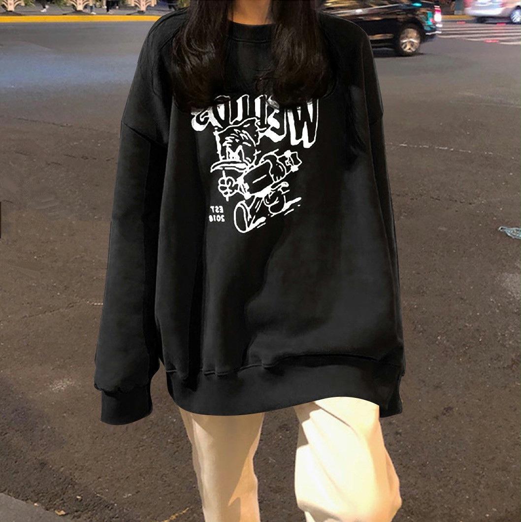 Sudadera Delgada Super Popular para Mujer 2025 Otoño Nuevo Suelta Estampada Estilo Estudiantil Harajuku Cuello Redondo Chaqueta Top para Mujer Trendy