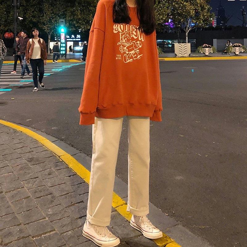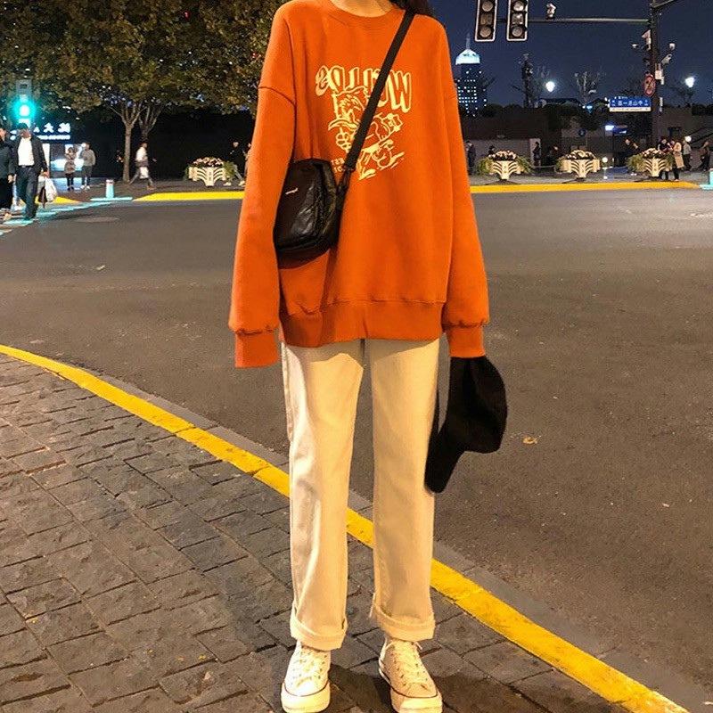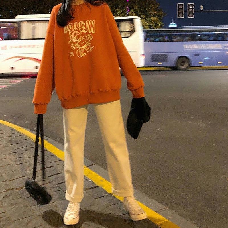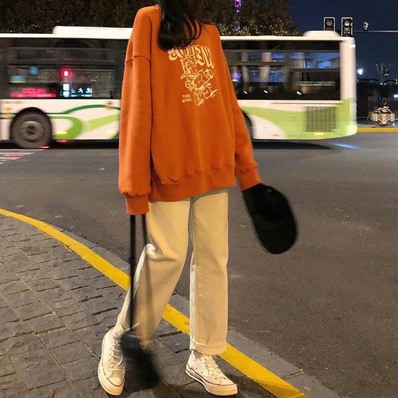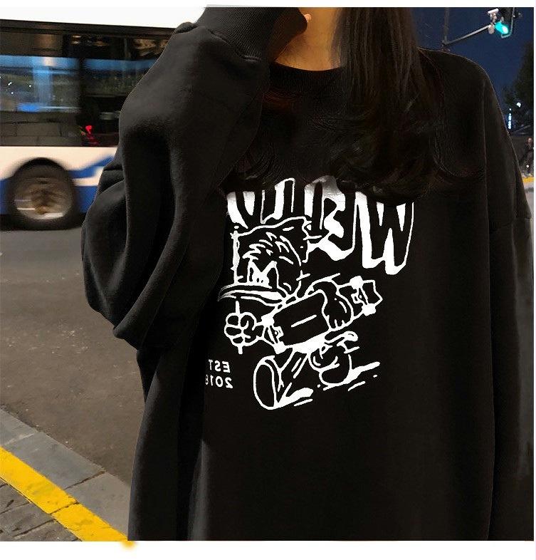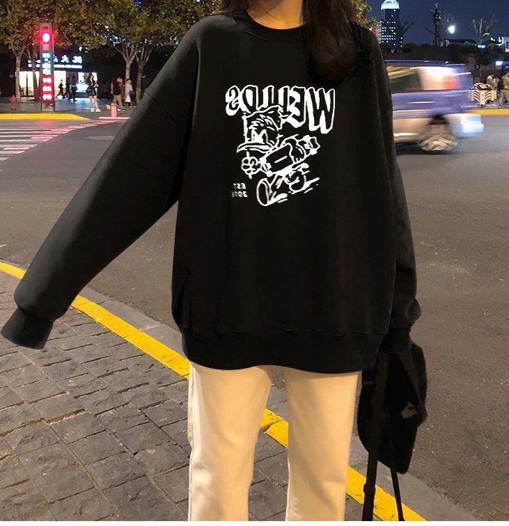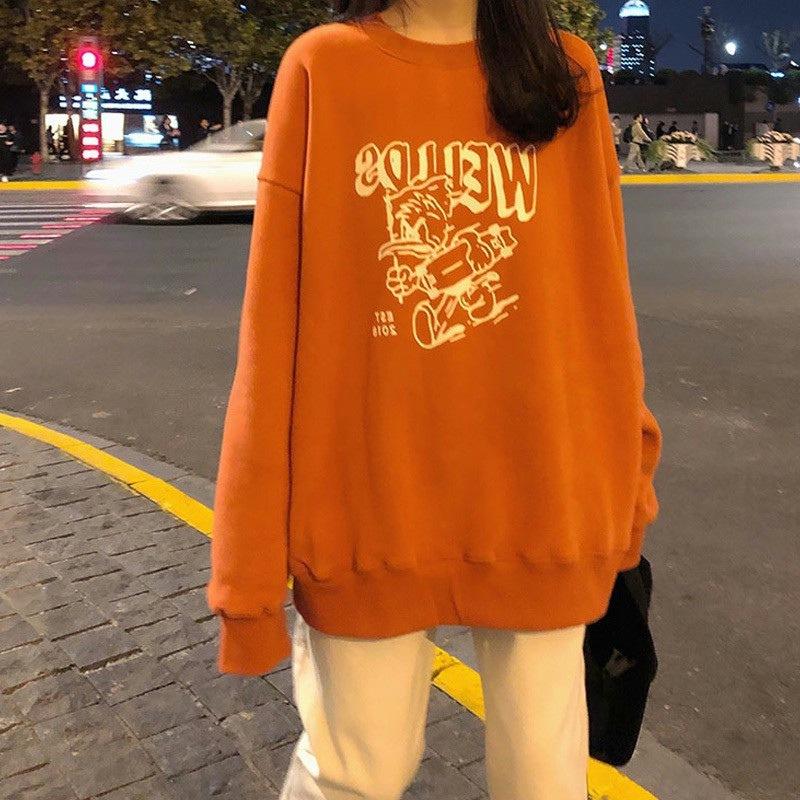 Sudadera Delgada Super Popular para Mujer 2025 Otoño Nuevo Suelta Estampada Estilo Estudiantil Harajuku Cuello Redondo Chaqueta Top para Mujer Trendy