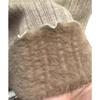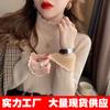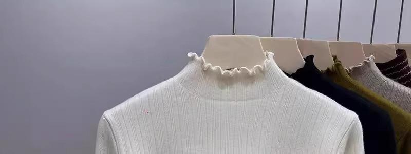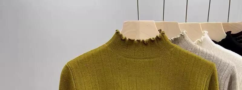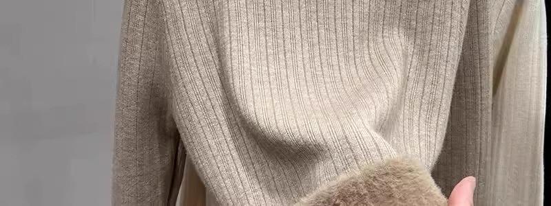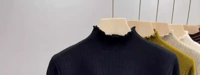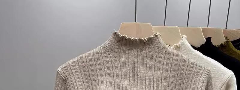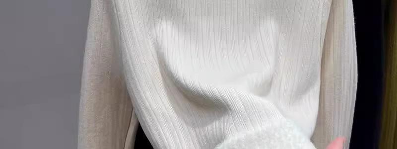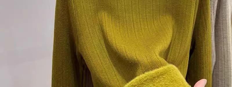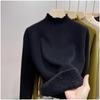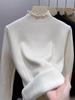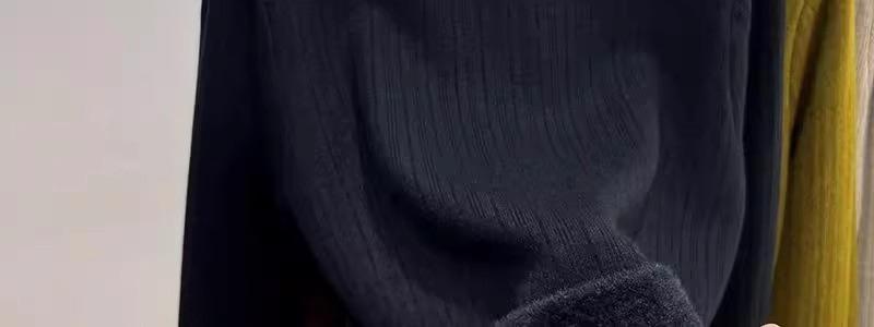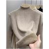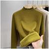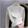 Tejido de punto de terciopelo de una pieza con cuello alto medio para mujer, camiseta básica forrada de vellón, nuevo tejido de punto de punto de otoño e invierno 2023 con top inferior grueso