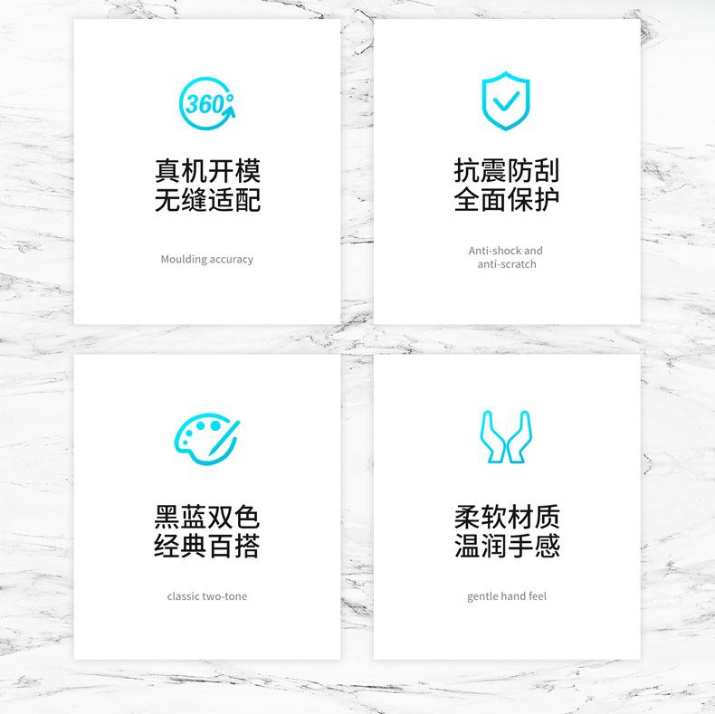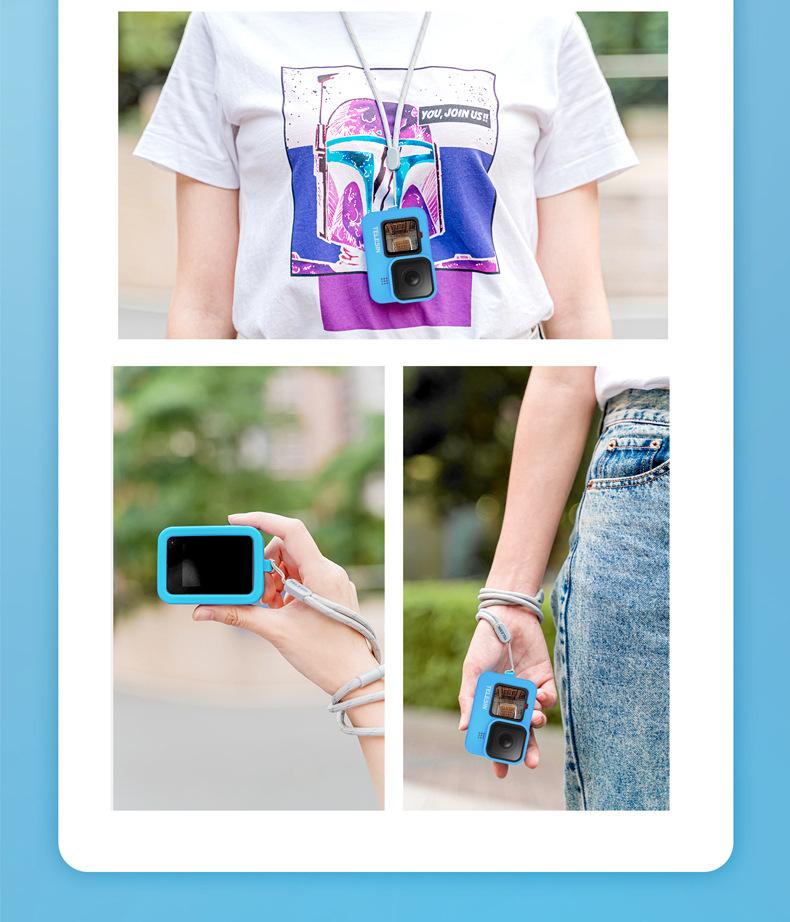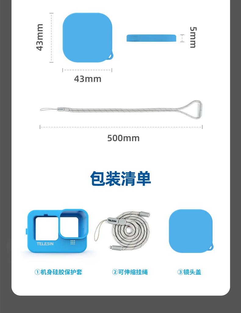 Lista de empaque: Funda de silicona*1, cubierta para lente*1, correa de mano*1