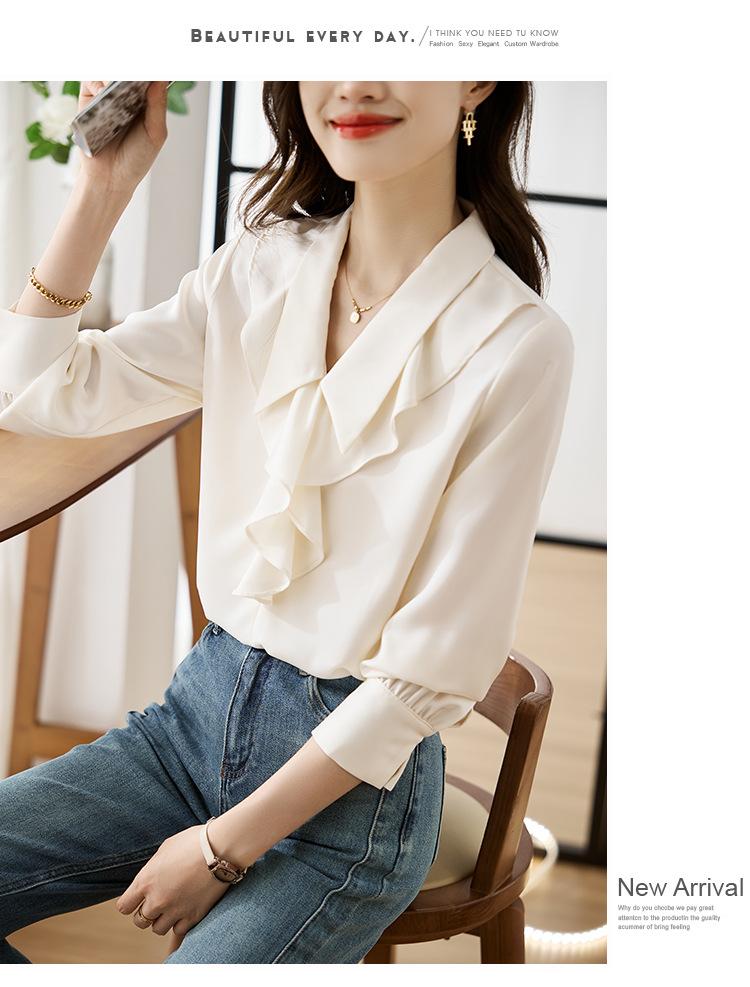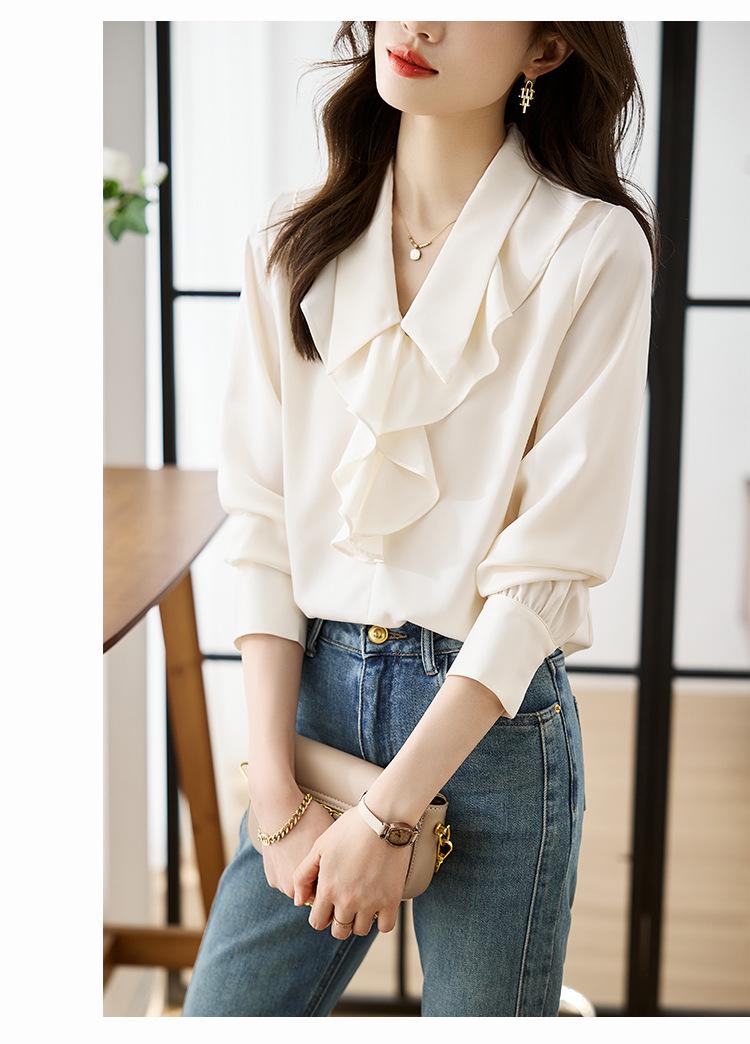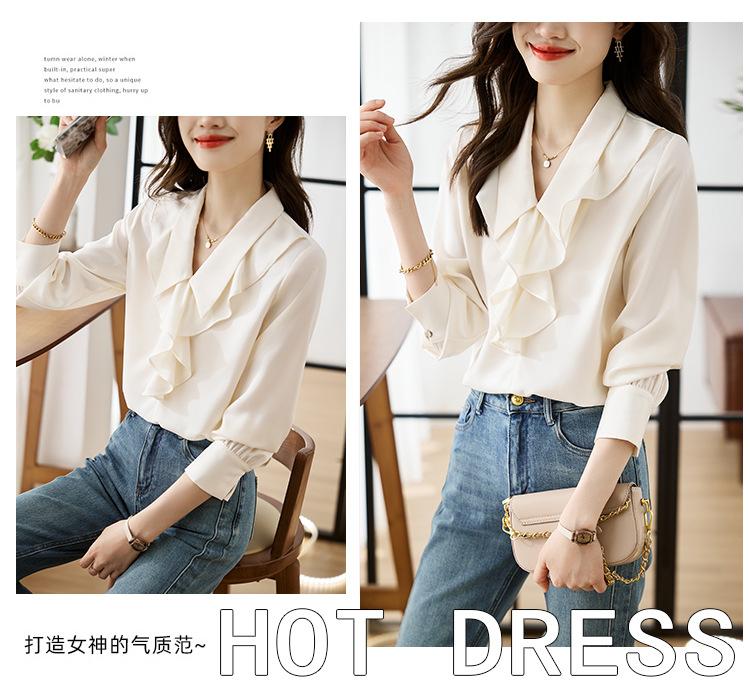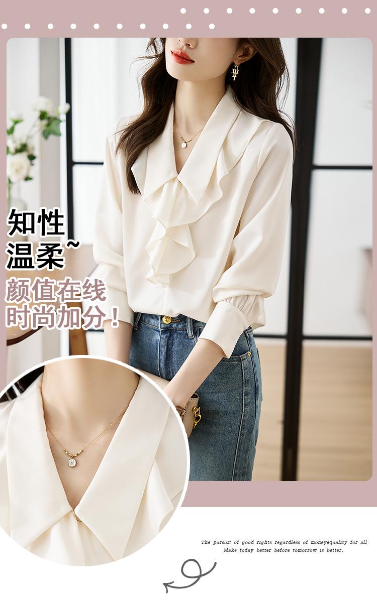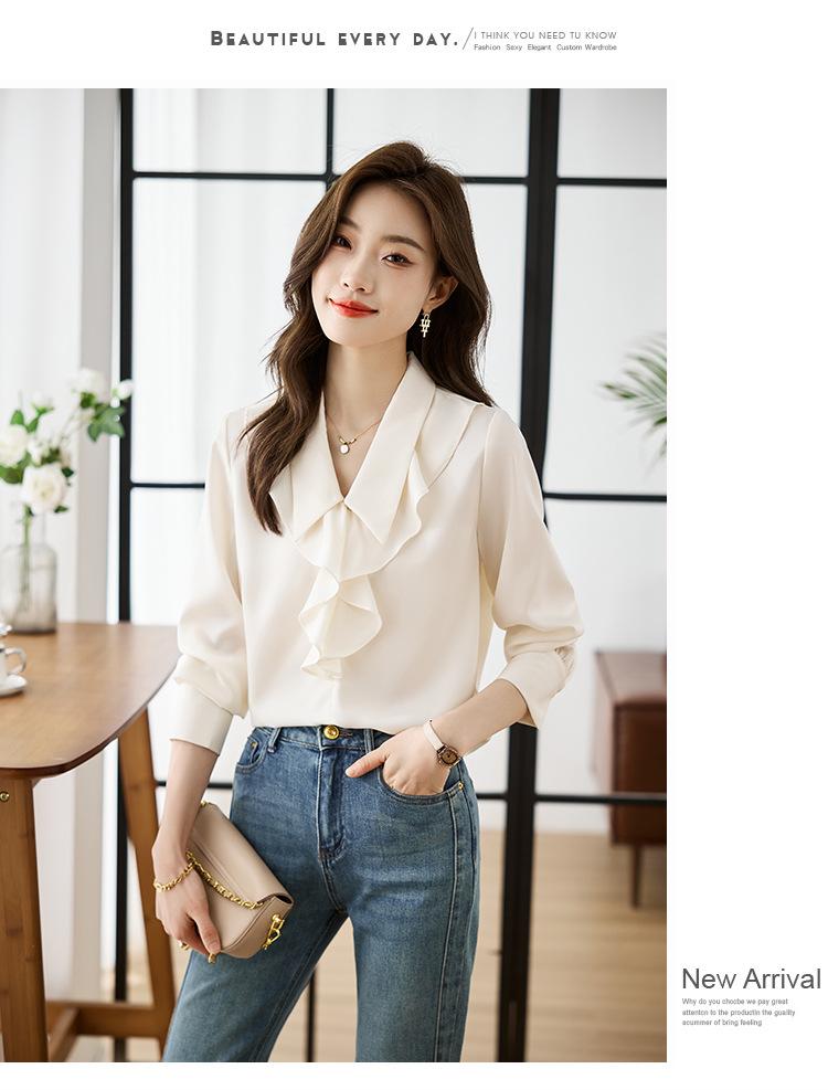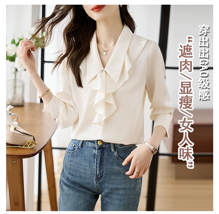 Camisa de gasa de manga larga de moda para mujer Primavera 2024 Nuevo estilo Camisa que reduce la edad Top de camisa pequeña para mujer