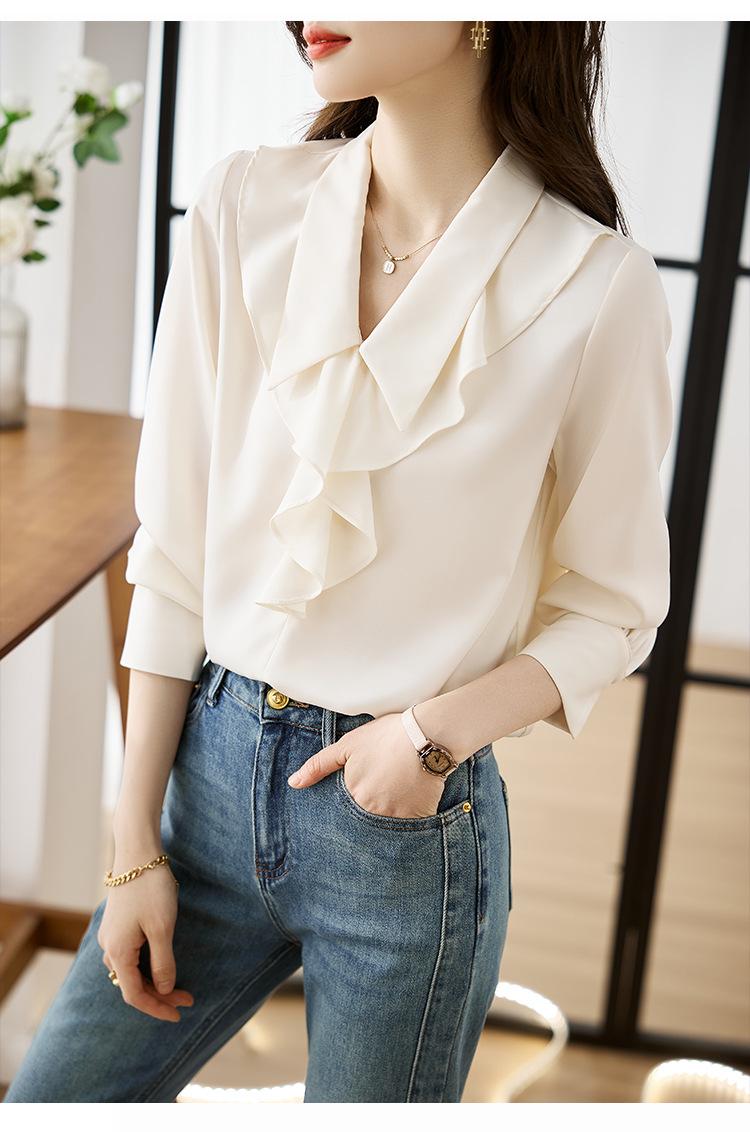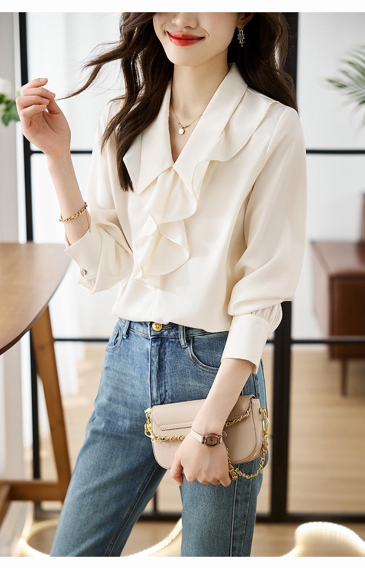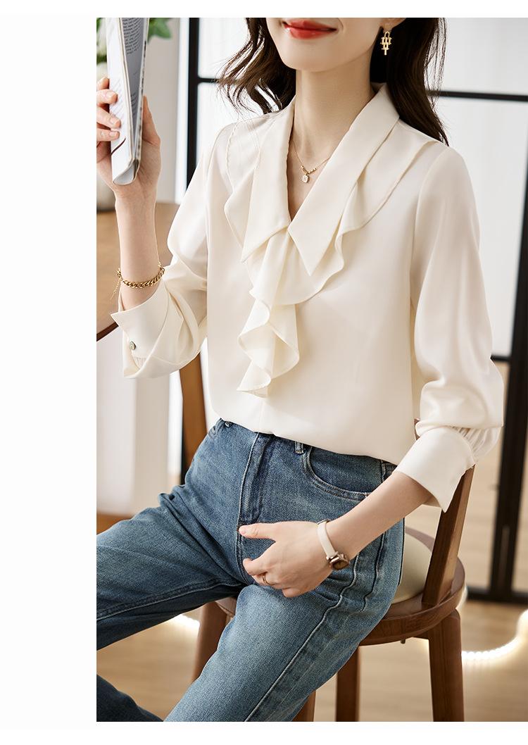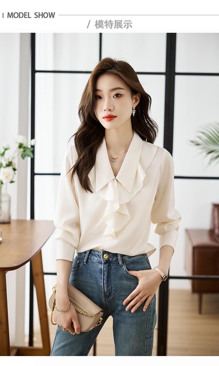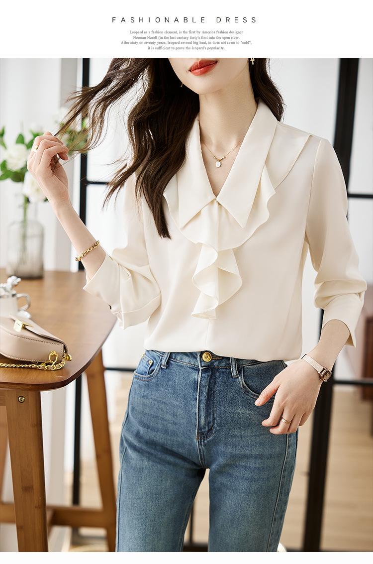 Camisa de gasa de manga larga de moda para mujer Primavera 2024 Nuevo estilo Camisa que reduce la edad Top de camisa pequeña para mujer