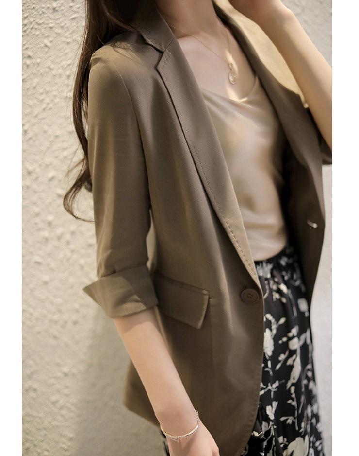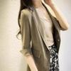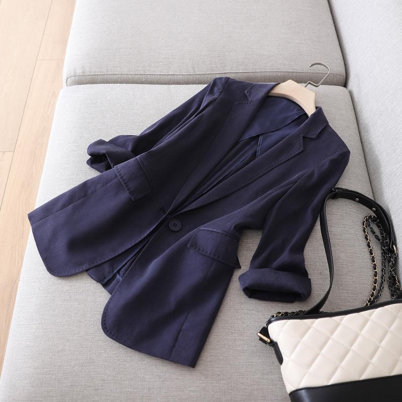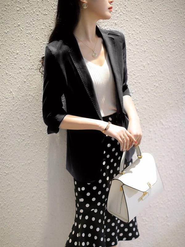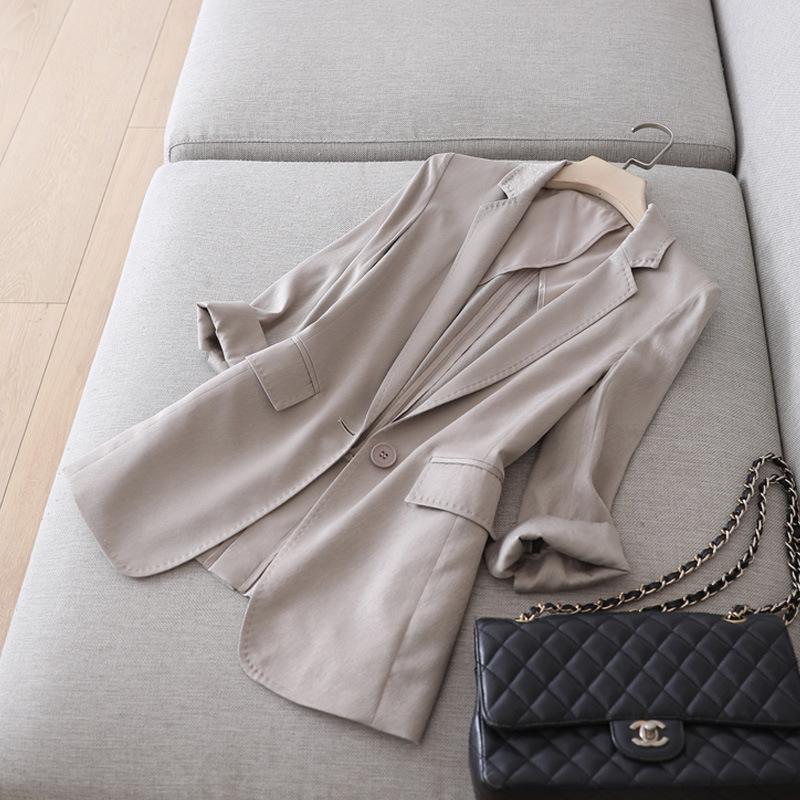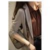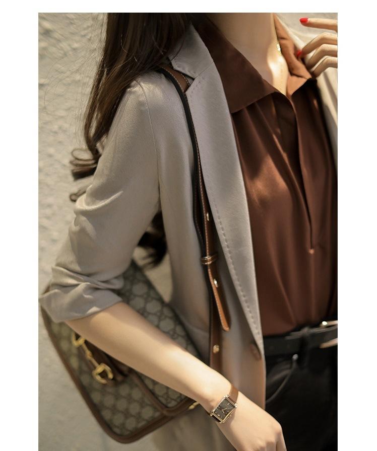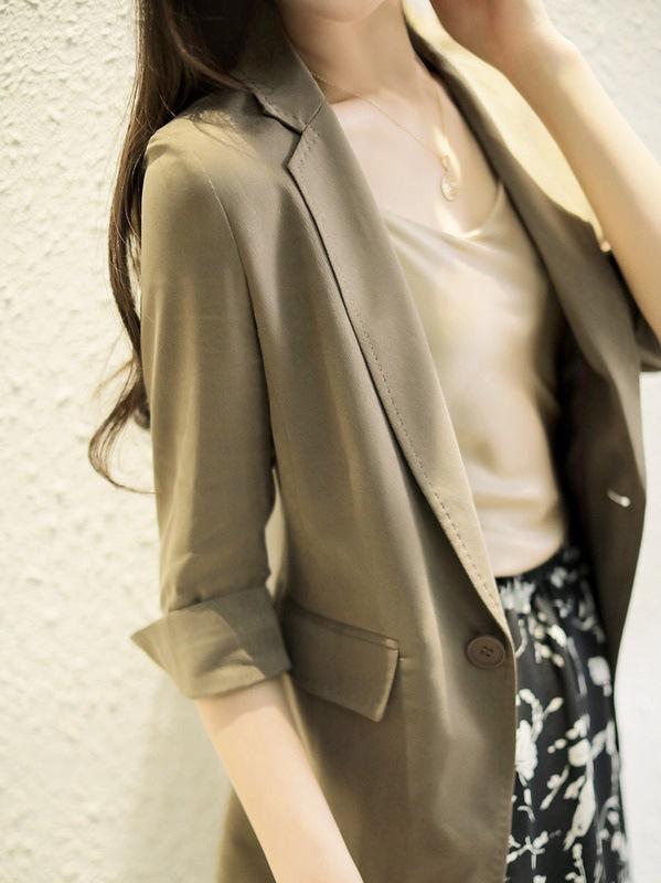 Chaqueta de traje ligera de lujo ajustada de otoño nueva para mujer, traje informal de satén rosa con mangas 3/4 y drapeado fino
