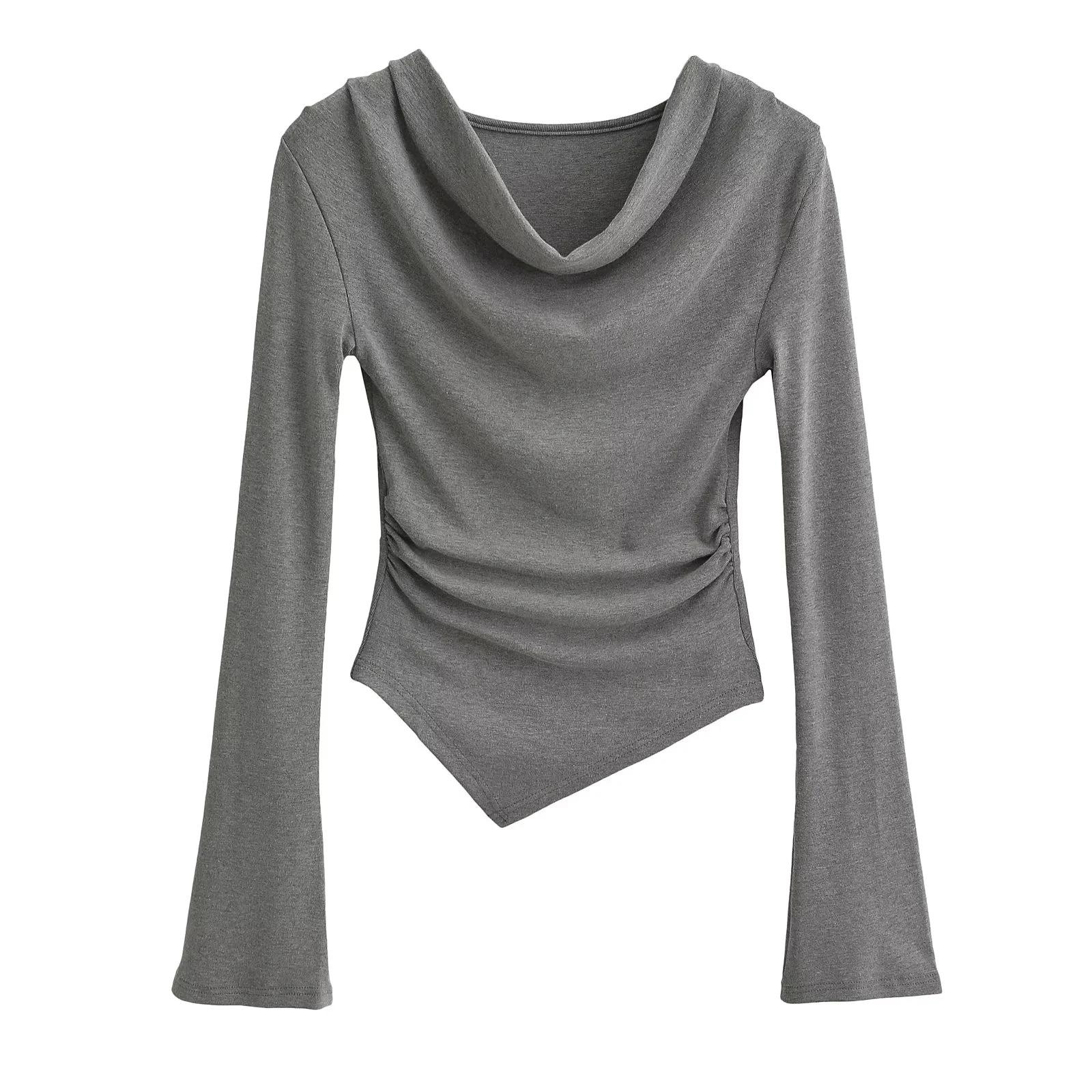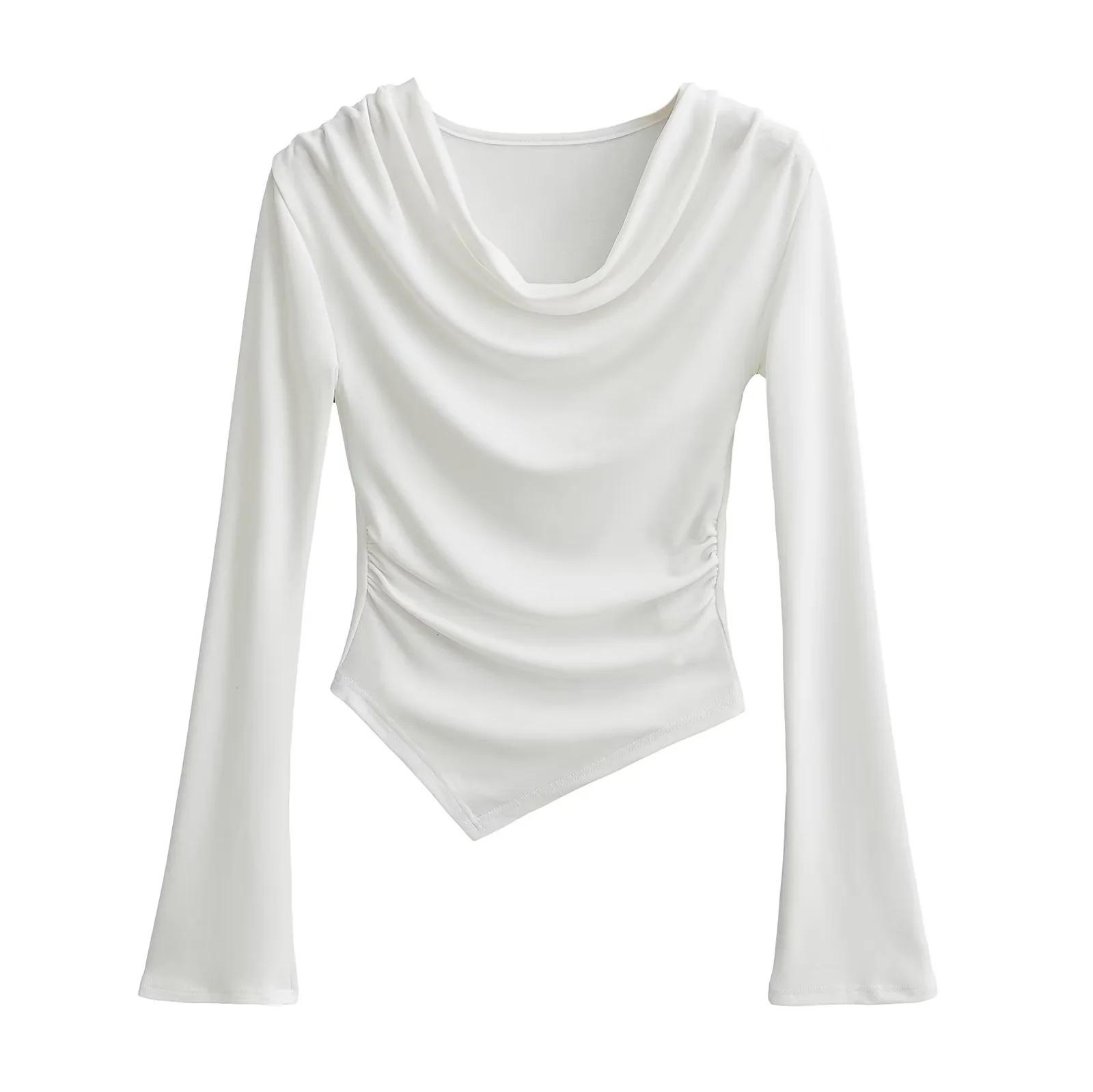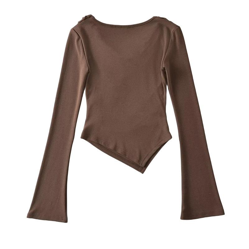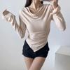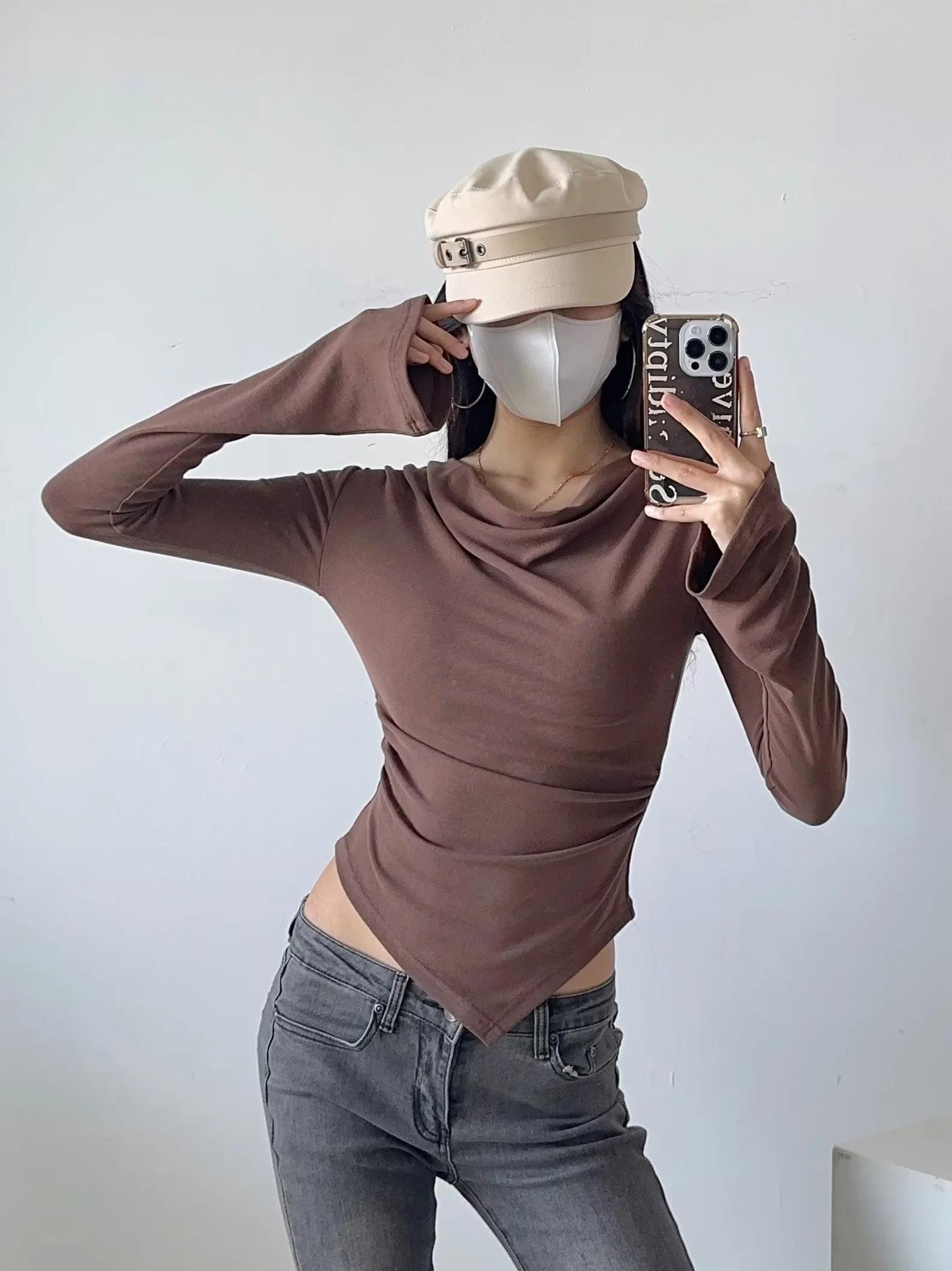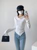 Camiseta de otoño con hombros descubiertos y temperamento de chica dulce y caliente para mujer, ropa interior irregular de puro deseo, camisa de manga larga adelgazante
