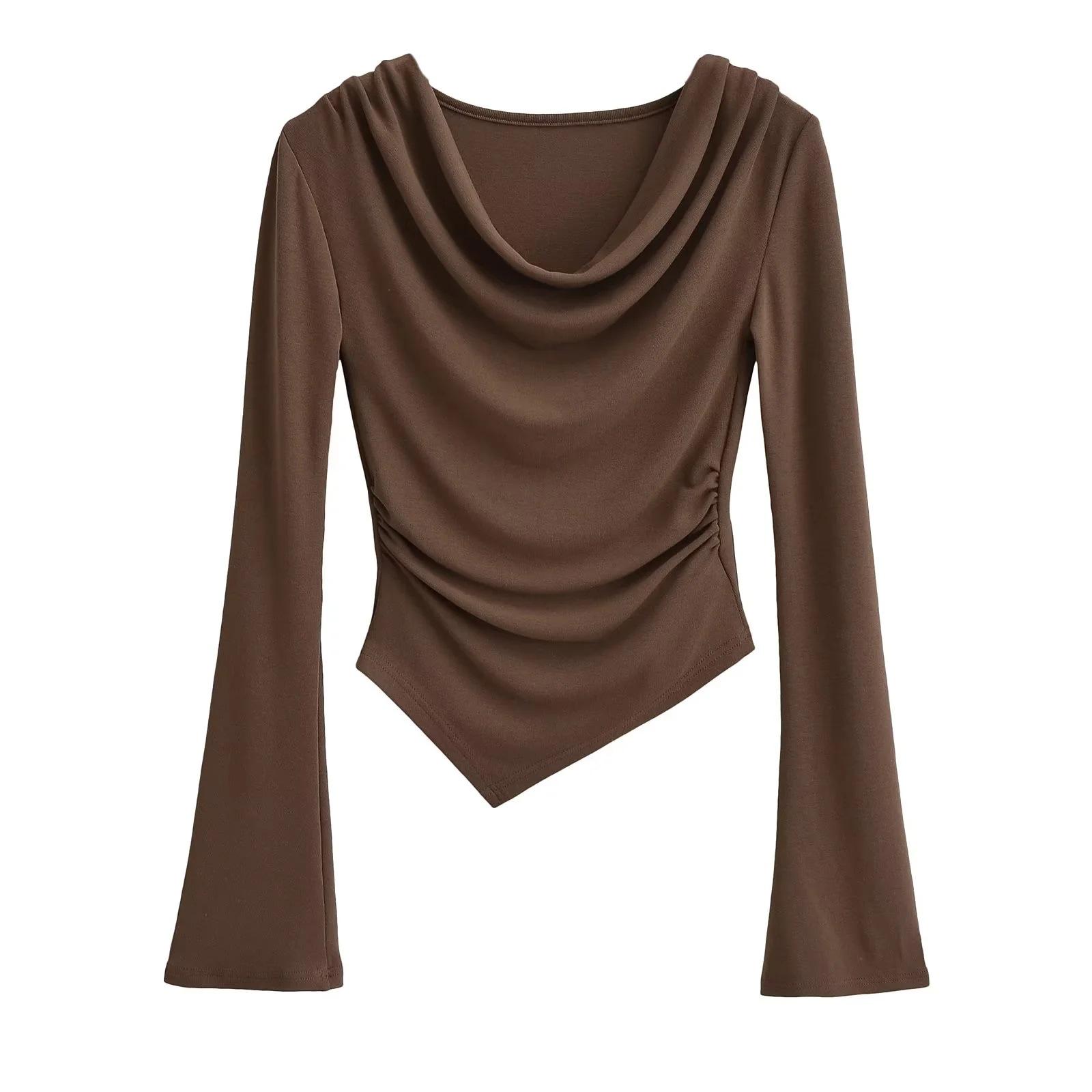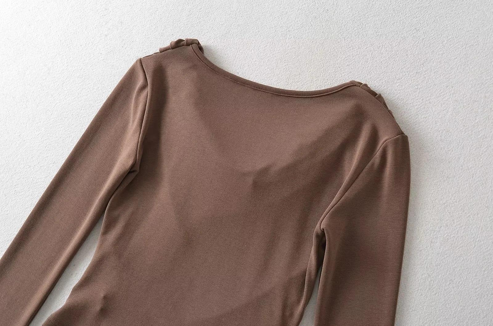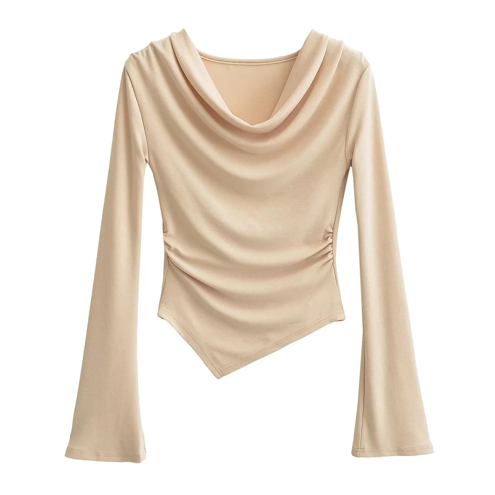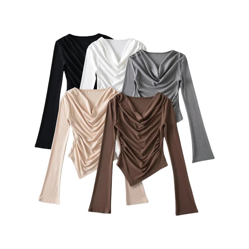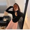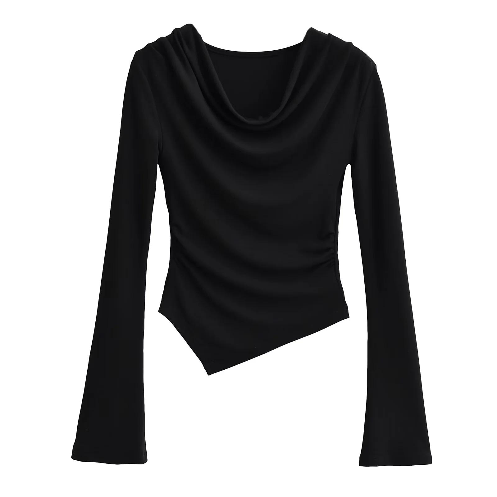 Camiseta de otoño con hombros descubiertos y temperamento de chica dulce y caliente para mujer, ropa interior irregular de puro deseo, camisa de manga larga adelgazante