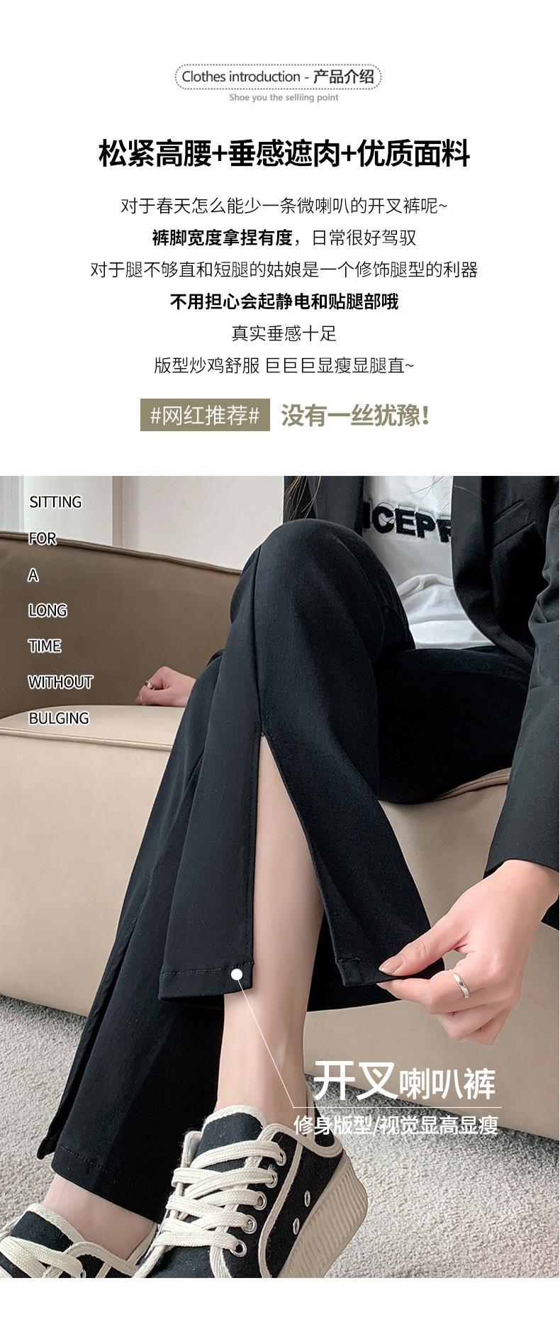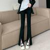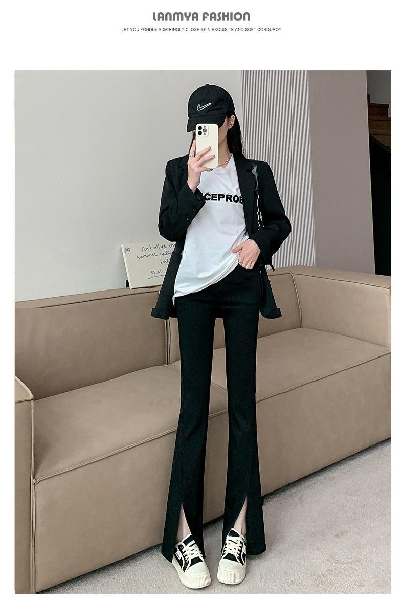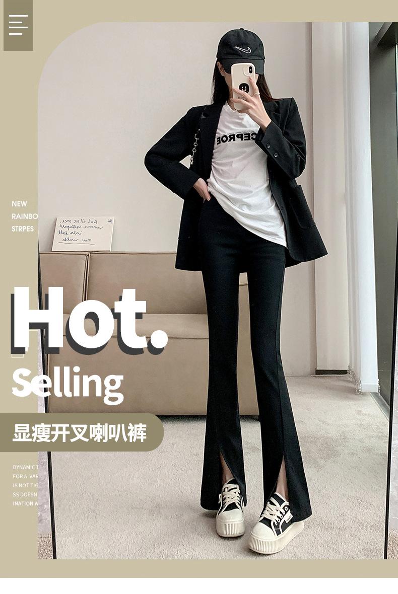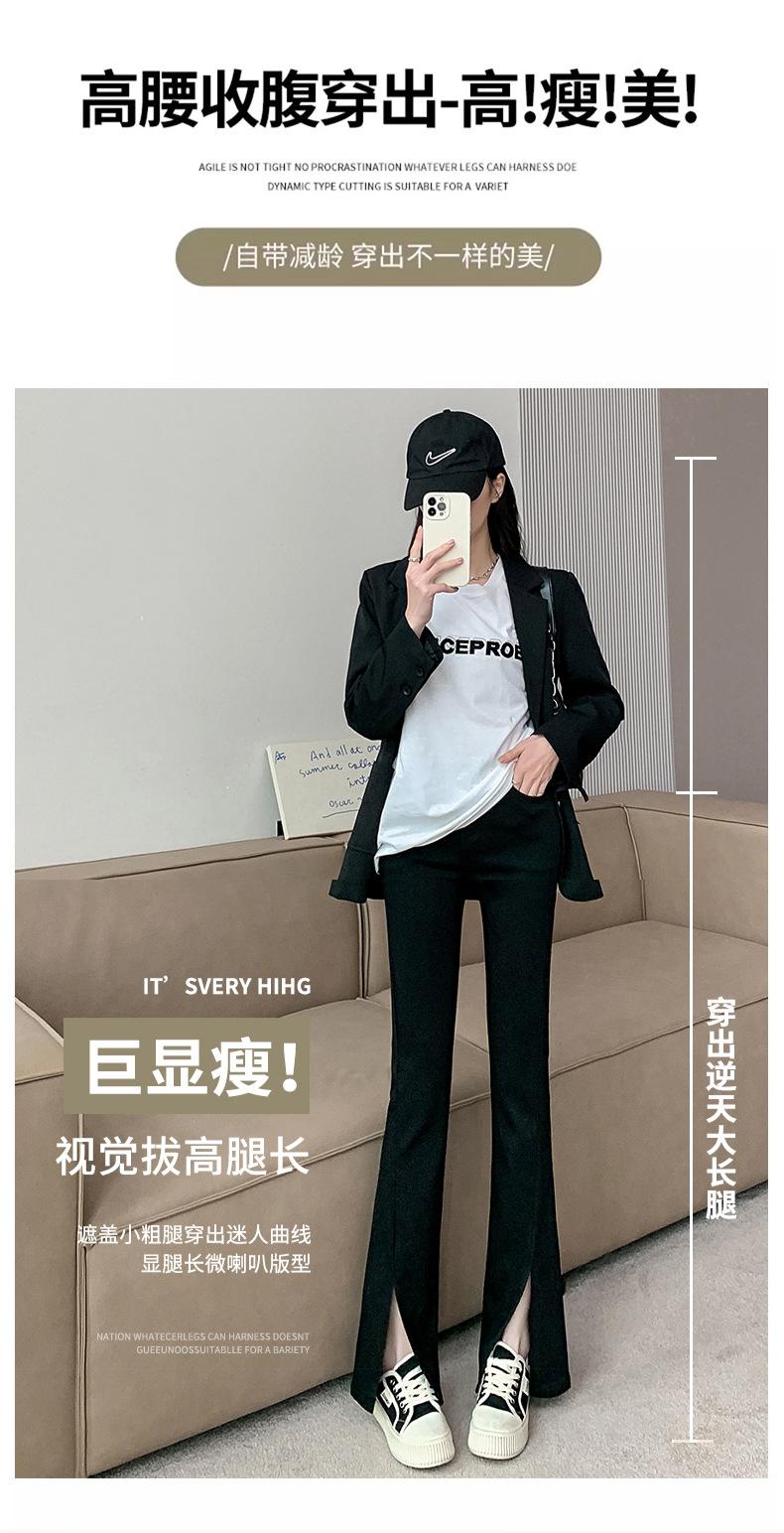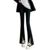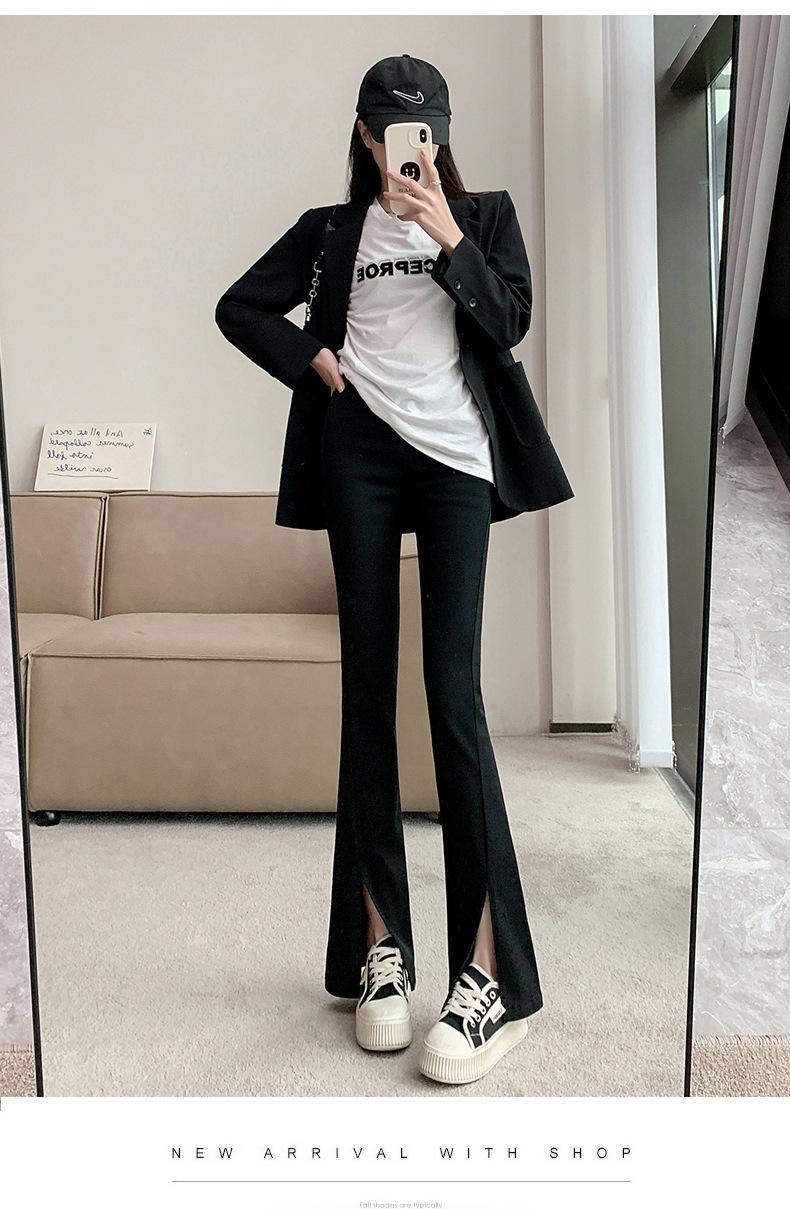 Pantalones acampanados casuales nuevos de primavera y otoño, ajustados, con abertura y estampado de diamantes, adelgazantes, versátiles, elásticos, de cintura alta, con abertura lateral y largos