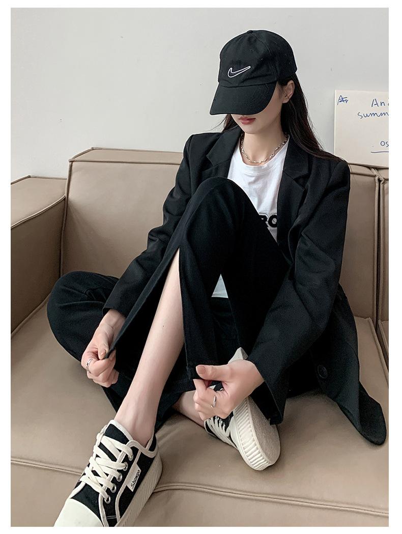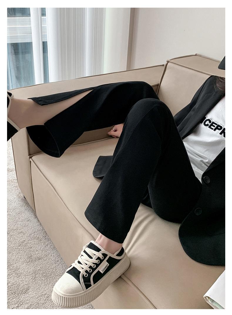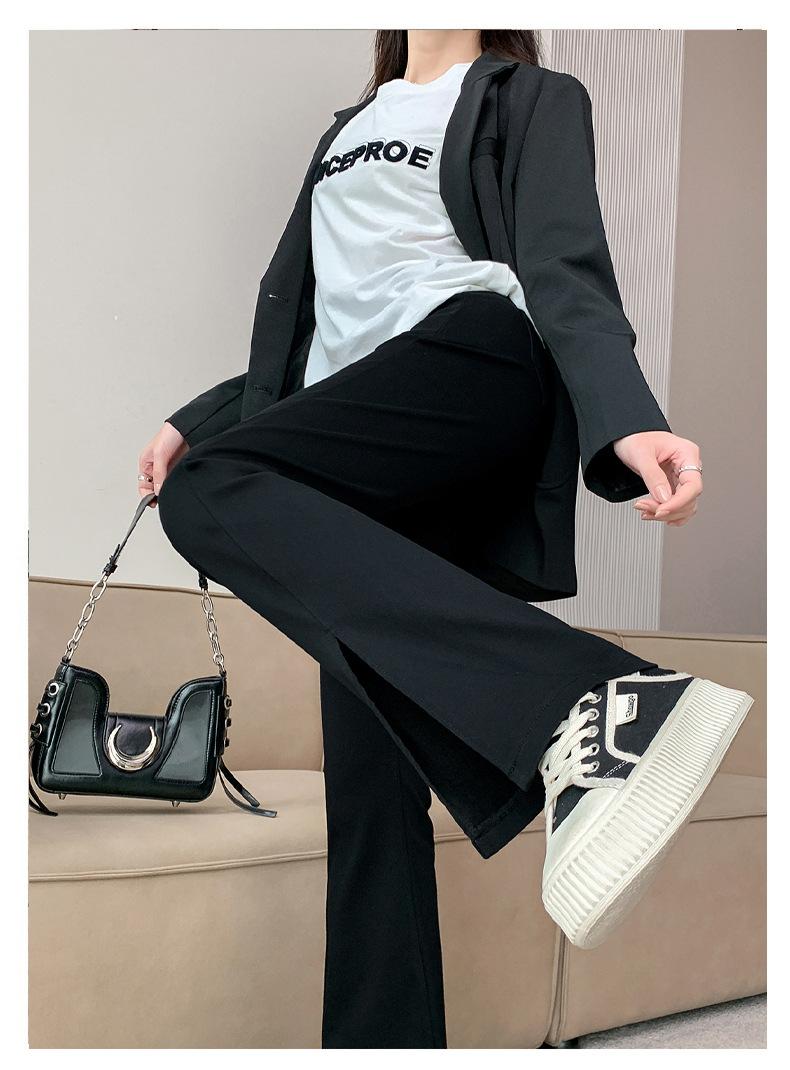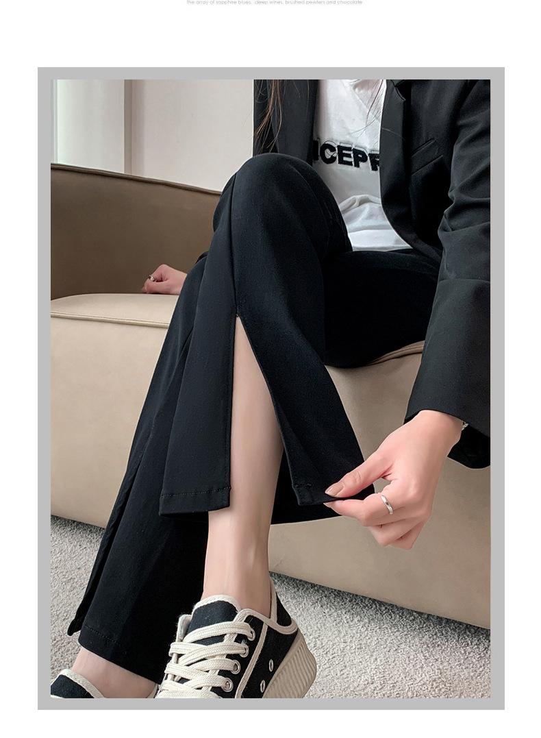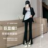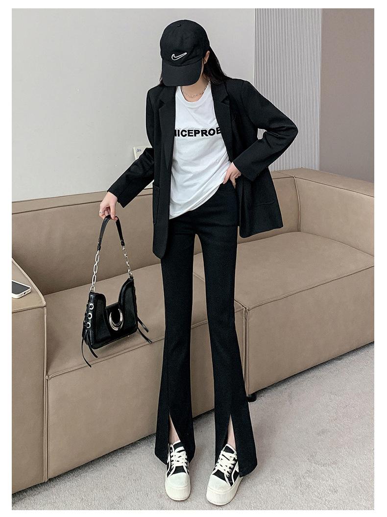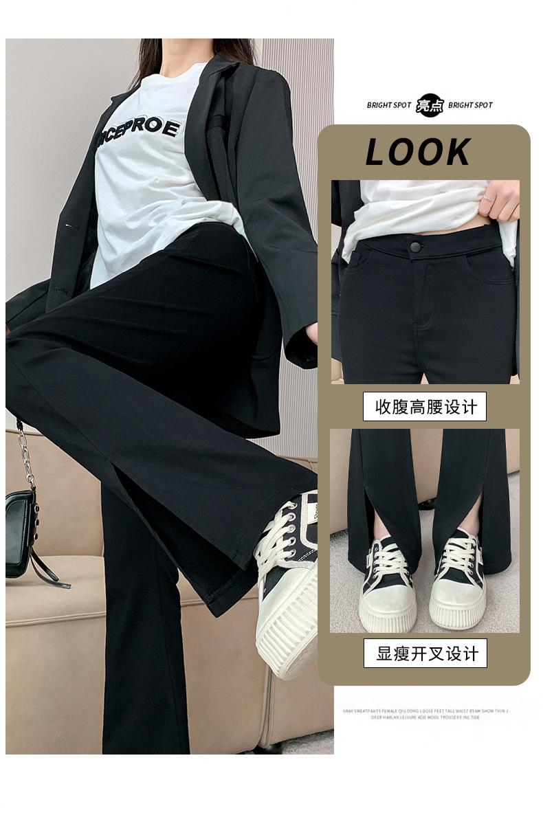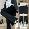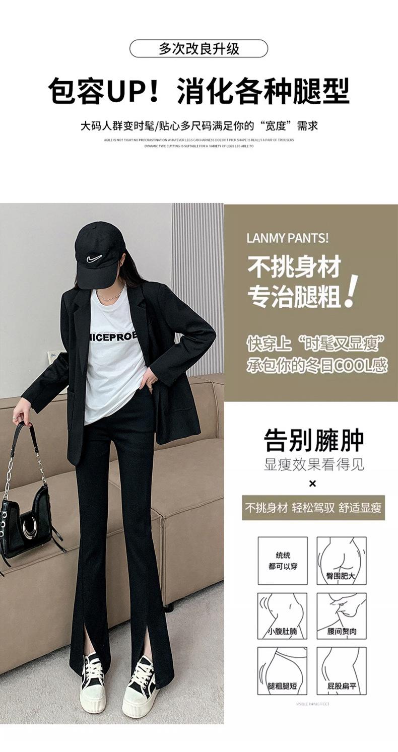 Pantalones acampanados casuales nuevos de primavera y otoño, ajustados, con abertura y estampado de diamantes, adelgazantes, versátiles, elásticos, de cintura alta, con abertura lateral y largos