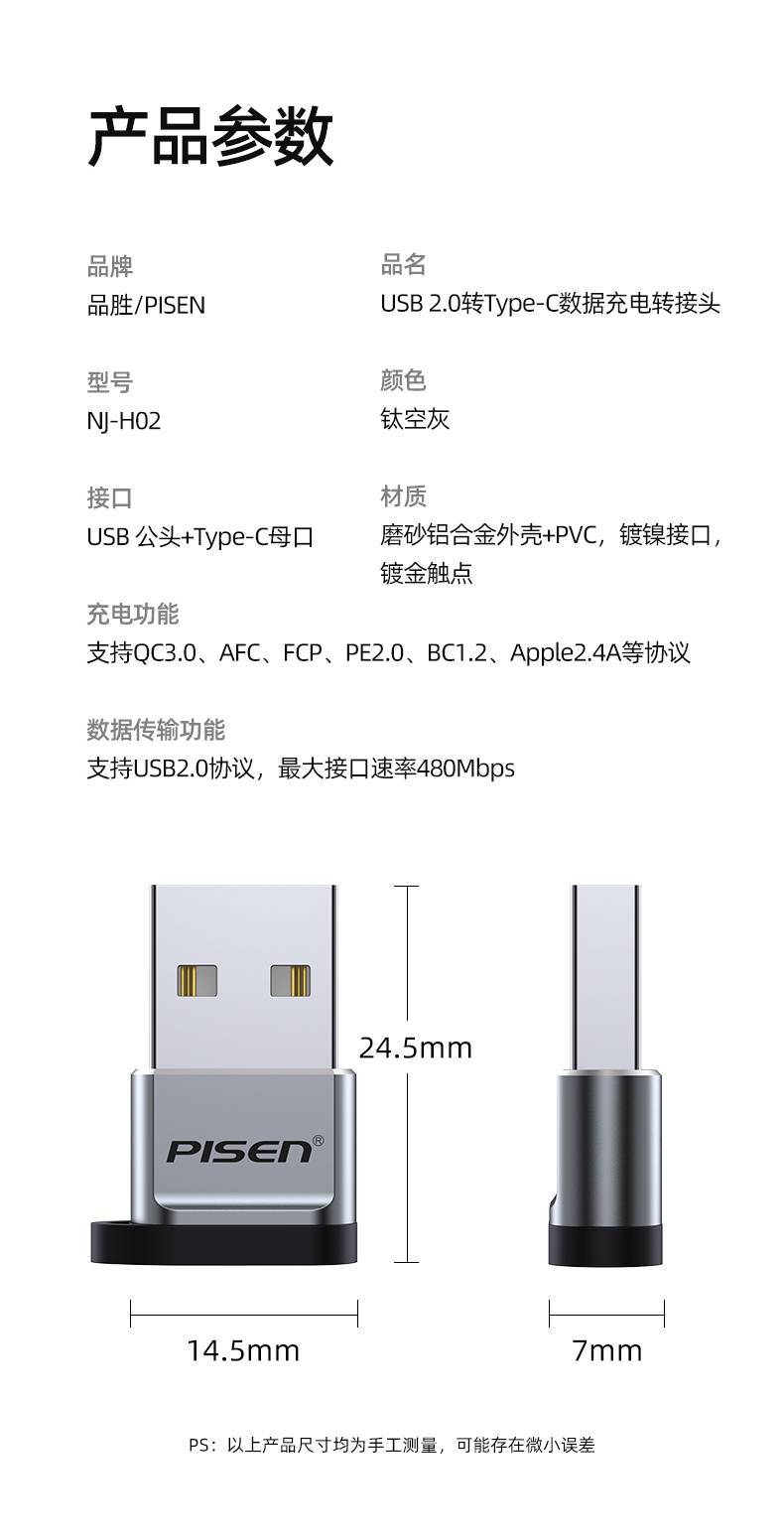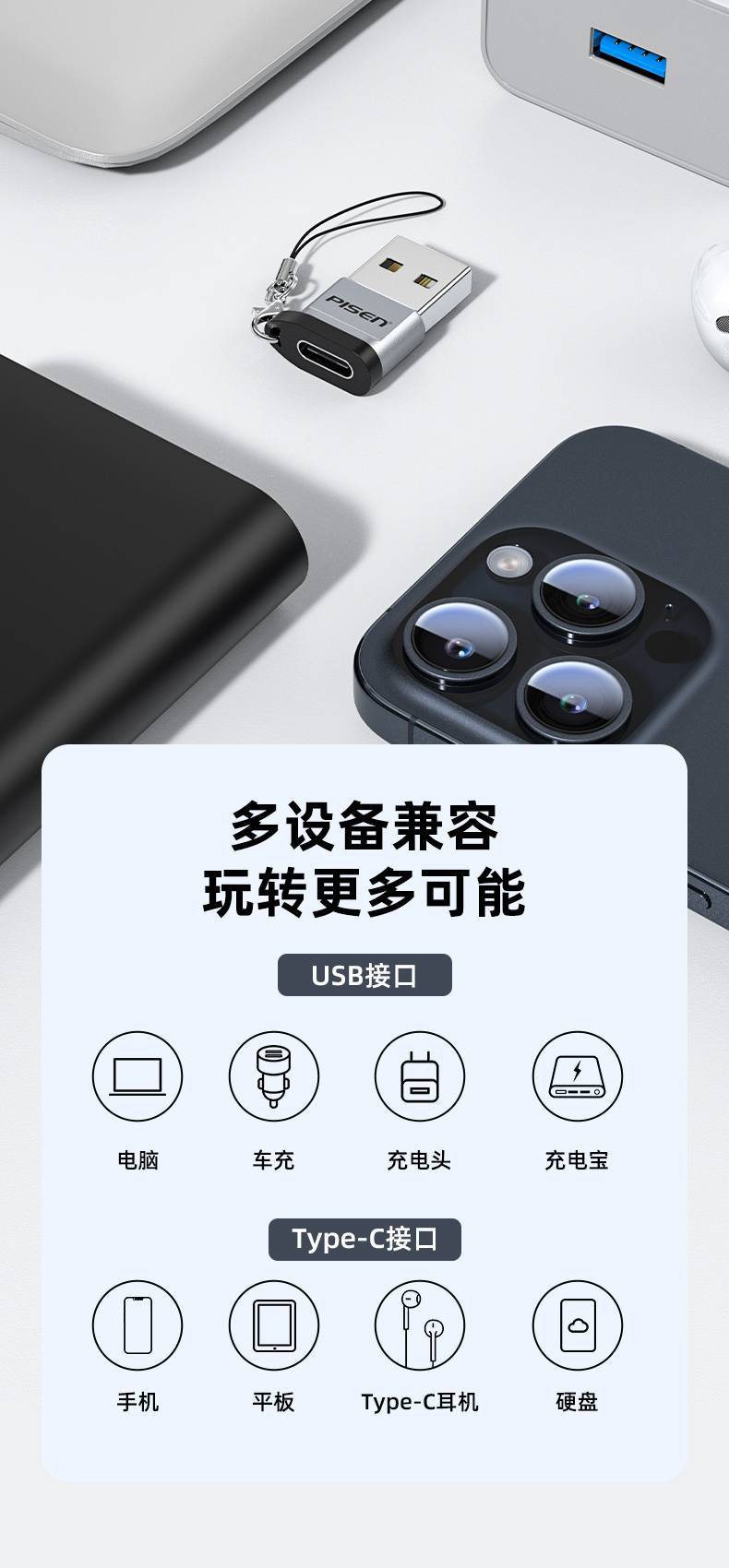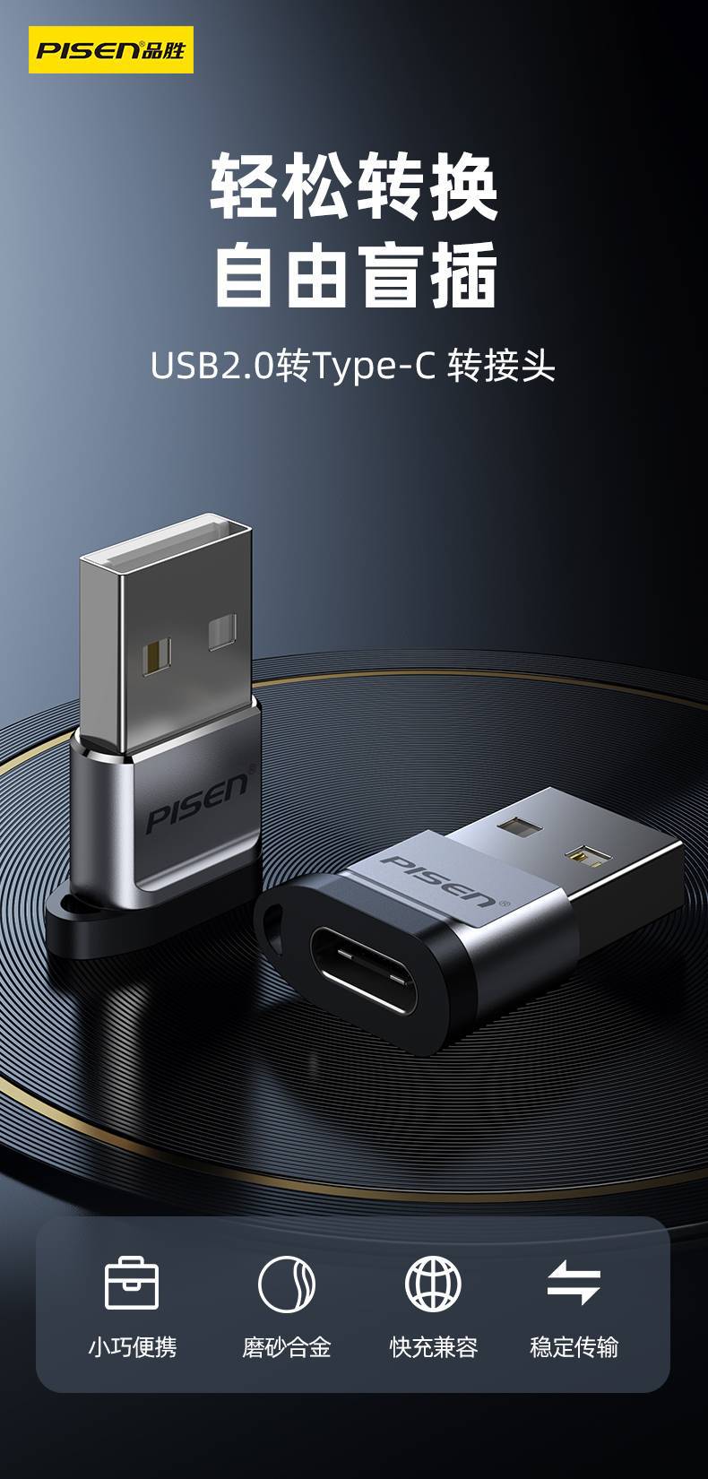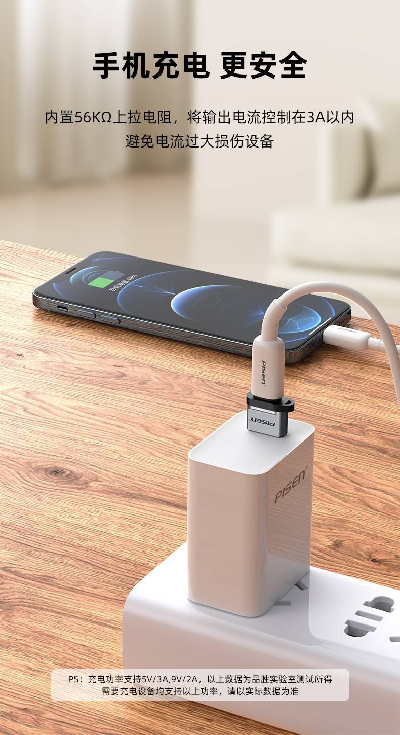 El adaptador USB a tipo C de Pinsheng PD es adecuado para el convertidor de cable de datos de carga rápida de Apple, teléfono móvil, computadora y Android.