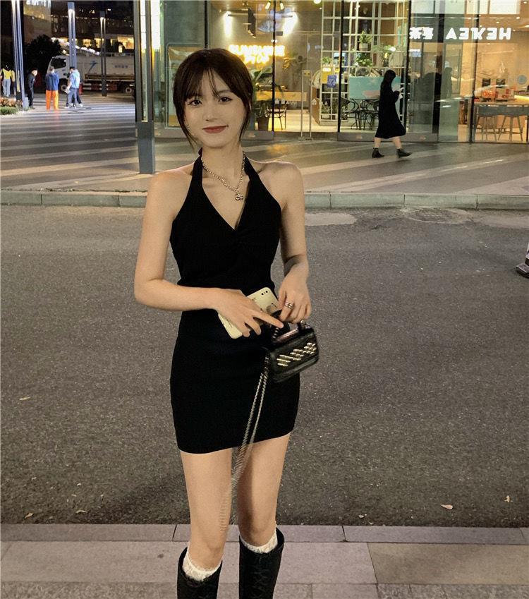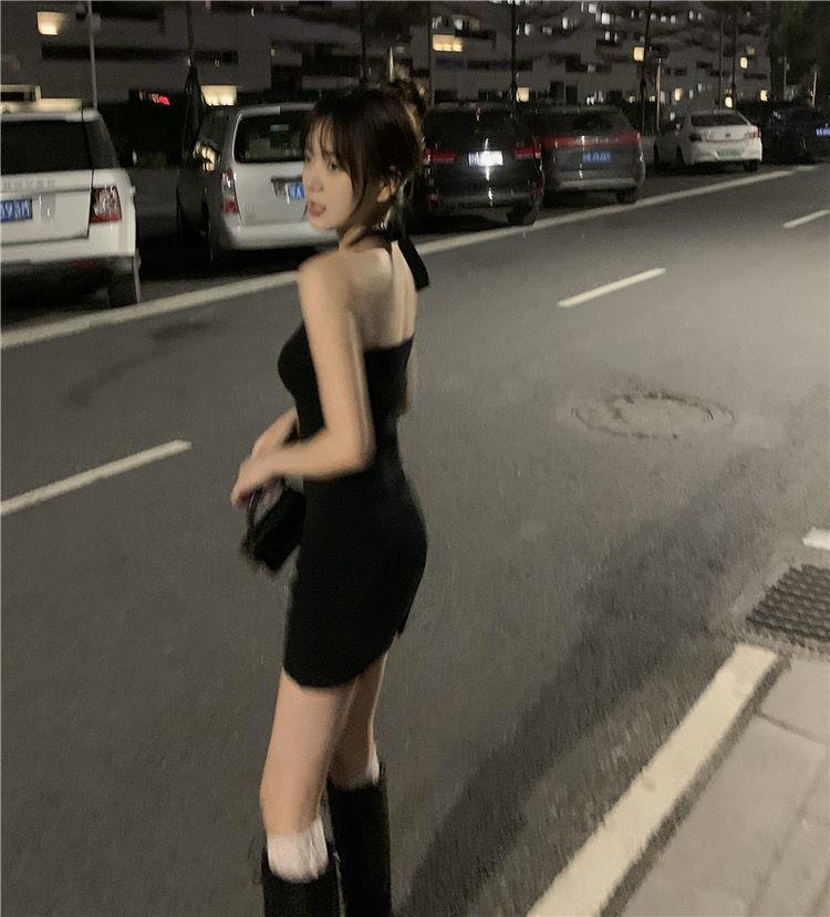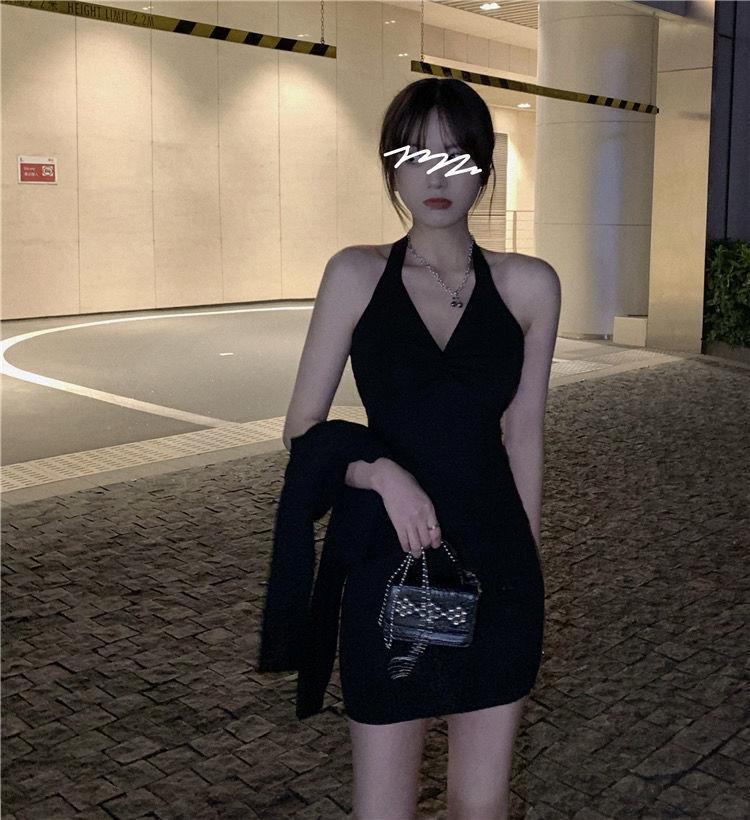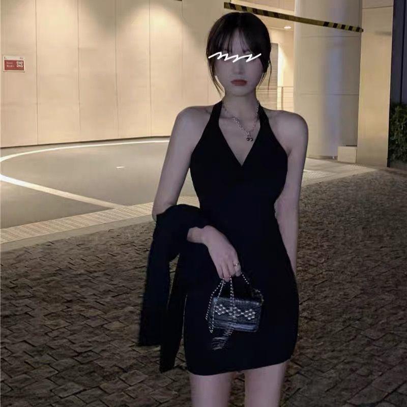 Vestido halter de celebridades en línea Pure Desire para mujer, nuevo vestido de verano sexy para chica, ajustado, adelgazante, pequeño, sin espalda, negro