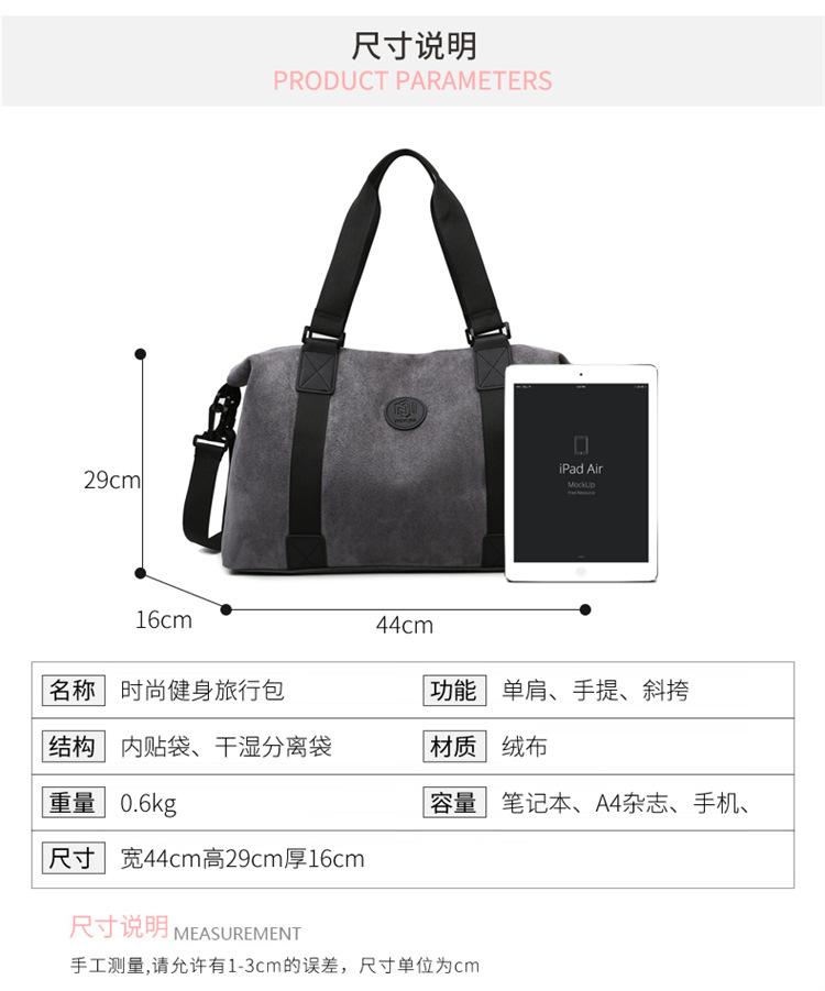 Bolso de viaje de gamuza transfronterizo, bolso deportivo portátil para mujer, bolso de viaje de corta distancia de gran capacidad para hombre.