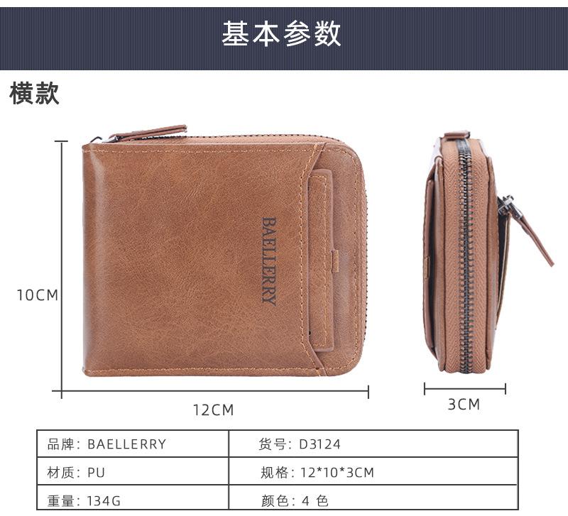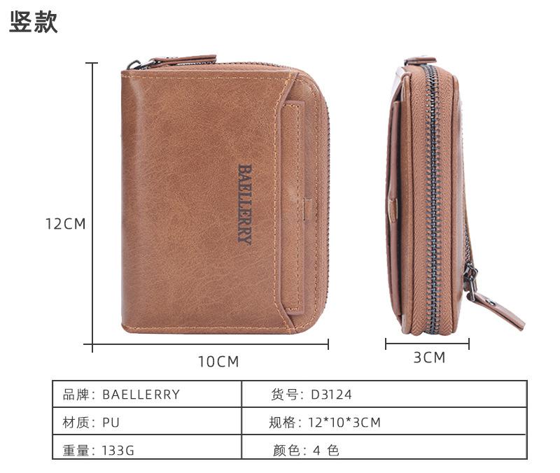 Clip para Cartera de Hombre Transfronteriza Baellerry Cartera de Hombre de Alta Gama Horizontal con Cierre de Cremallera Tarjetero Cartera de Gran Capacidad