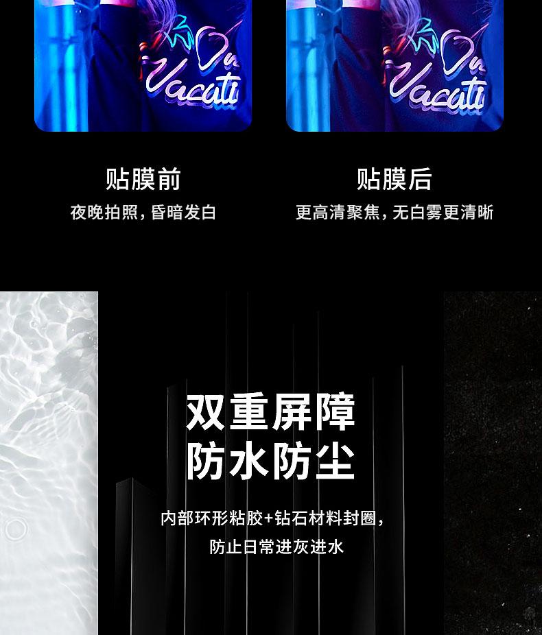 Puntos de venta del producto: restaura la textura real de la máquina 1:1, evita el amarilleo y el blanqueamiento al tomar fotografías, pulverización de plasma, resistente a la suciedad y no pegajoso, mantiene la transmitancia de luz de alta definición de la lente, pegamento AB de alta viscosidad 500, firme y no se cae fácilmente, sin burbujas ni bordes blancos, no quedan rastros al desmontarlo;
