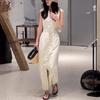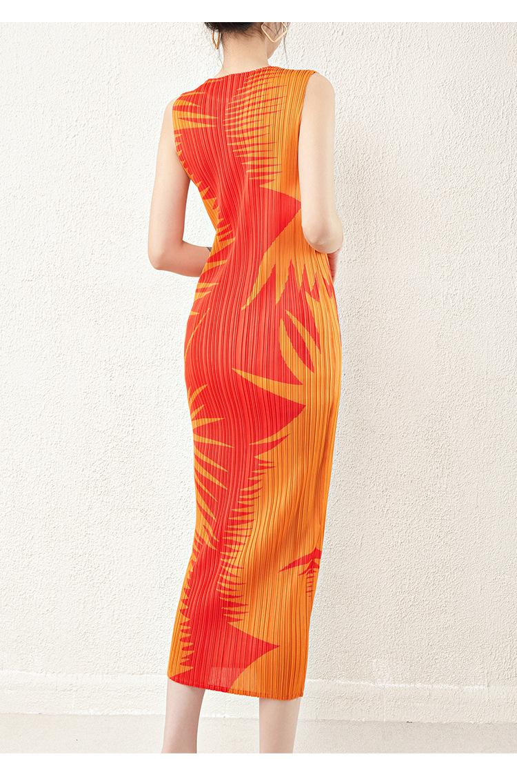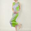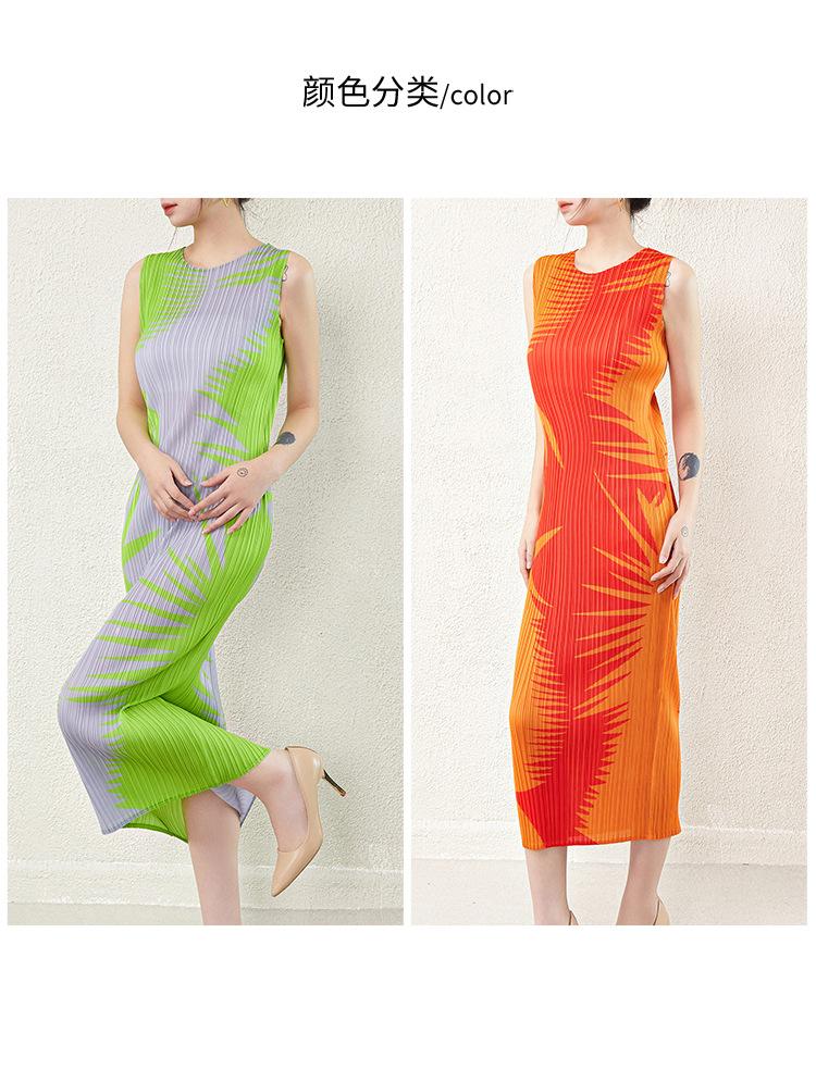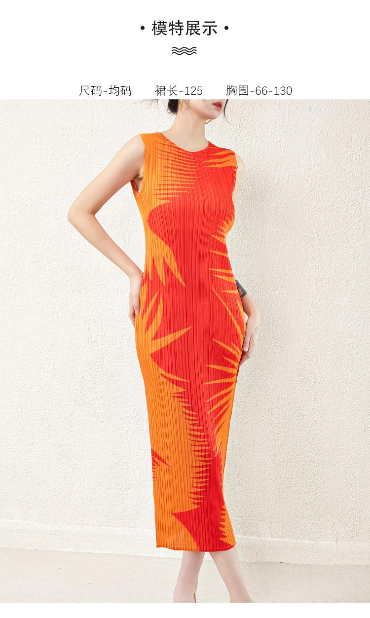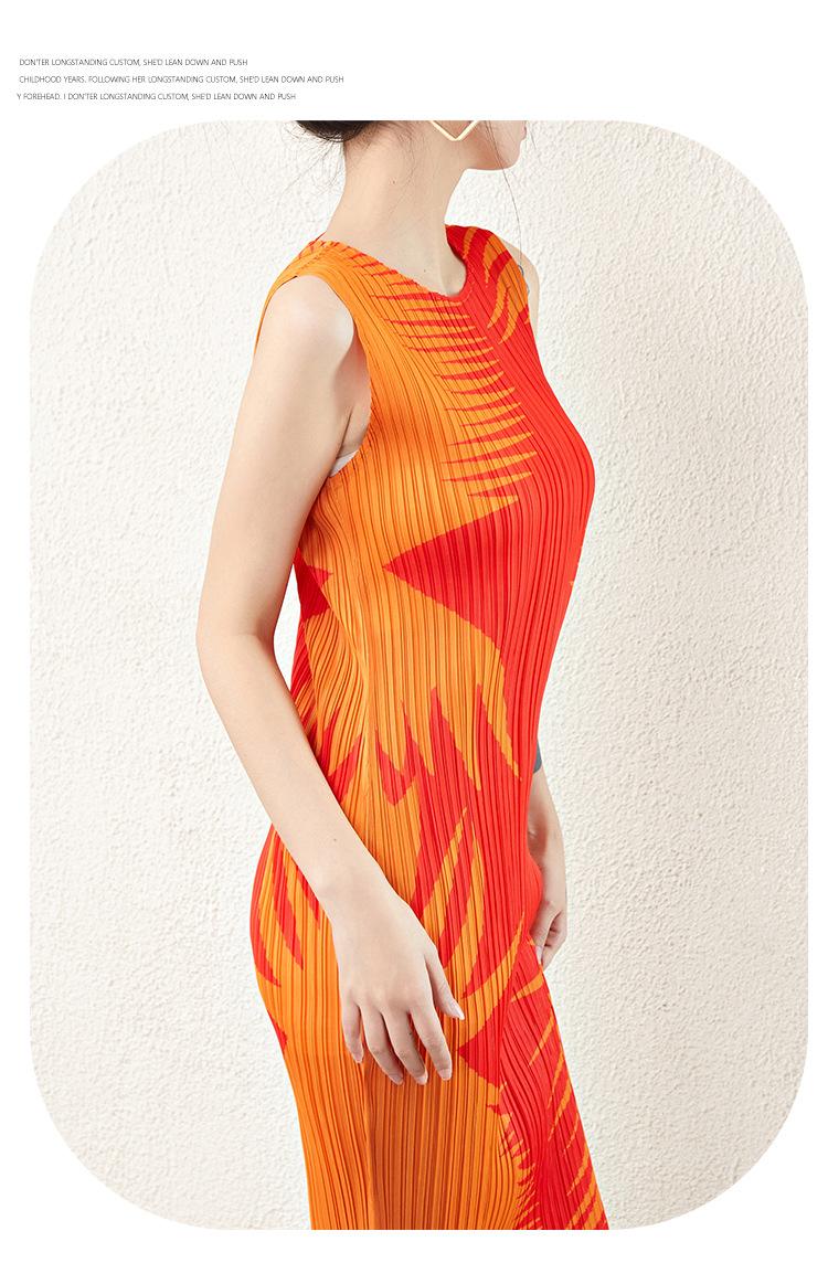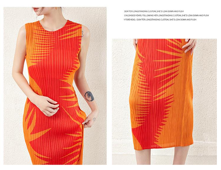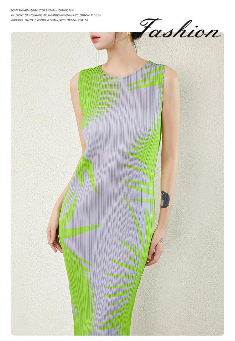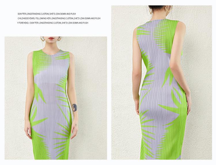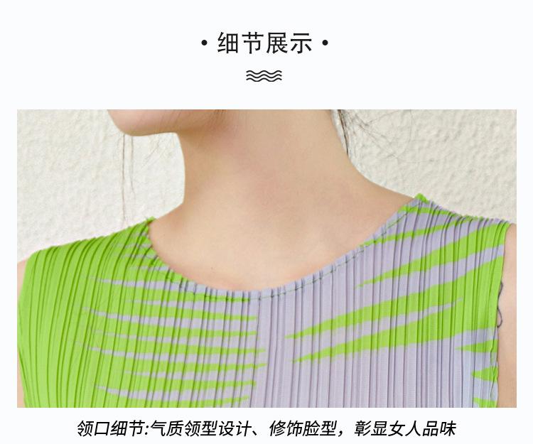 Miyake Verano Elegante Cuello Redondo Vestido Chaleco Slim Nuevo Estampado Sin Mangas de Alta Gama Plisado Moderno Vestido Base