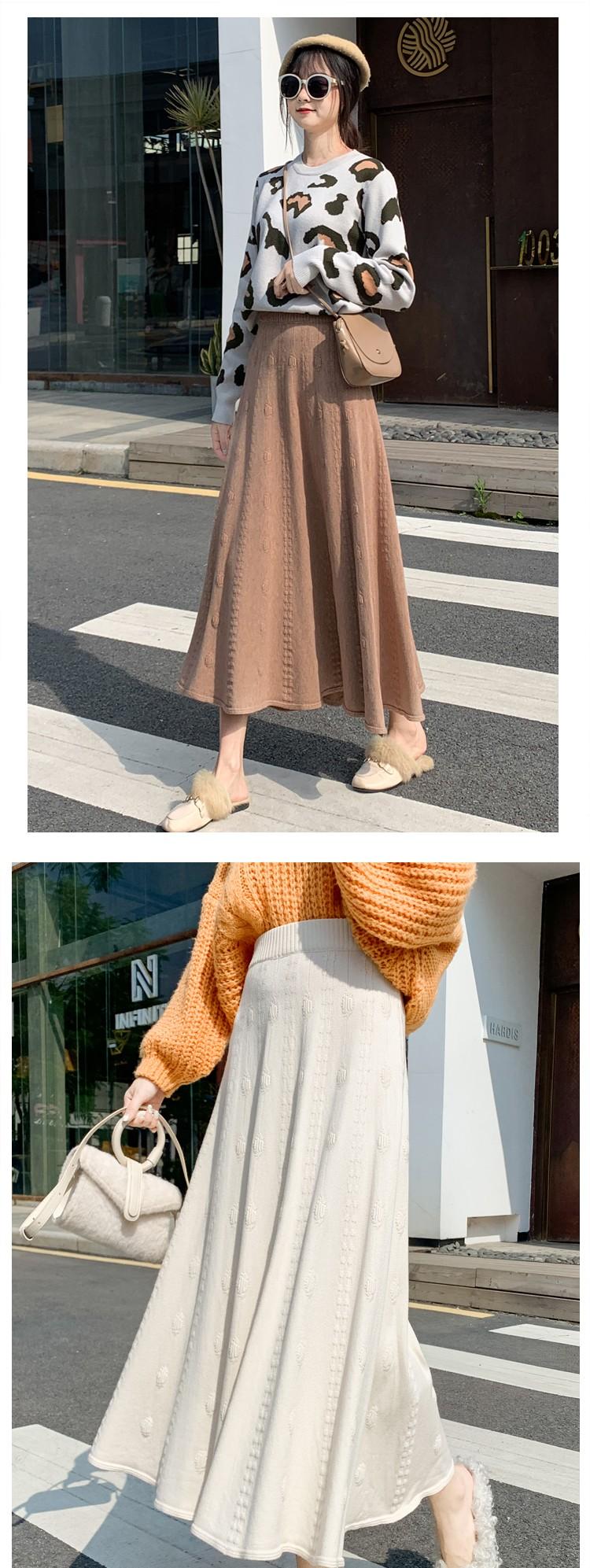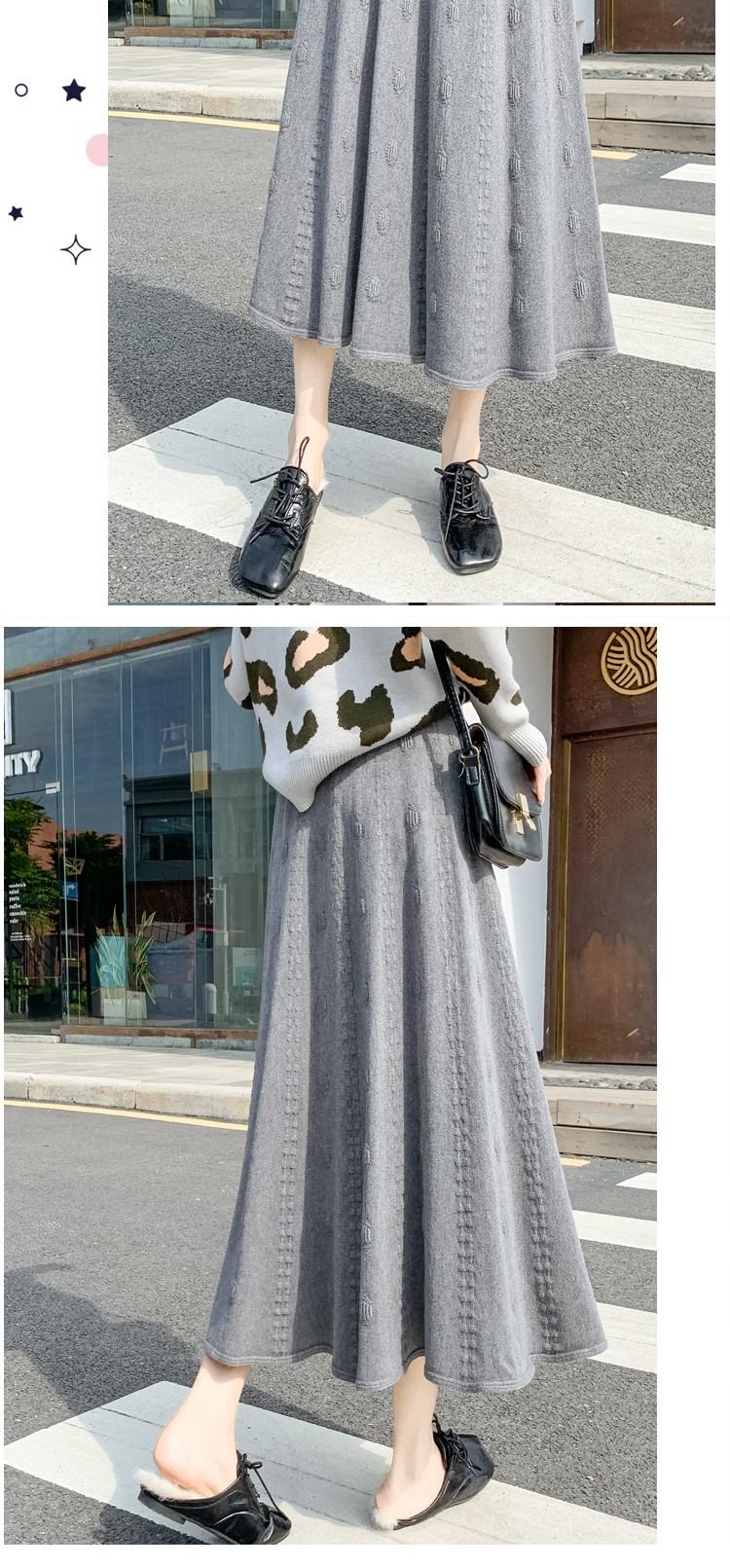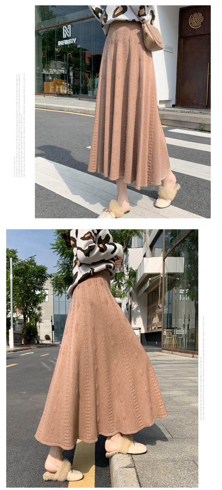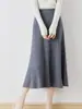 Falda de punto para mujer, otoño e invierno, pequeña, de longitud media, cintura alta, elegante, de corte A, de lana, gruesa, de invierno
