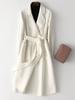 Abrigo de Cachemira de Doble Cara para Mujer Largo Medio Blanco Elegante 2025 Otoño e Invierno Nuevo Abrigo de Lana Estilo Coreano Slim Venta al por Mayor