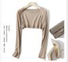 | Chaqueta cárdigan de manga larga de punto de seda fina de verano nueva para mujer, chaqueta holgada con protección solar, prenda exterior corta, chal de color liso |
