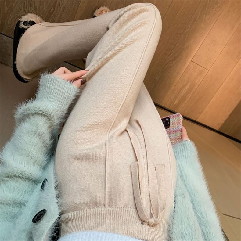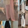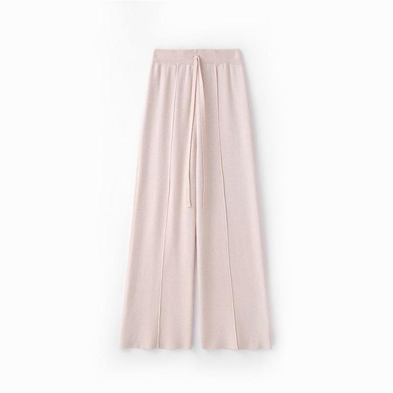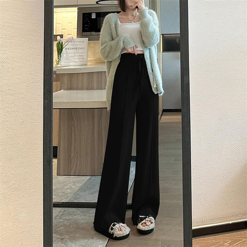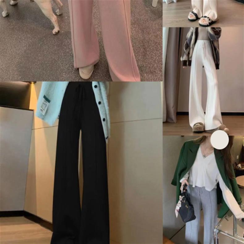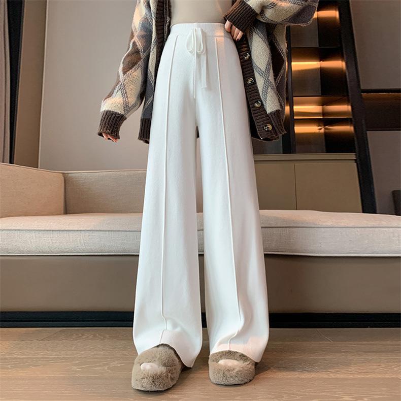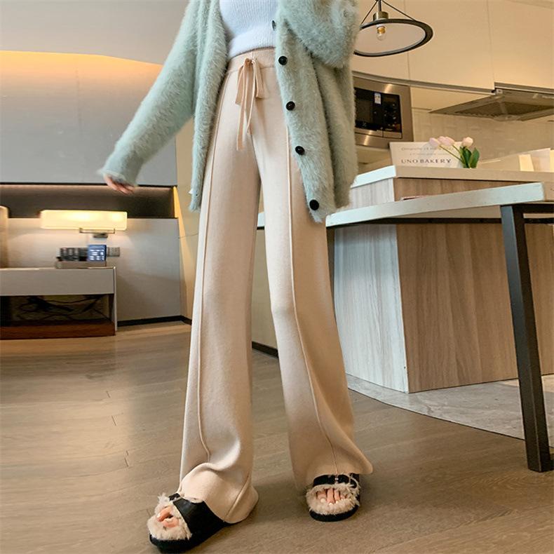 Pantalones de Punto Suaves y Cerosos de Pierna Ancha para Mujer, Pantalones Casuales Largos hasta el Piso para Otoño, Drapeado de Cintura Alta, Nuevo Estilo 2025, Pantalones Acampanados Ligeramente Sueltos