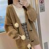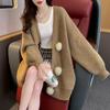 Cárdigan de punto de talla grande para mujer, suéter holgado con hebilla de cuerno, abrigo a juego, primavera y otoño de 2023