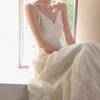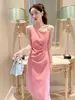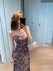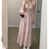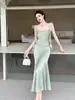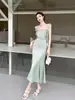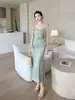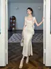 Falda Larga Slim Cola de Pescado 2025 Verano Nuevo para Mujer Estilo Francés Suave Cuello Cuadrado Slim Vestido de Tirantes 9657