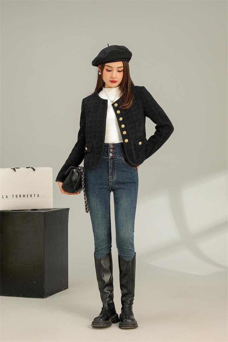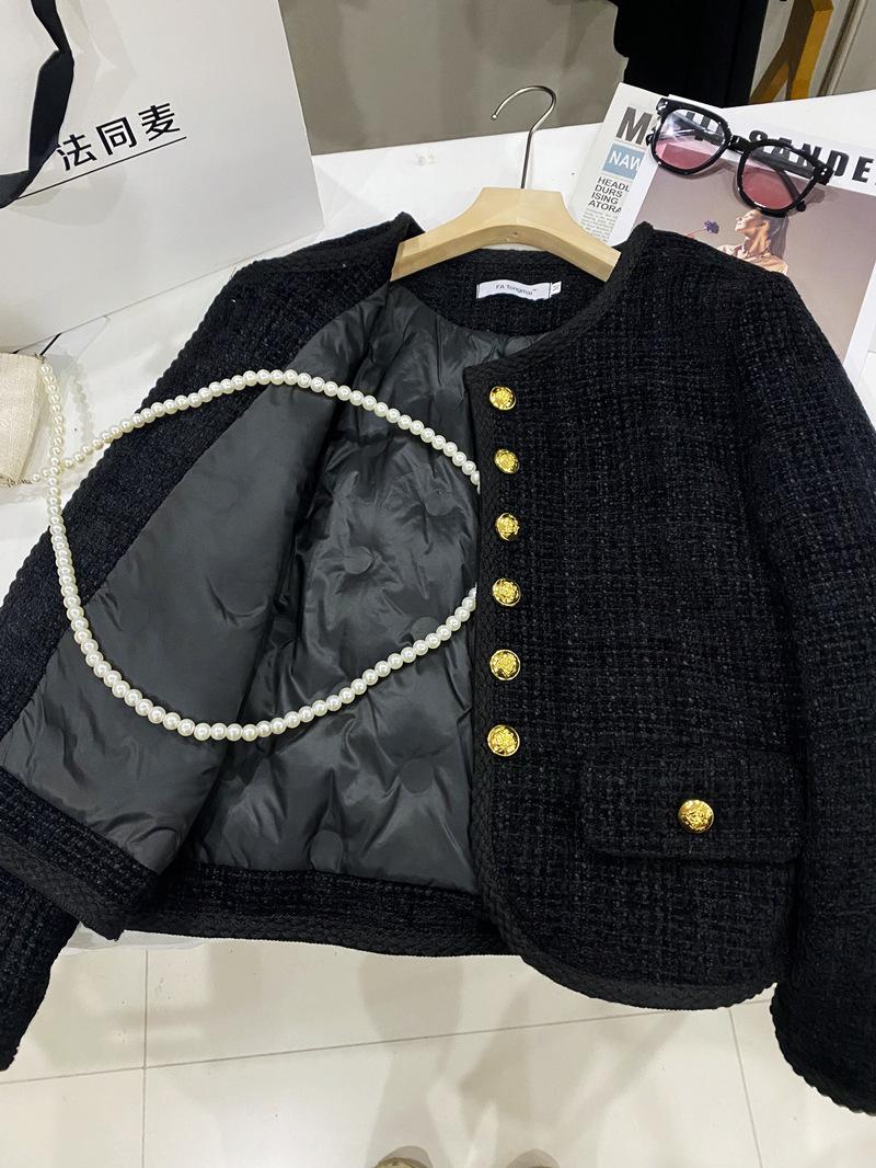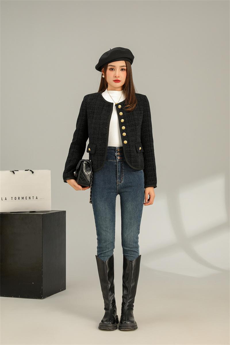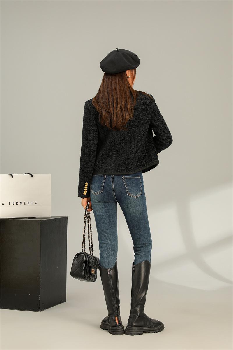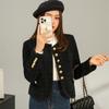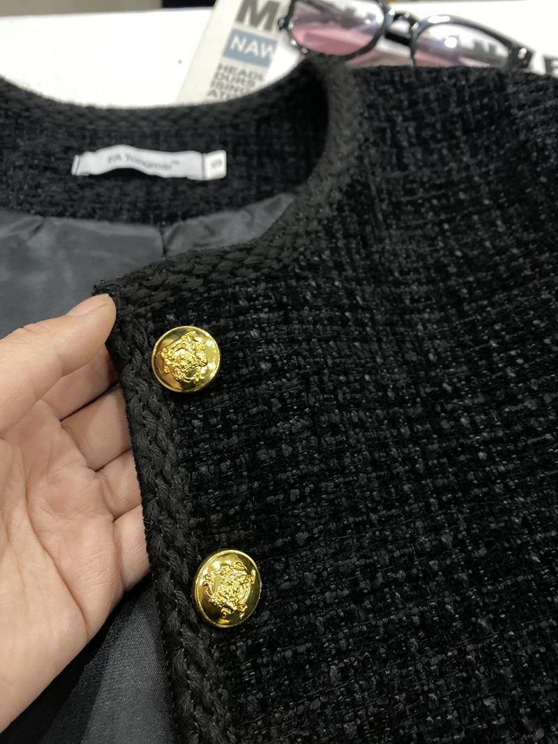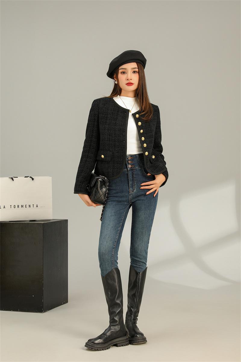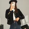 Abrigo elegante estilo Chanel dorado negro para primavera y otoño, abrigo corto retro francés de alta gama para socialité, cuello redondo, top de alta gama