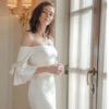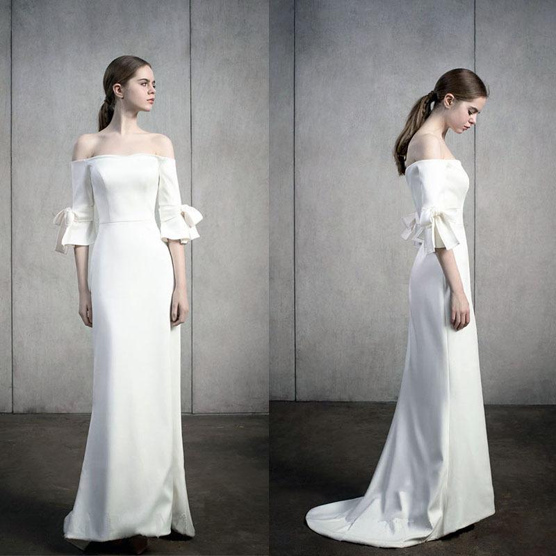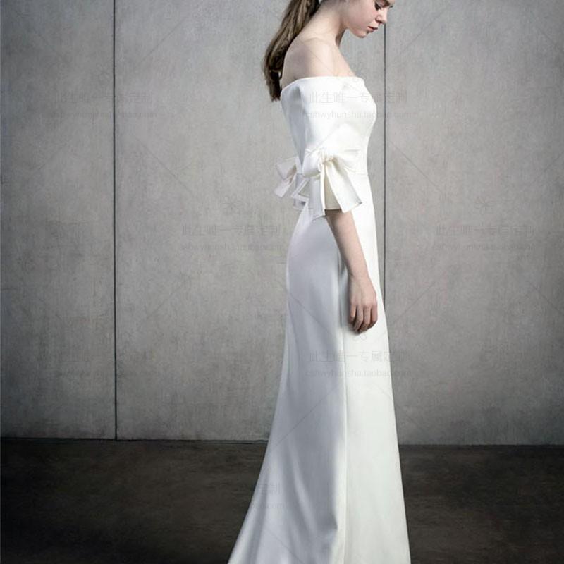 Vestido de Boda Ligero, Cola de Pez de un Hombro, Elegante Vestido Blanco Estilo Princesa de Satén con Cola, Vestido de Noche para Mujer