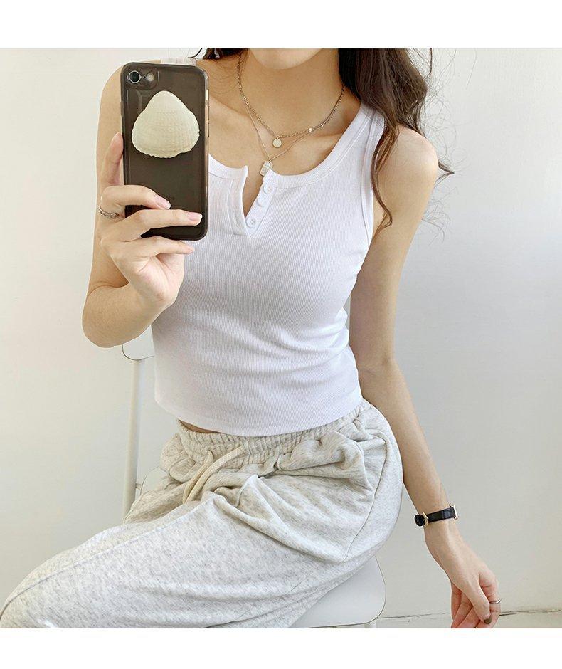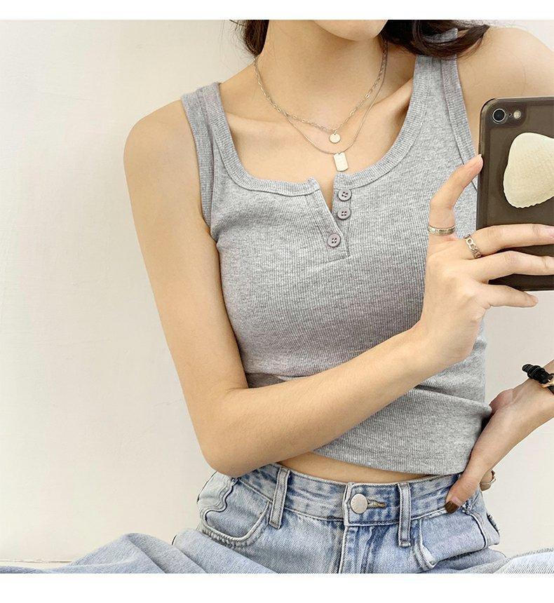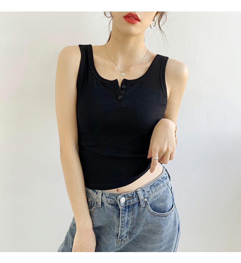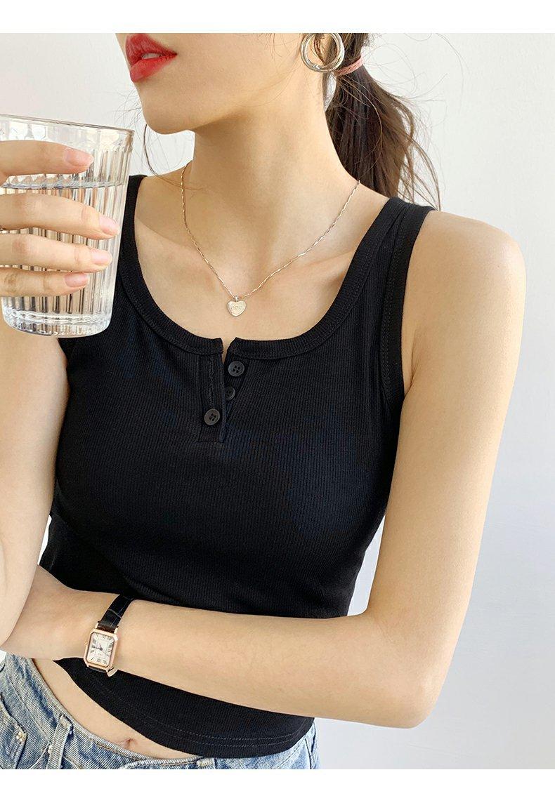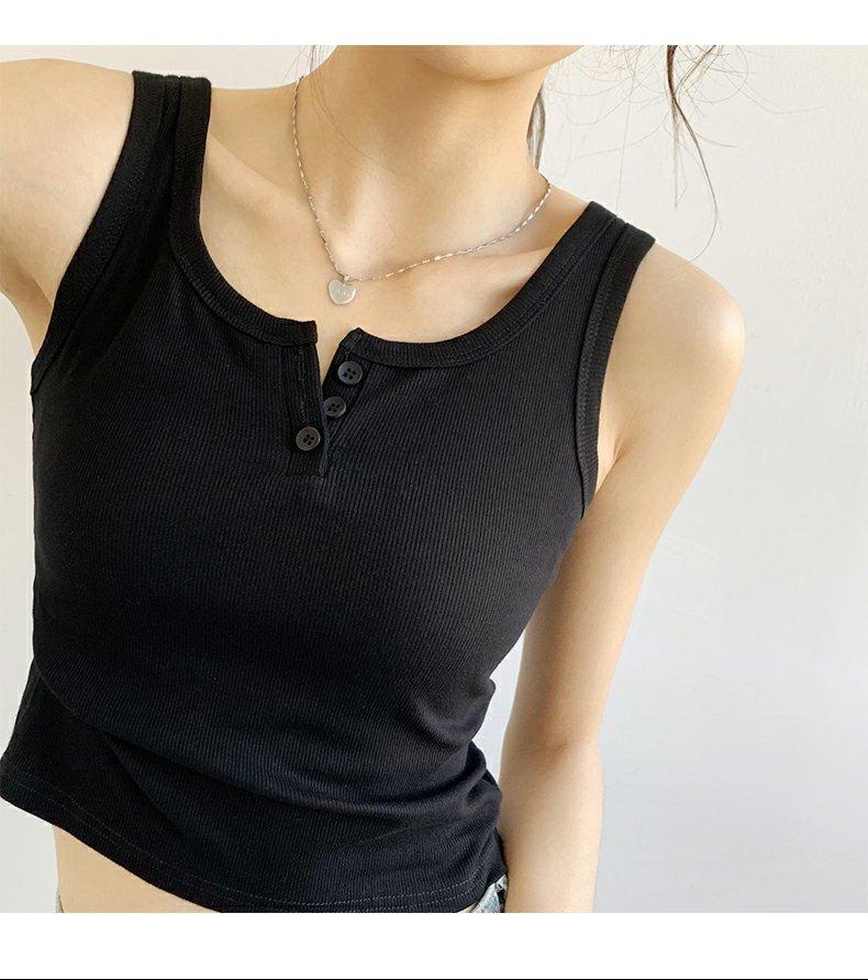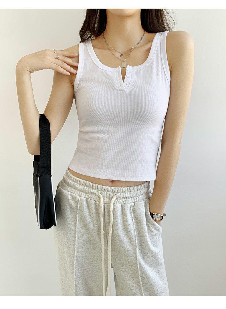 Chica Caliente Ajustado Sin Mangas Tirante Fino Pequeño Diseño de Primavera y Verano Top Corto Ajustado de Canalé