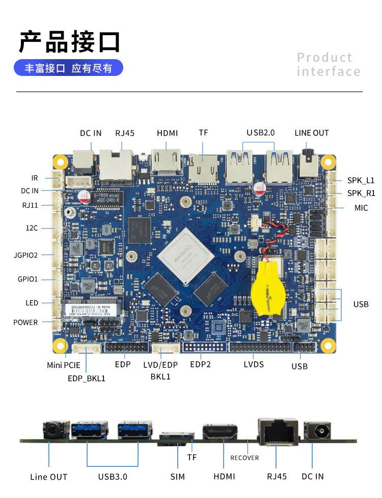 Placa base industrial inteligente JWIPC con plataforma ARM microindustrial RK3399 de cuatro núcleos y decodificación Android 4K, placa base multifuncional