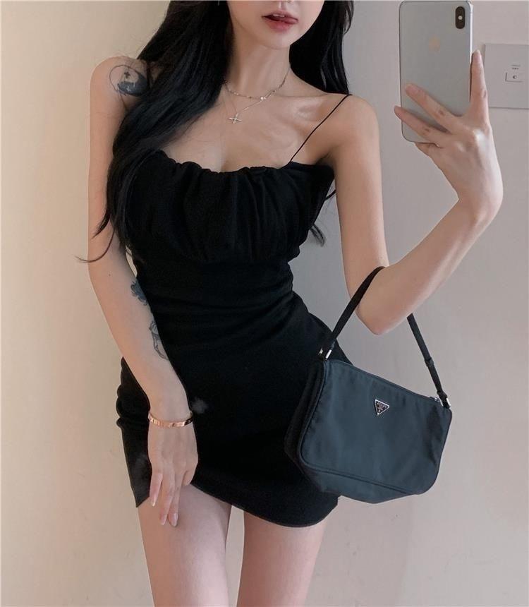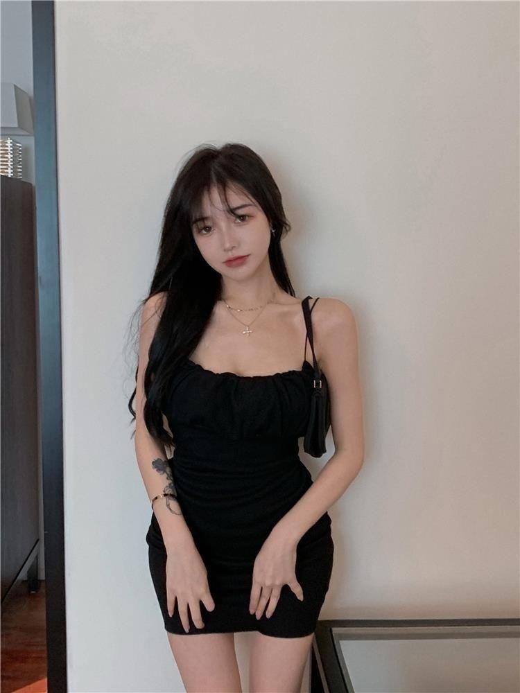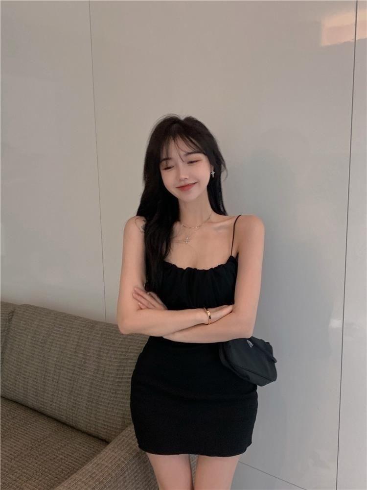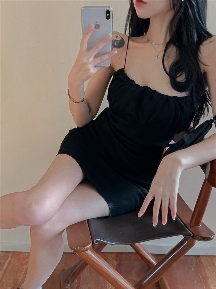 Red de Internet puro deseo para el viento femenino verano adelgazante sexy color sólido tirantes vestido de cadera cintura delgada ligero