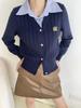 Mengzi chic 2023 otoño e invierno estilo universitario ropa pequeño cárdigan de punto suéter de dos piezas falsas para mujer X1763