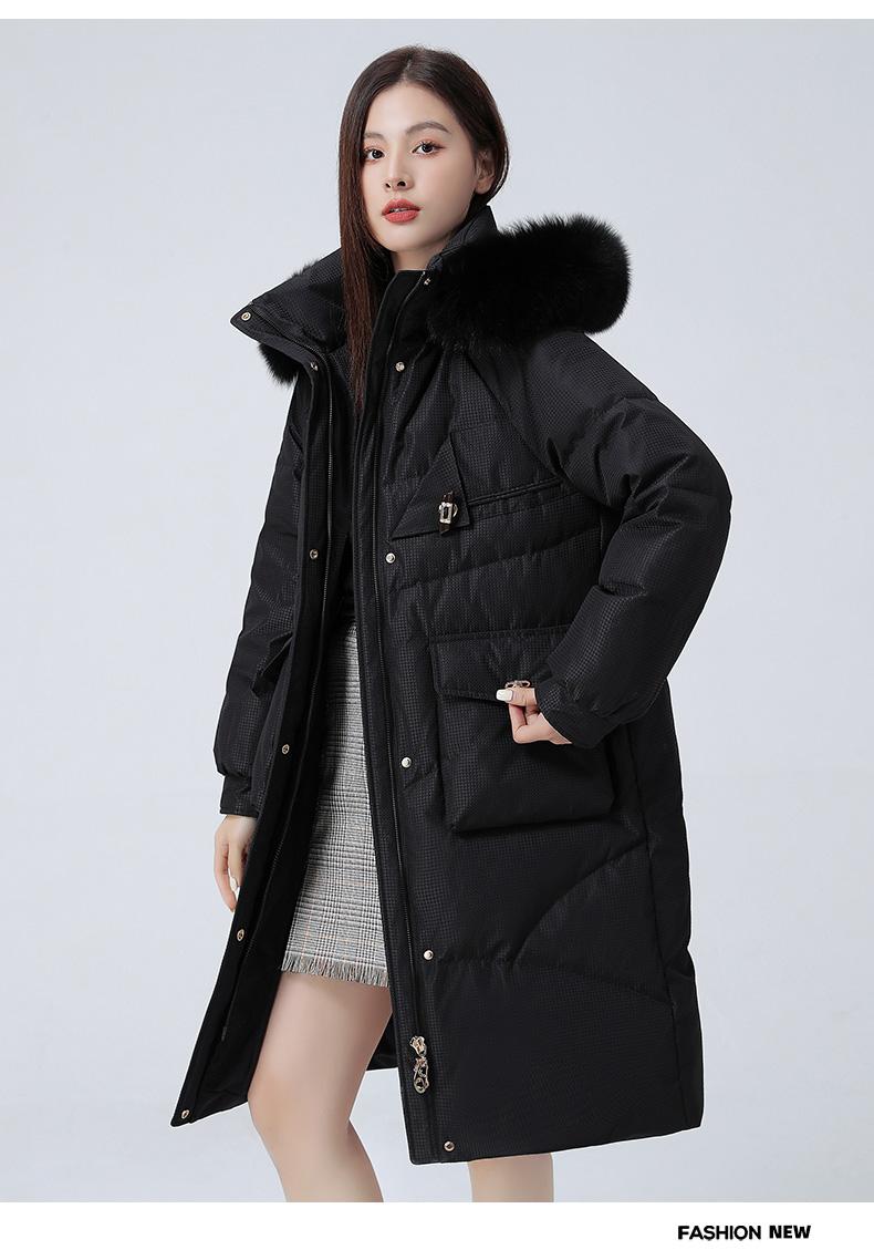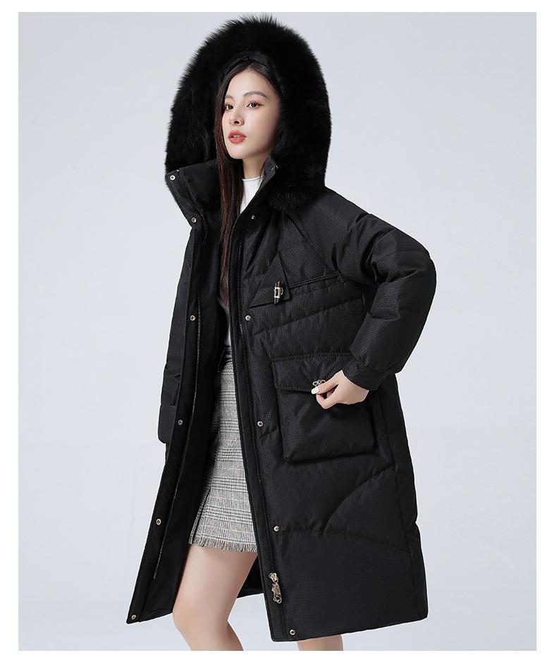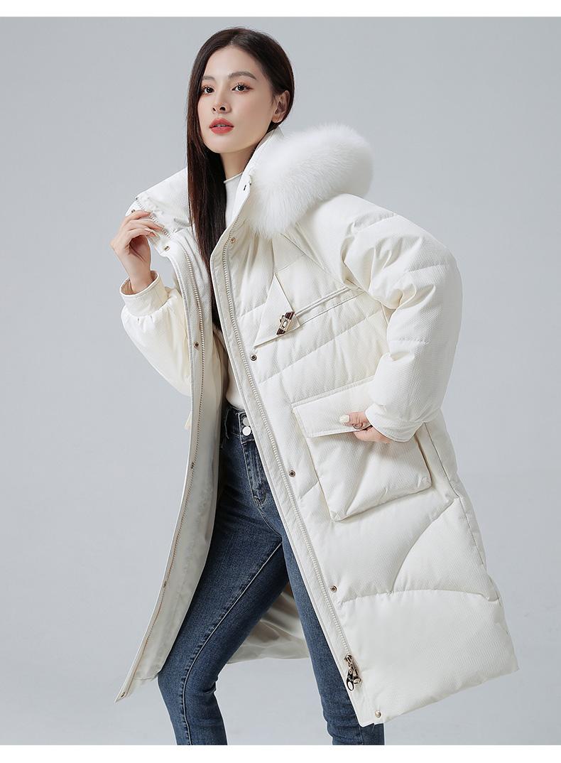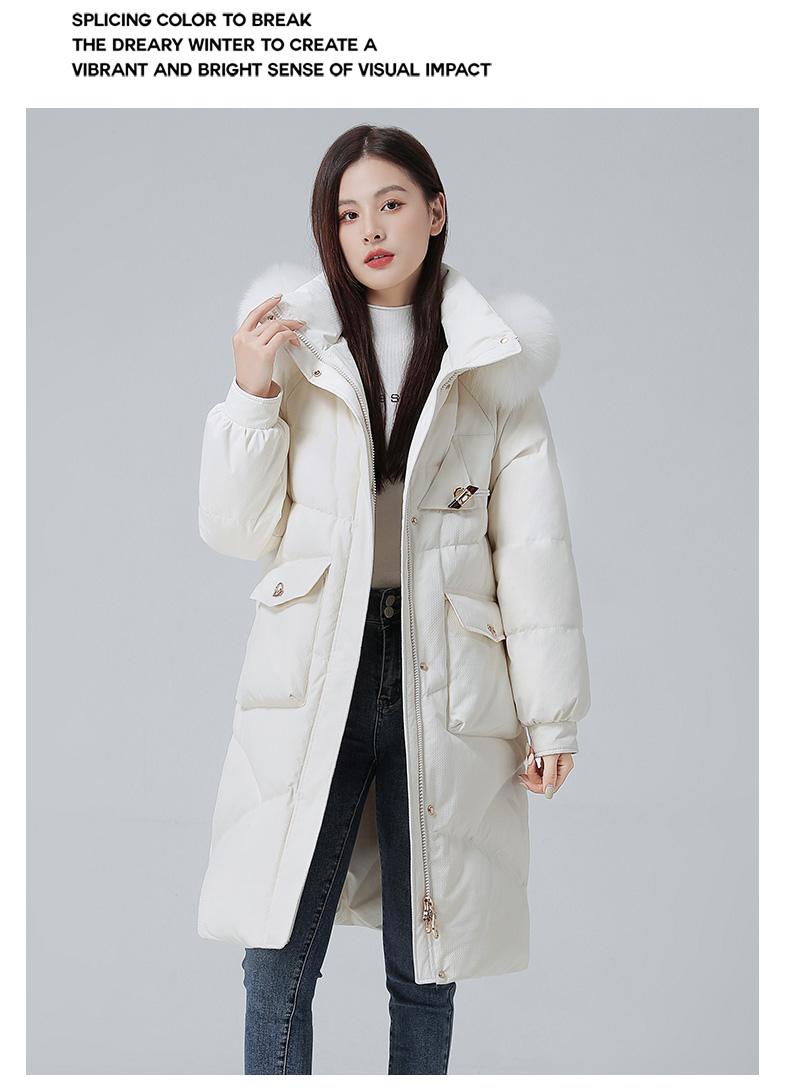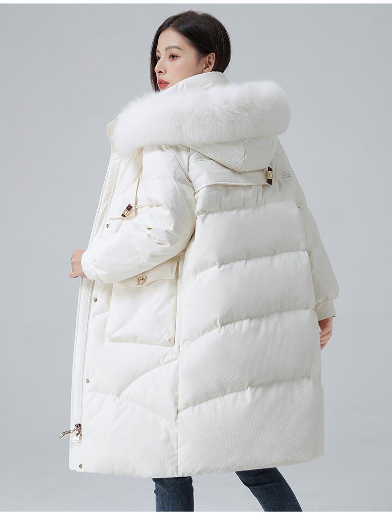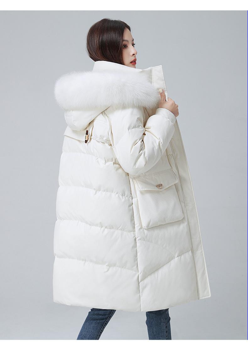 Chaqueta de plumón de pato para mujer 2025 Otoño Nueva Largo Medio con Capucha Cuello de Piel de Zorro Chaqueta Cálida de Moda Y