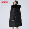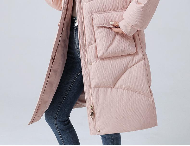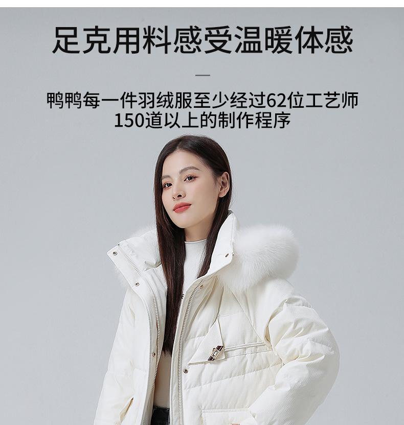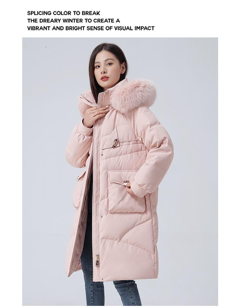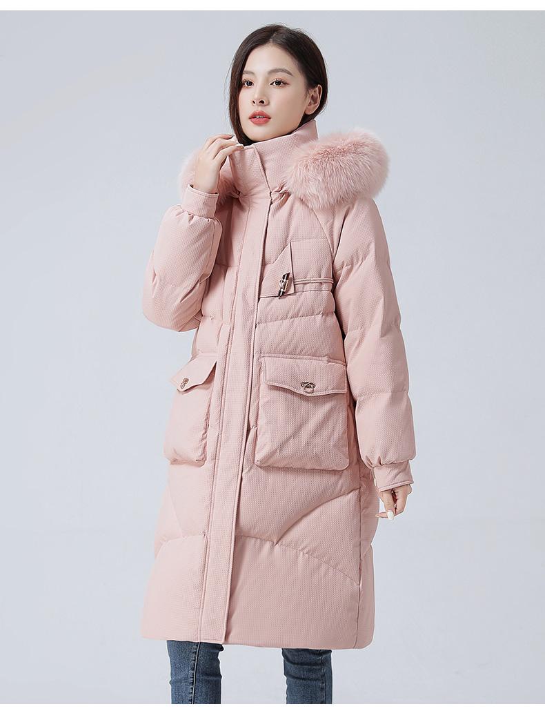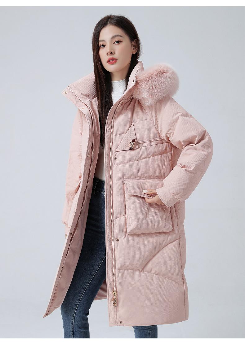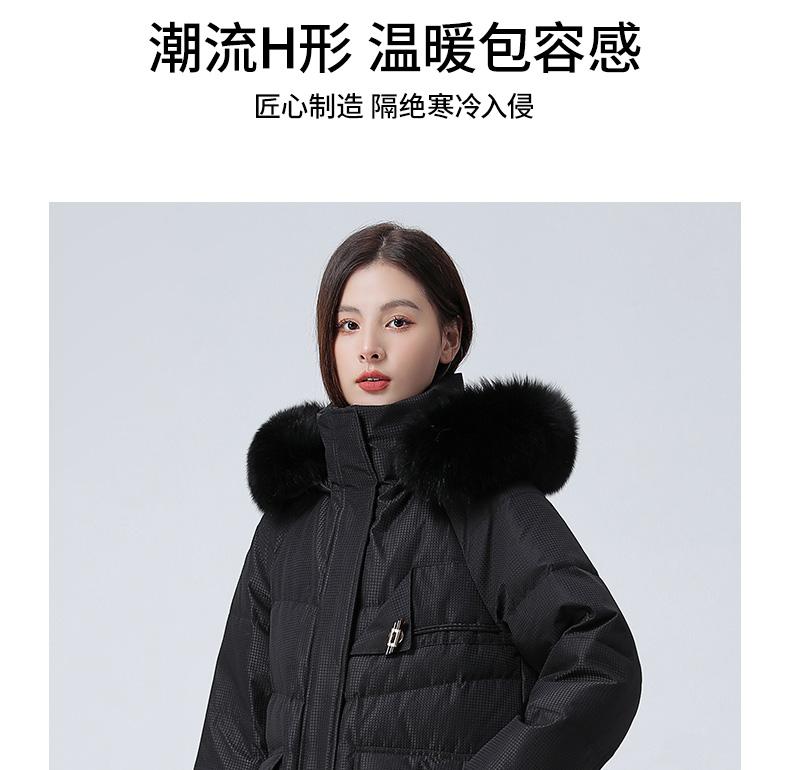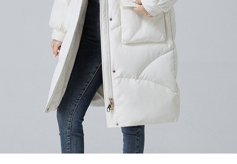 Chaqueta de plumón de pato para mujer 2025 Otoño Nueva Largo Medio con Capucha Cuello de Piel de Zorro Chaqueta Cálida de Moda Y