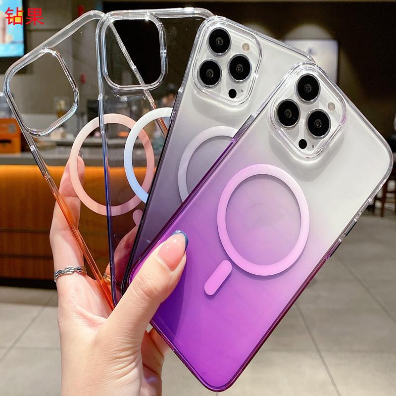 Nueva funda protectora transparente anticaídas con botones metálicos y succión magnética degradada para iPhone 13 Pro Max 12