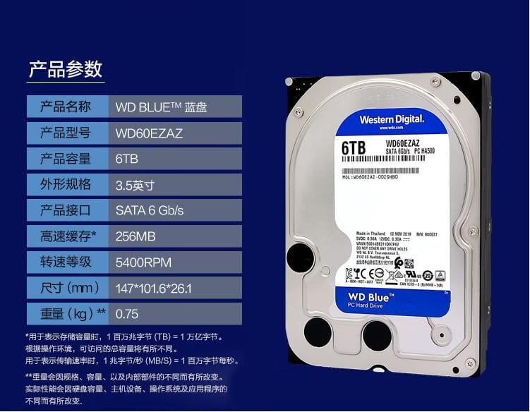 Western Digital (WD) Blue Disk 3.5 inch SATA3 6GB computer desktop mechanical hard disk blue disk 20EZBX 2T