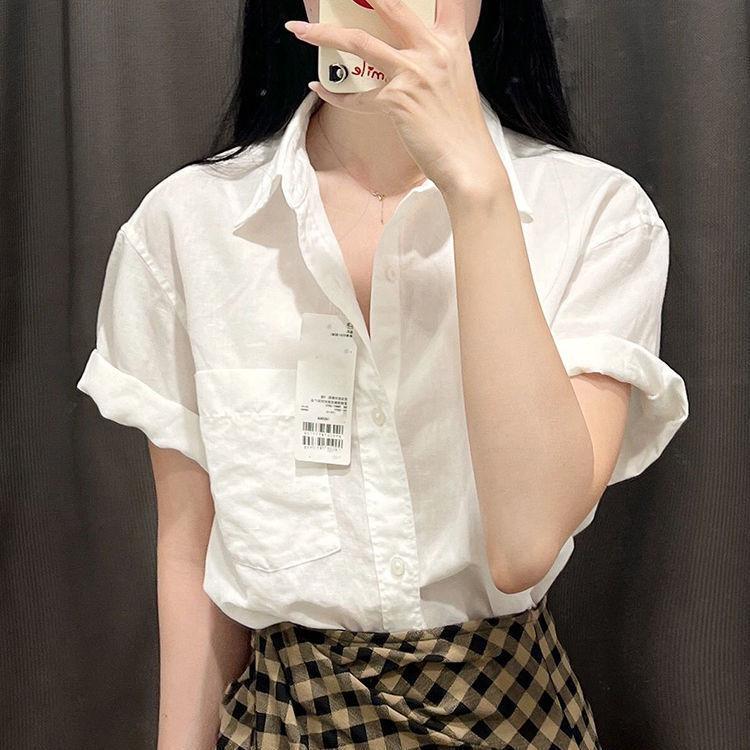 Top Holgado Estilo Hong Kong para Mujer 2025 Verano Nuevo Estilo Diseño Chic Francés Nicho Camisa Blanca