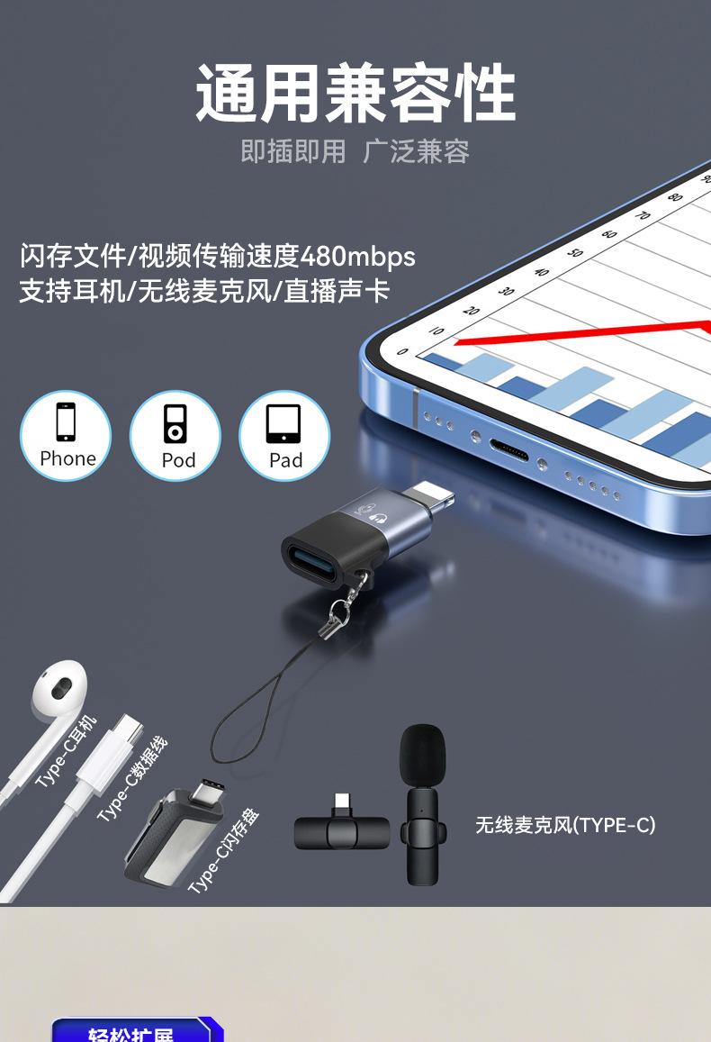 Adaptador Apple OTG de Amazon más vendido, convertidor, micrófono inalámbrico, adaptador Typec a auricular