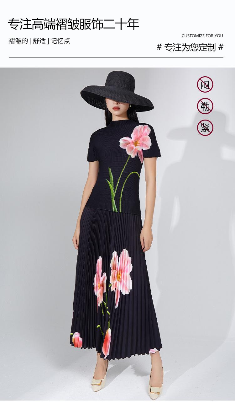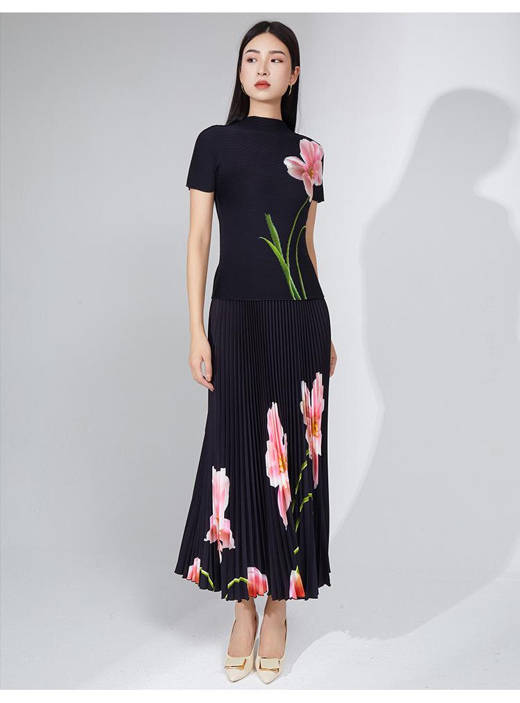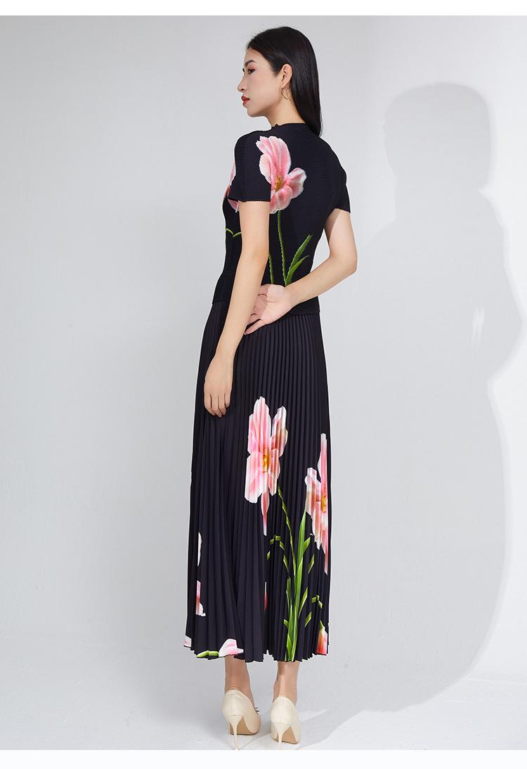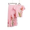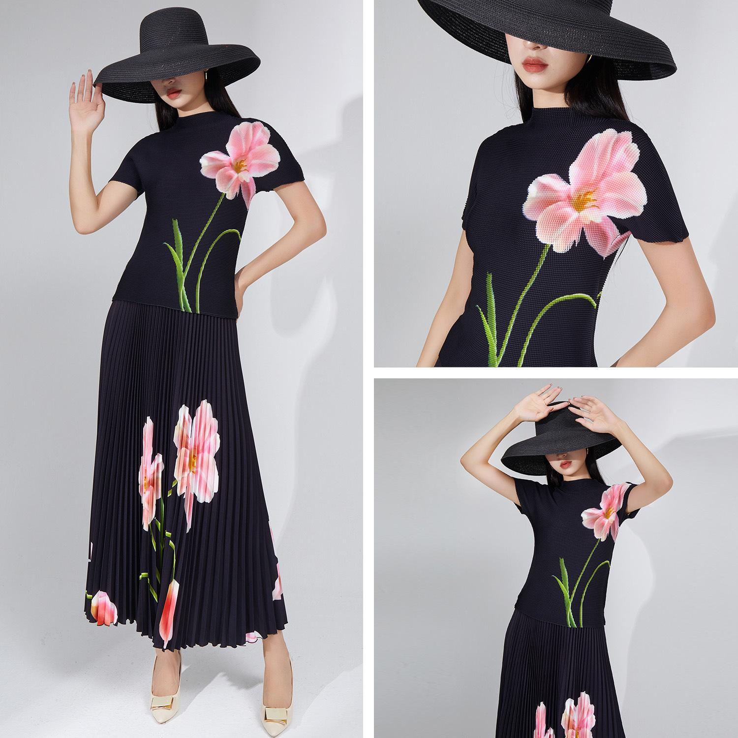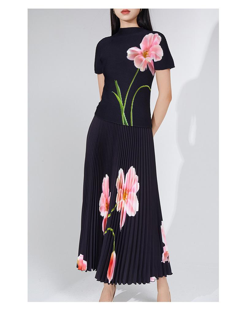 Traje Popular de Exportación Transfronteriza para Mujer Verano Nuevo Camiseta Estampada Top Manga Corta Falda Larga Conjunto de Dos Piezas