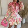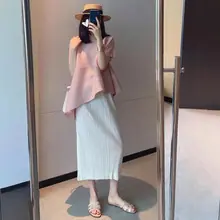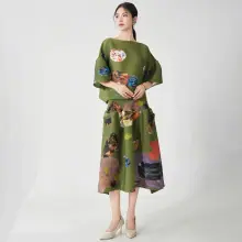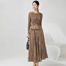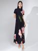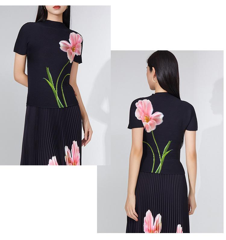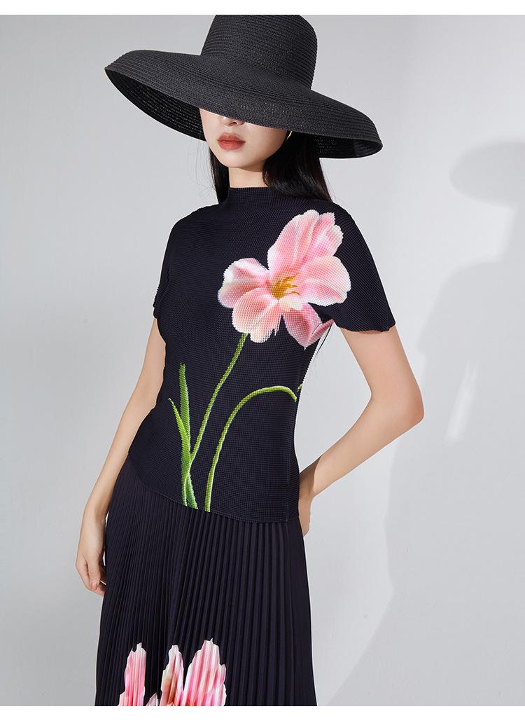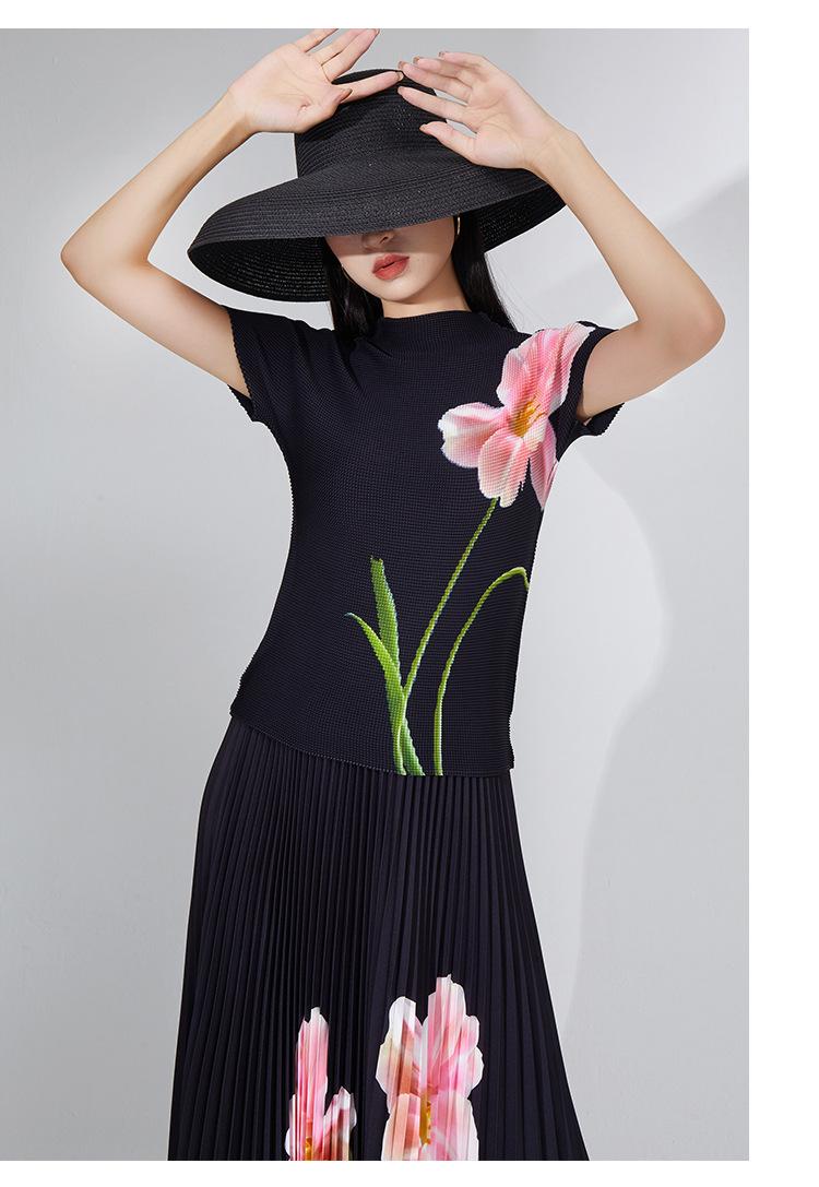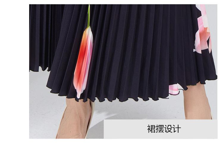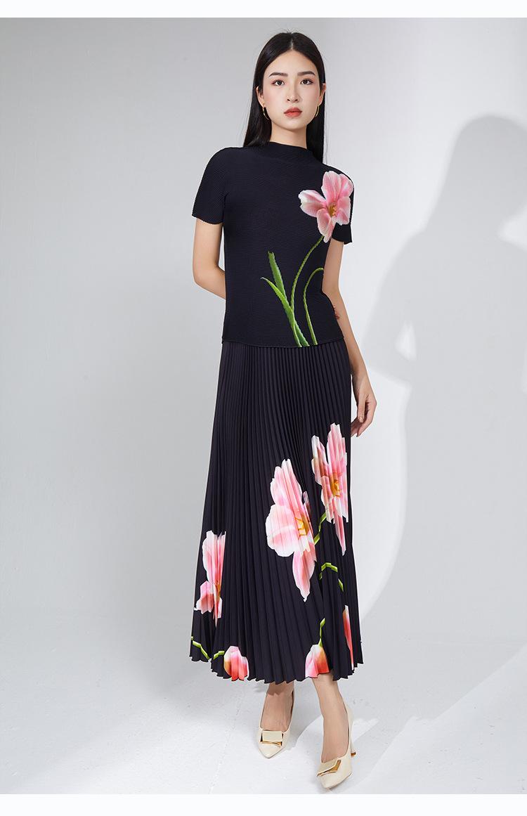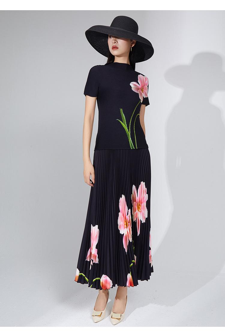 Traje Popular de Exportación Transfronteriza para Mujer Verano Nuevo Camiseta Estampada Top Manga Corta Falda Larga Conjunto de Dos Piezas