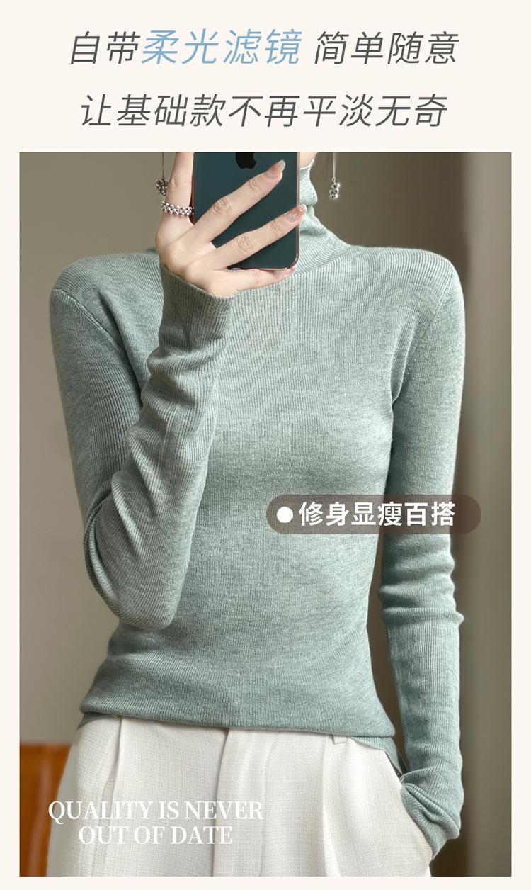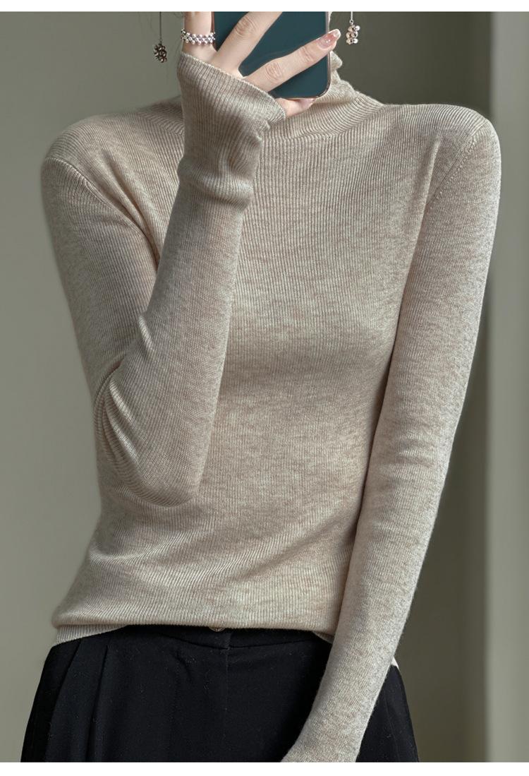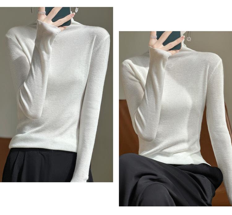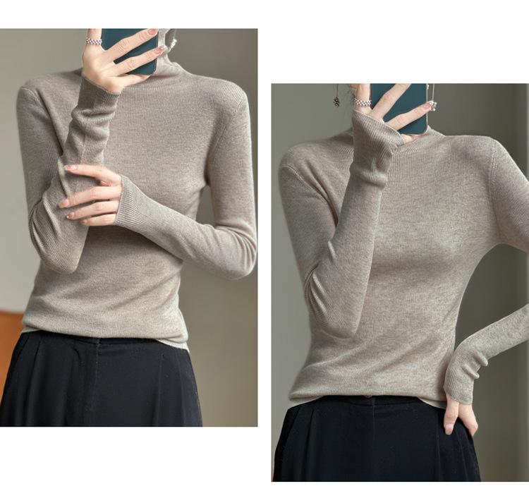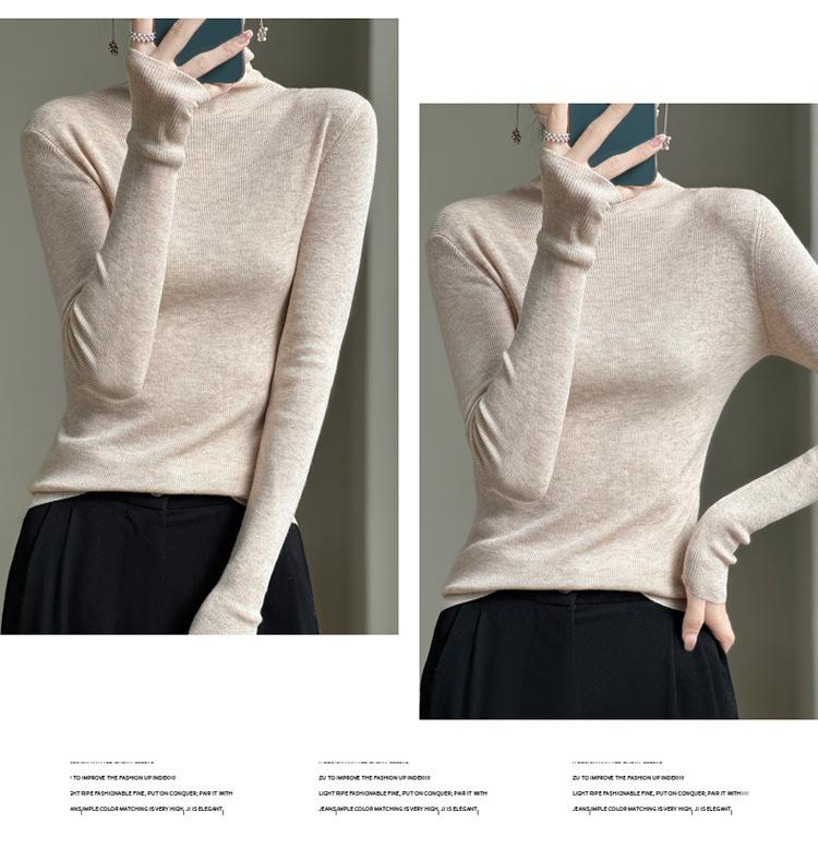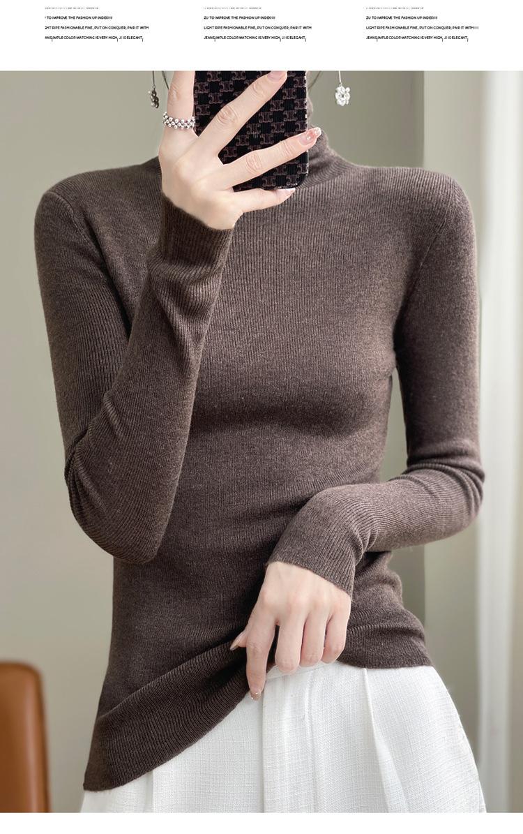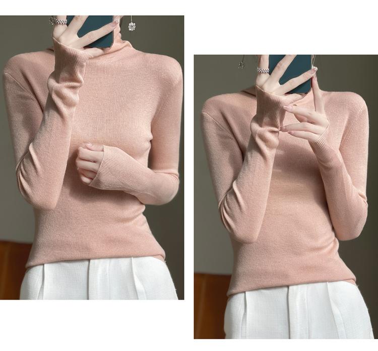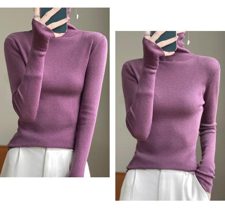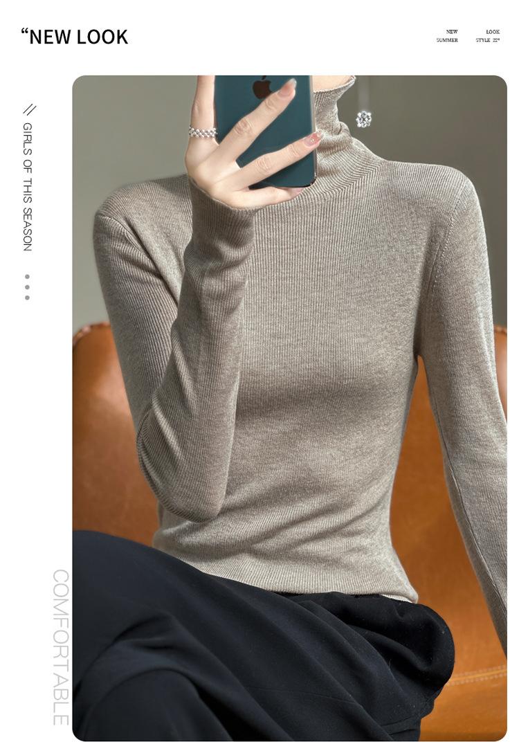 Cuello Alto Otoño e Invierno 2025 Estilo Coreano Suéter de Punto de Manga Larga con Cuello Alto para Mujer Pulóver Ajustado Camiseta Básica