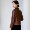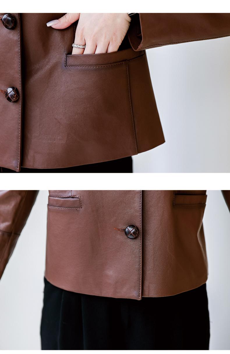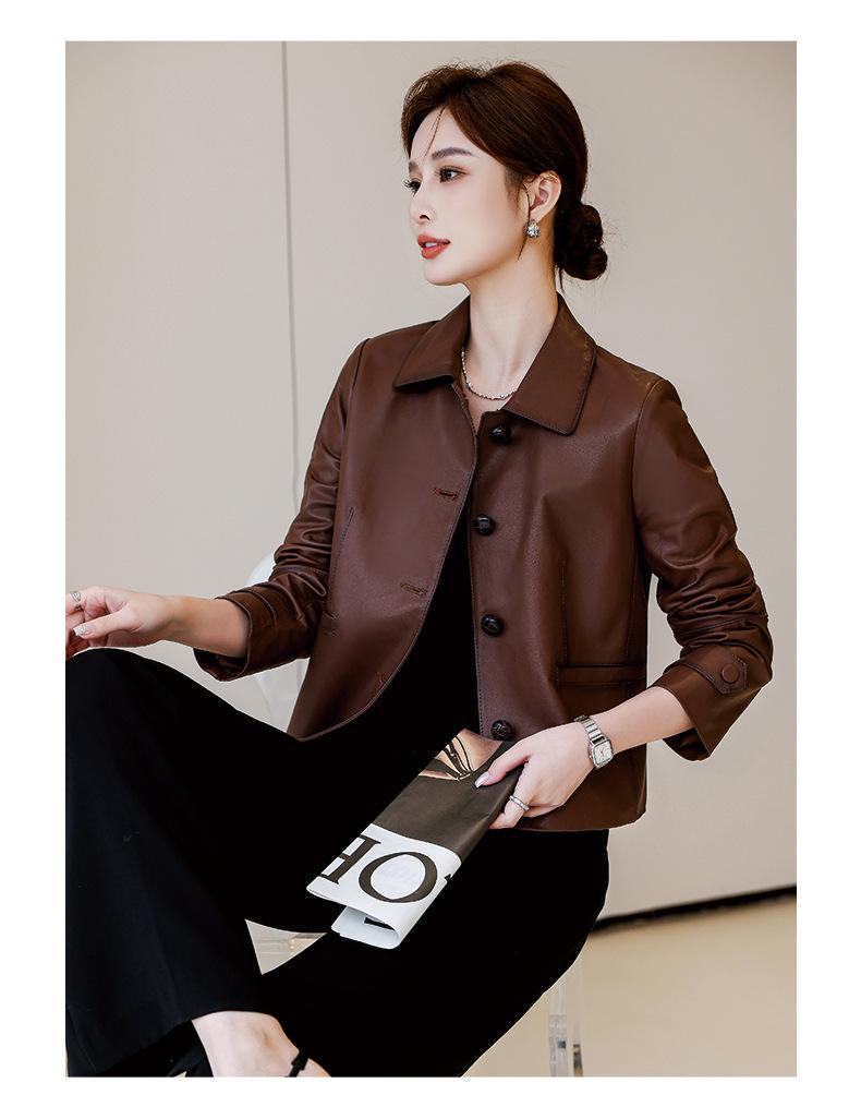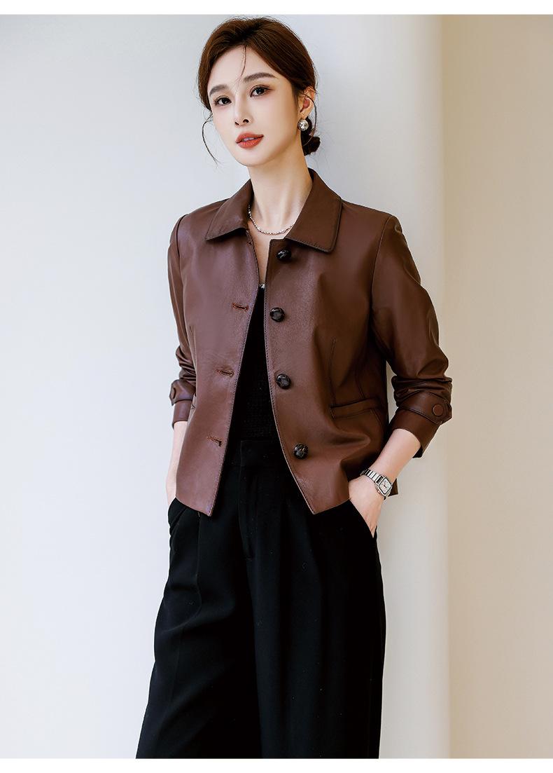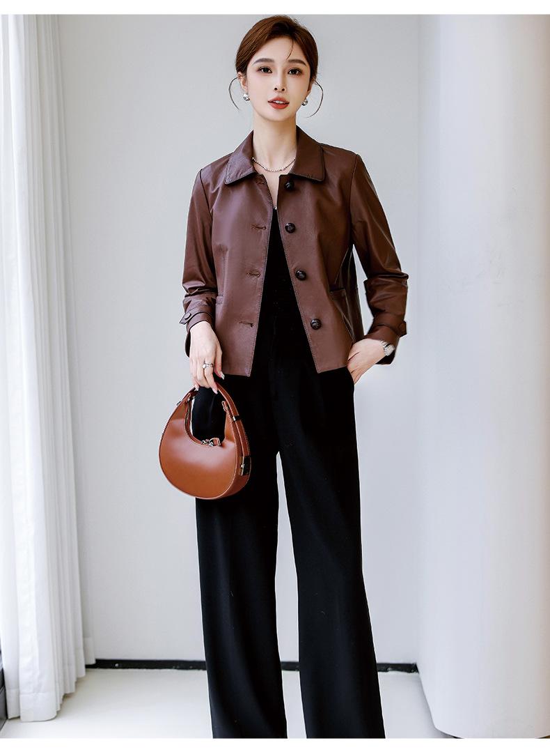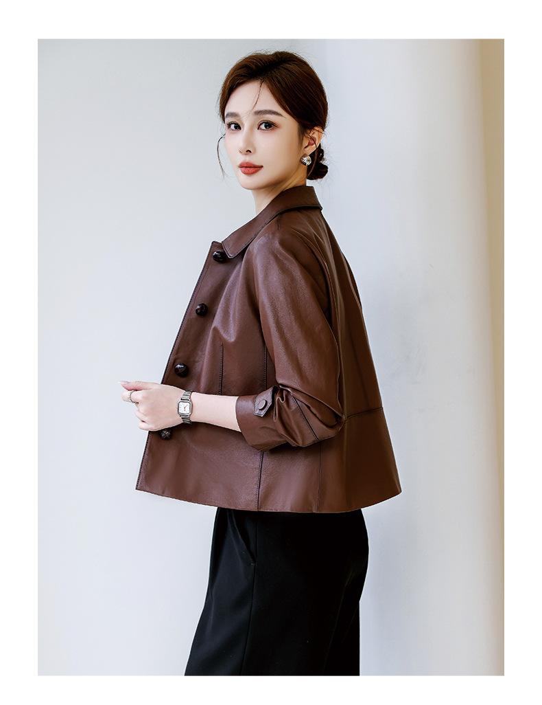 Abrigo de piel auténtica de Haining Spring para mujer, abrigo corto de moda con cuello cuadrado y capa superior de piel de oveja auténtica, abrigo informal