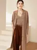 Nuevo cárdigan de cachemira para mujer, abrigo informal de punto de longitud media con solapa y hebilla exterior, suéter con hebilla de color liso