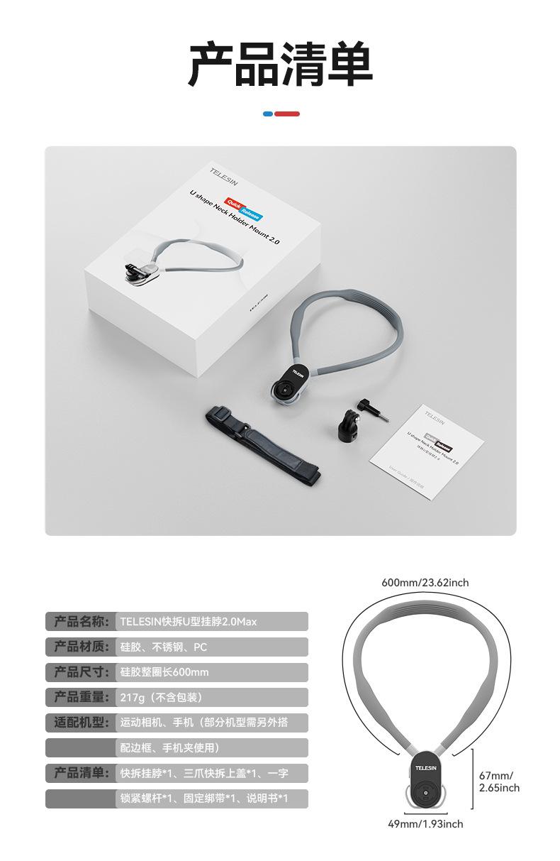 Telesin U-Shaped Halter Versión de Liberación Rápida Insta360 X4 Soporte de Cuello Action4 Dji 360