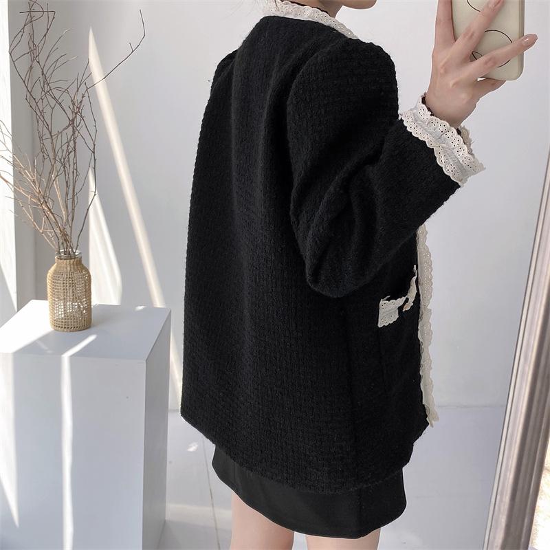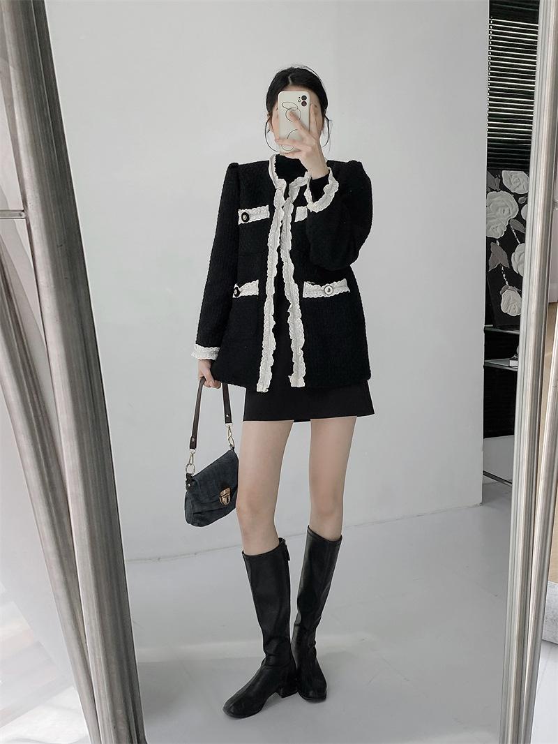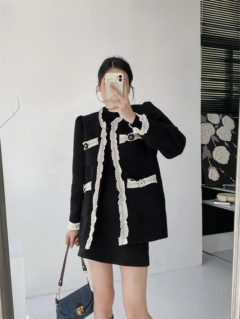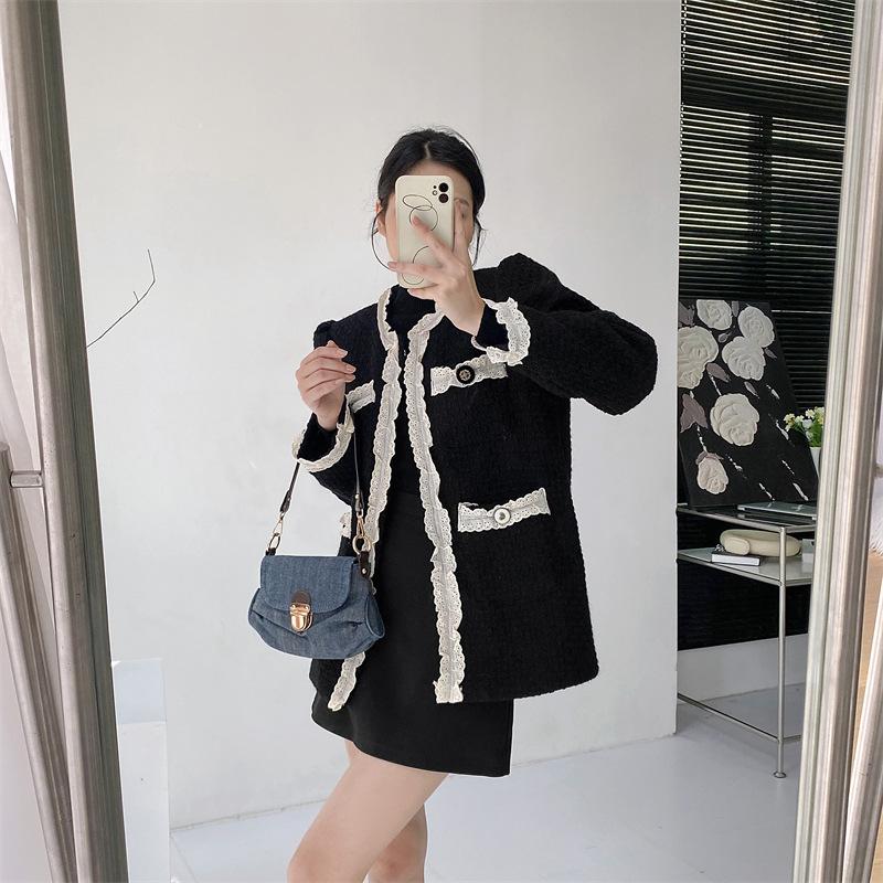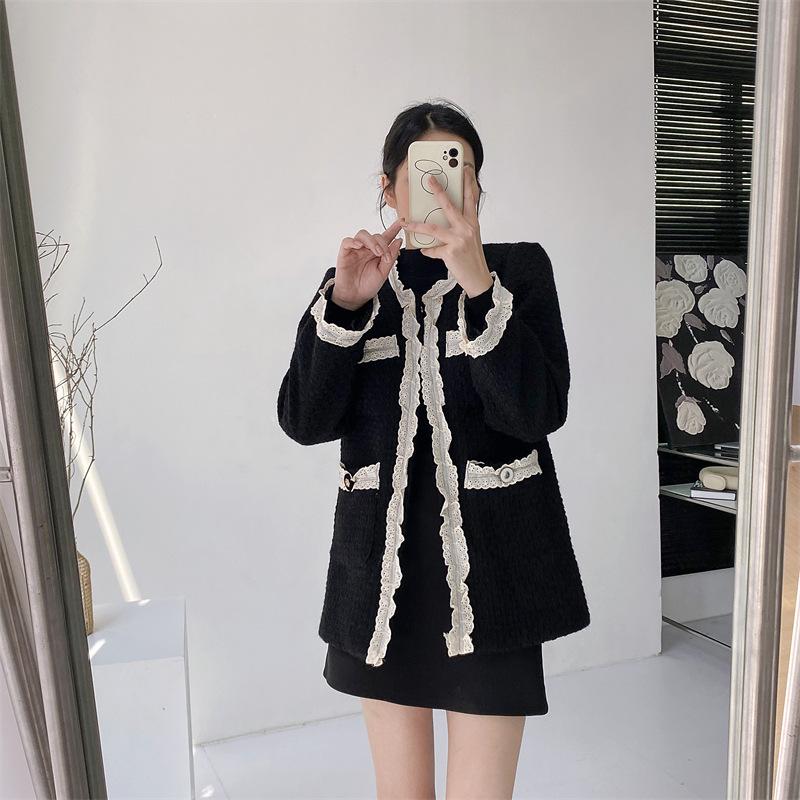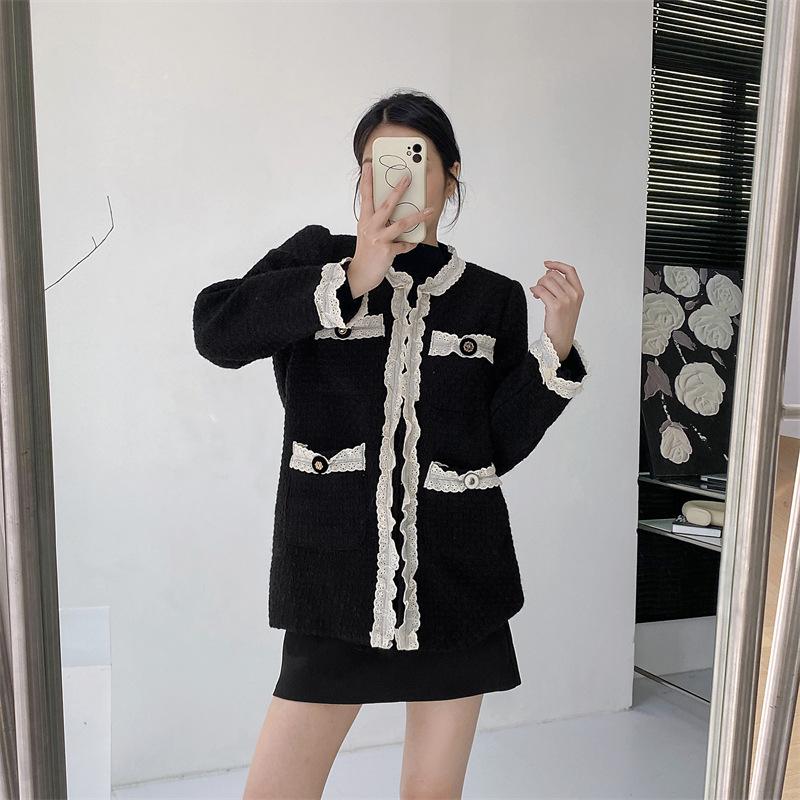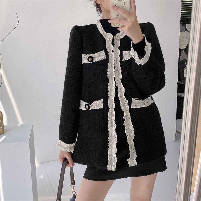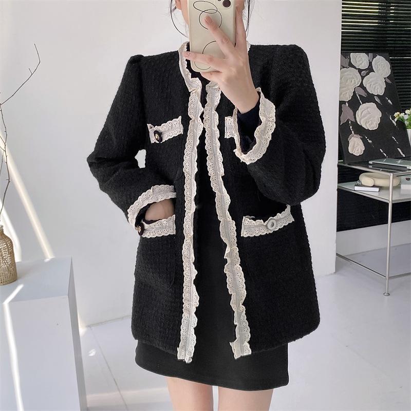 Abrigo de primavera y otoño estilo Chanel para mujer, de alta gama, nicho, retro, largo medio, holgado, adelgazante, top estilo Chanel para mujer, ropa de mujer