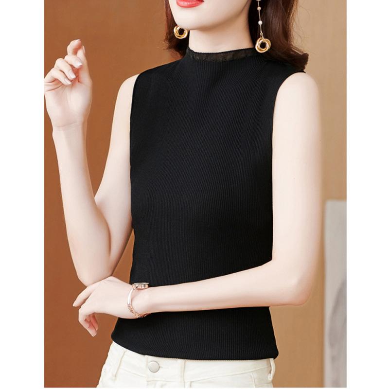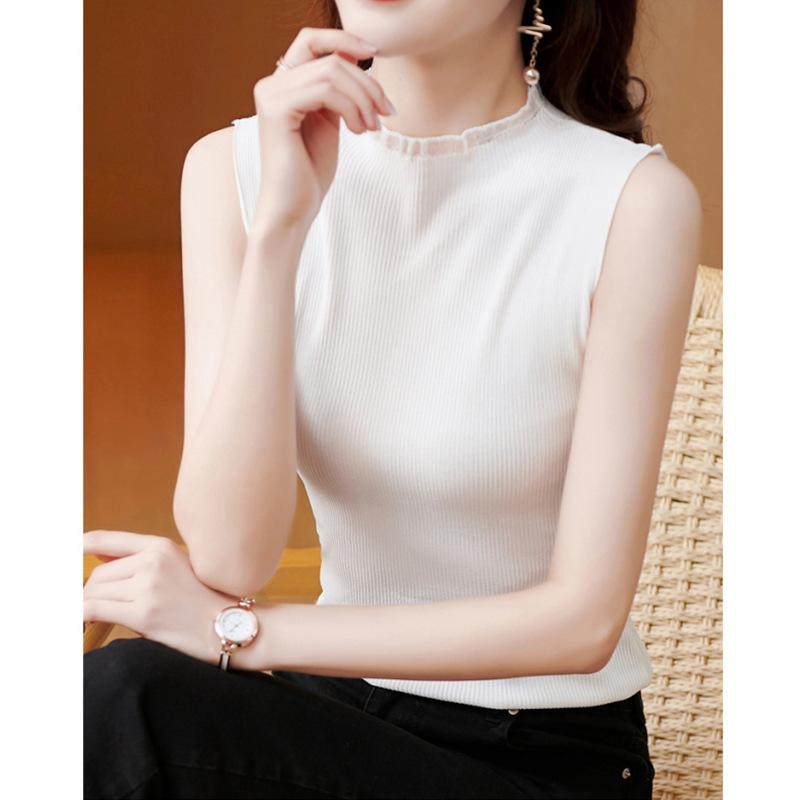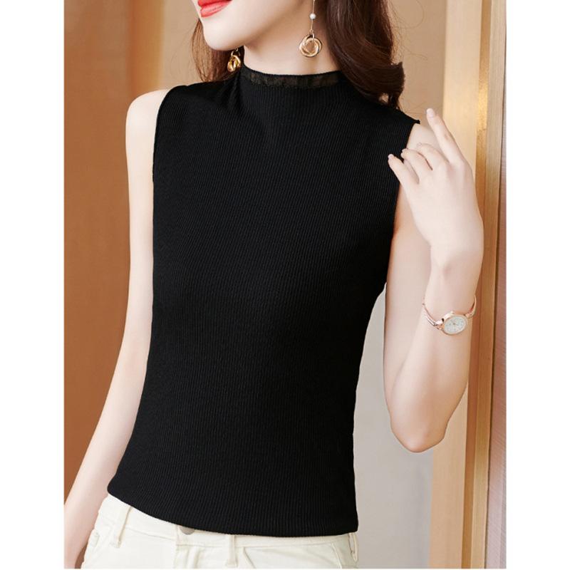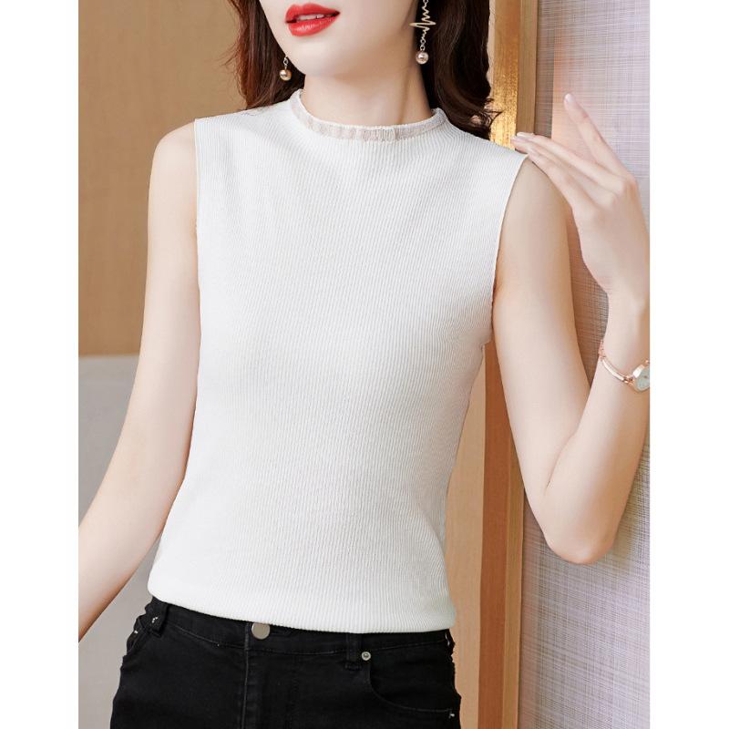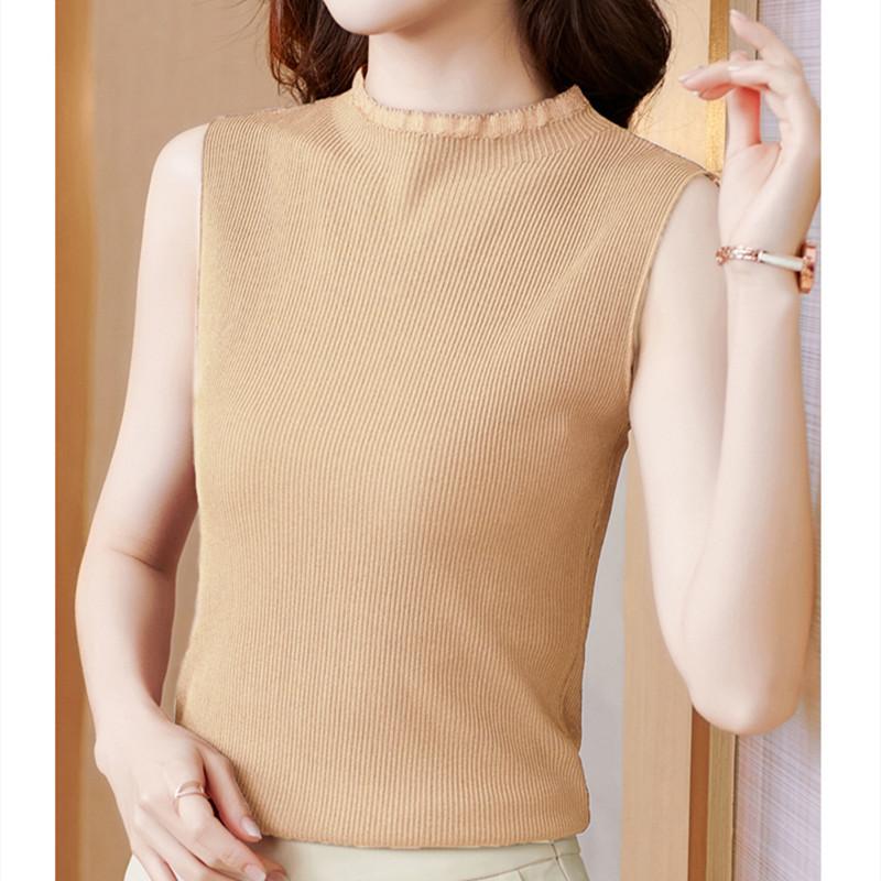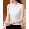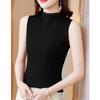 Suéter de cuello alto medio estilo occidental de seda de hielo de verano nuevo, chaleco superior interior y exterior sin mangas de color sólido para mujer