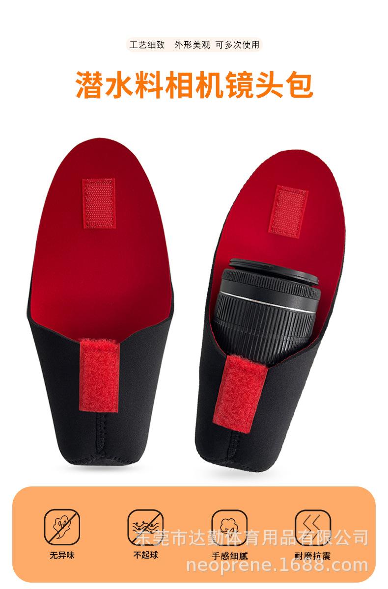 Bolsa para lentes de cámara SLR, tubo para lentes, material de buceo engrosado, bolsa para lentes impermeable y antisísmica, cubierta para lentes roja y negra