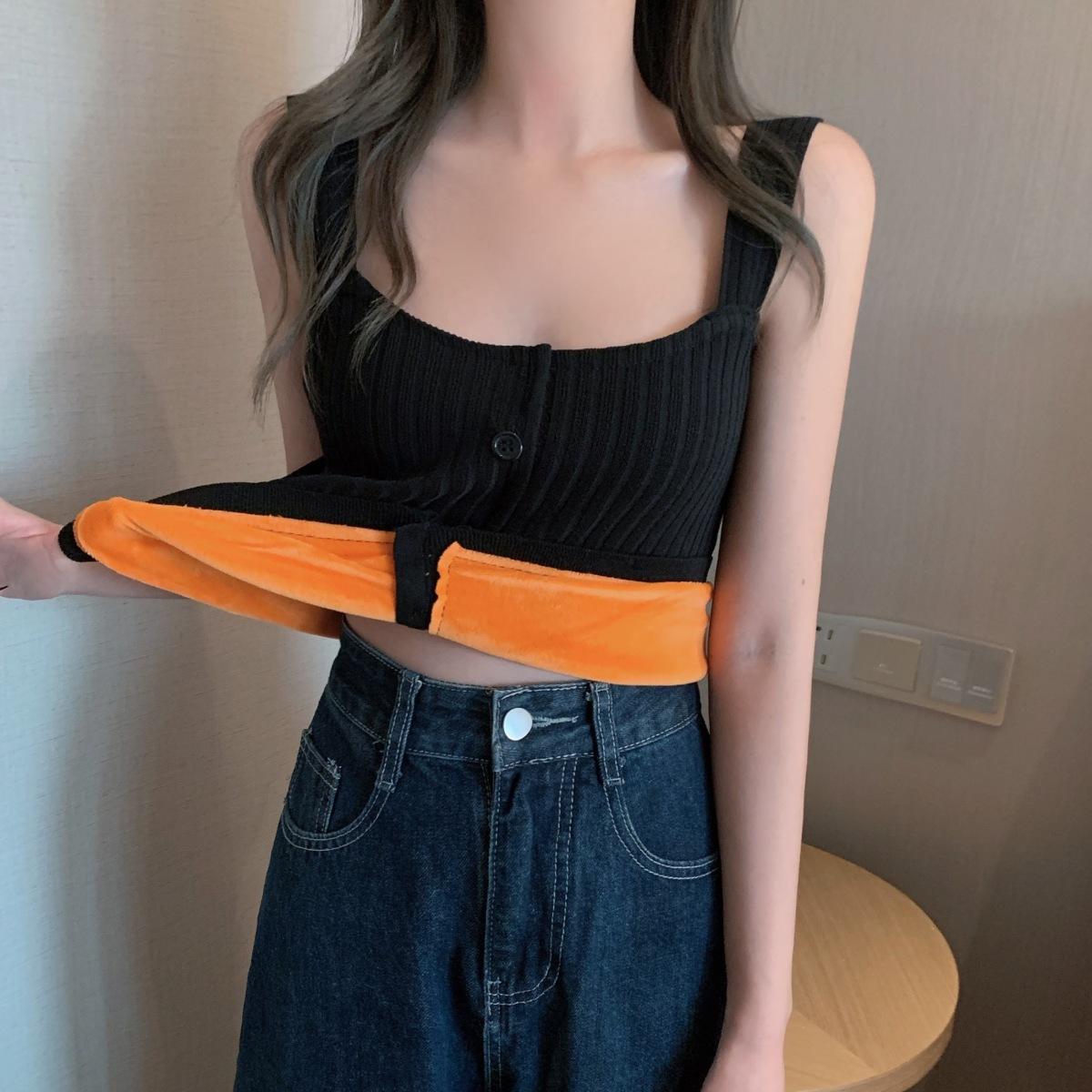 Camisola corta gruesa con forro polar para mujer, nueva prenda exterior con diseño de punto, base interior, moda de primavera y otoño