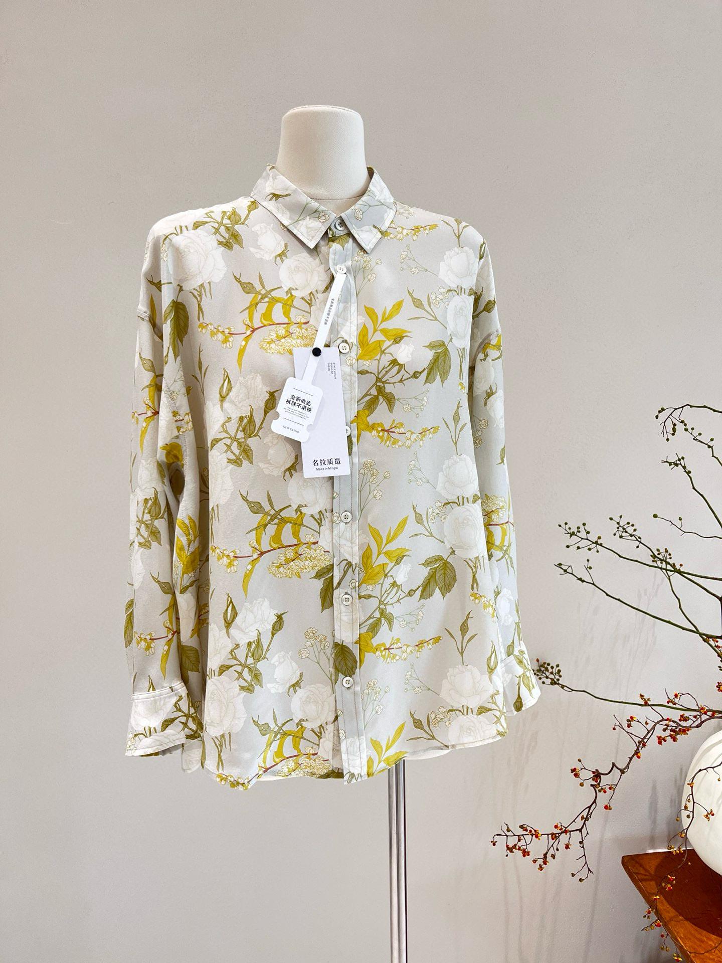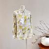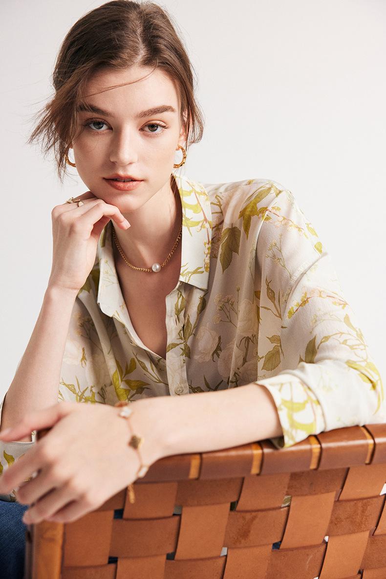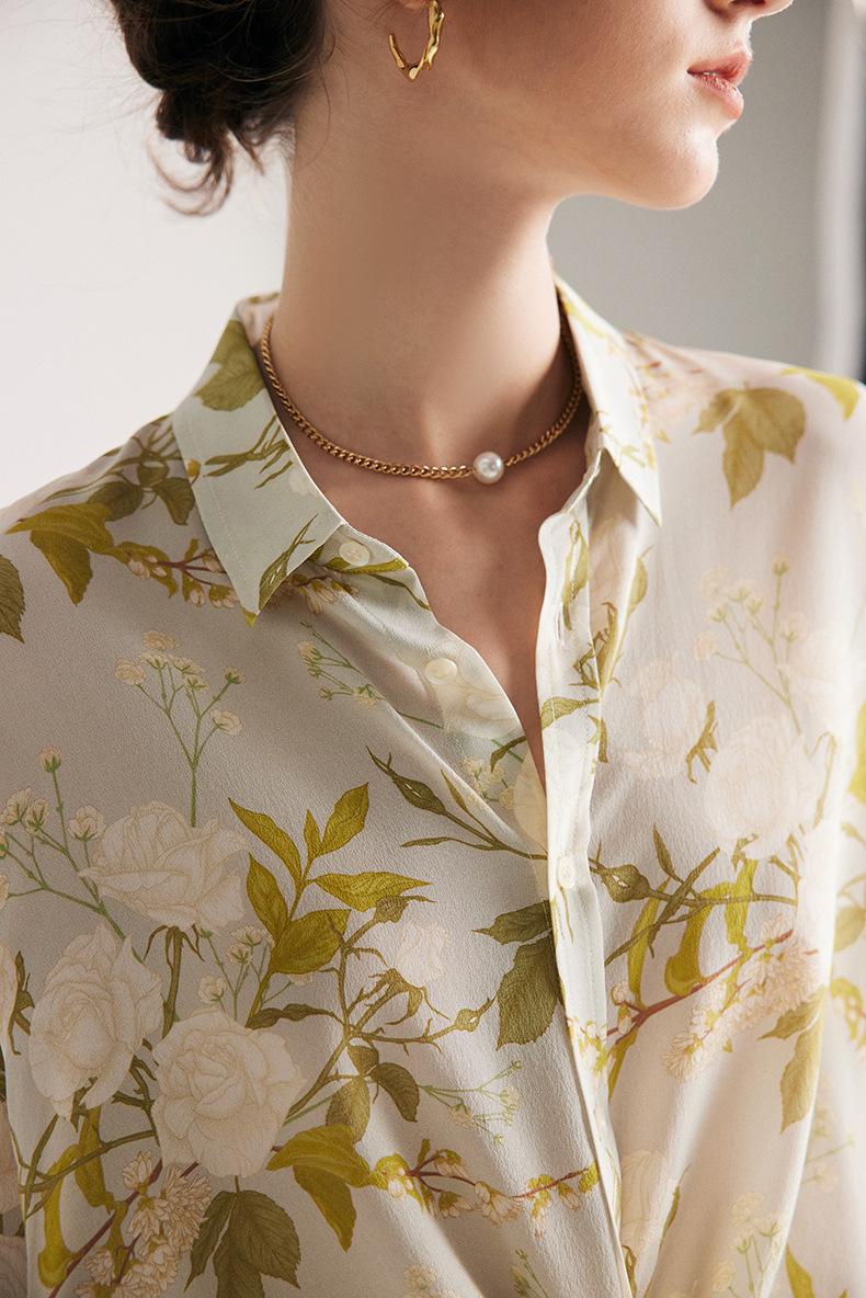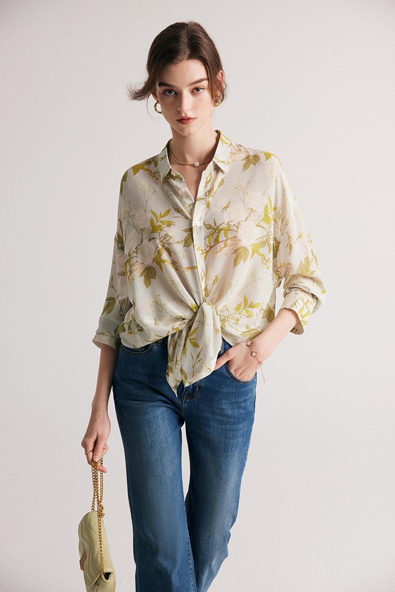 Camisa de Seda para Mujer 2025 Primavera y Verano Nueva Crepé de China Estampado Floral Manga Larga Holgada Manga Murciélago Camisa de Seda de Morera