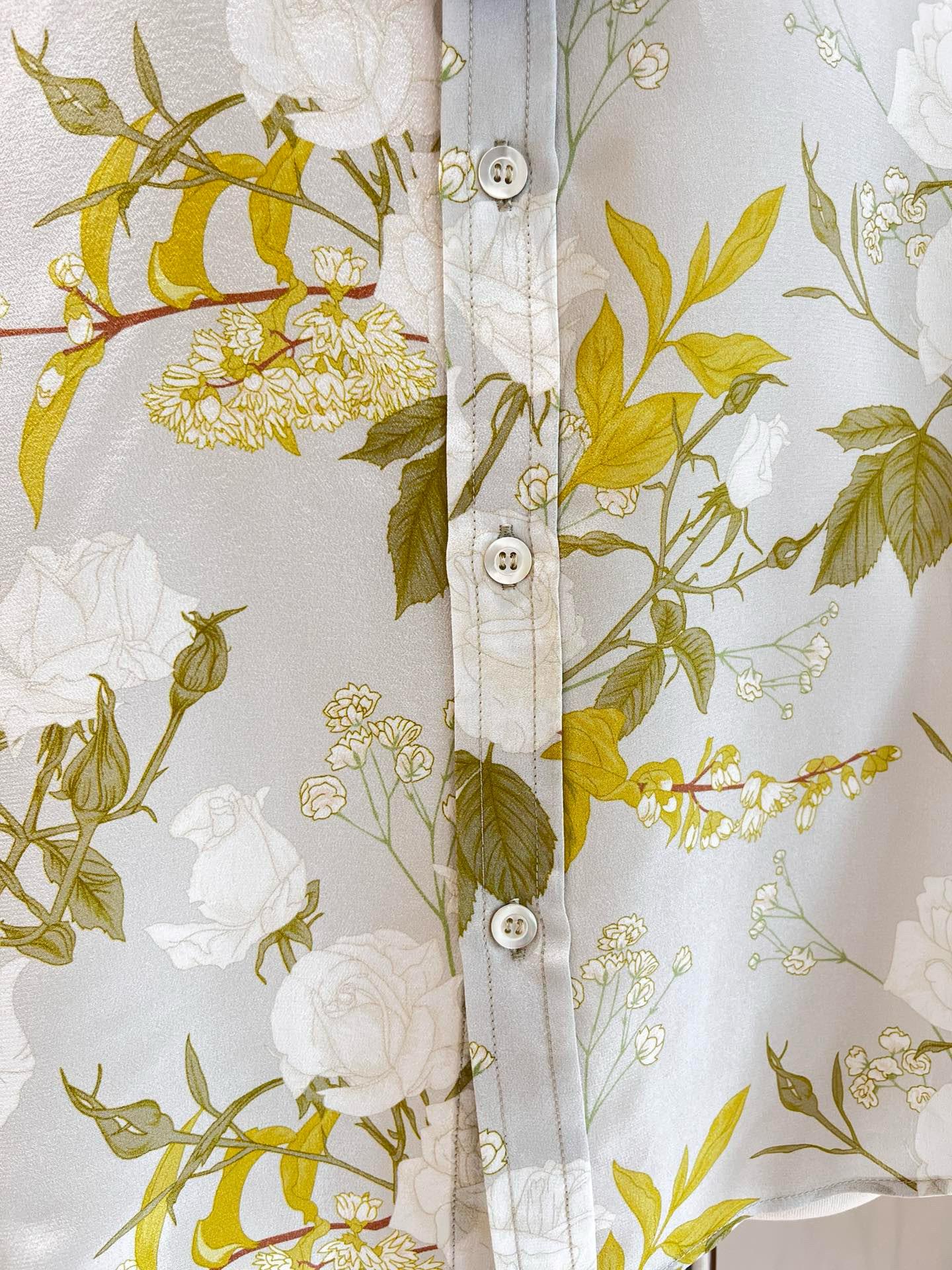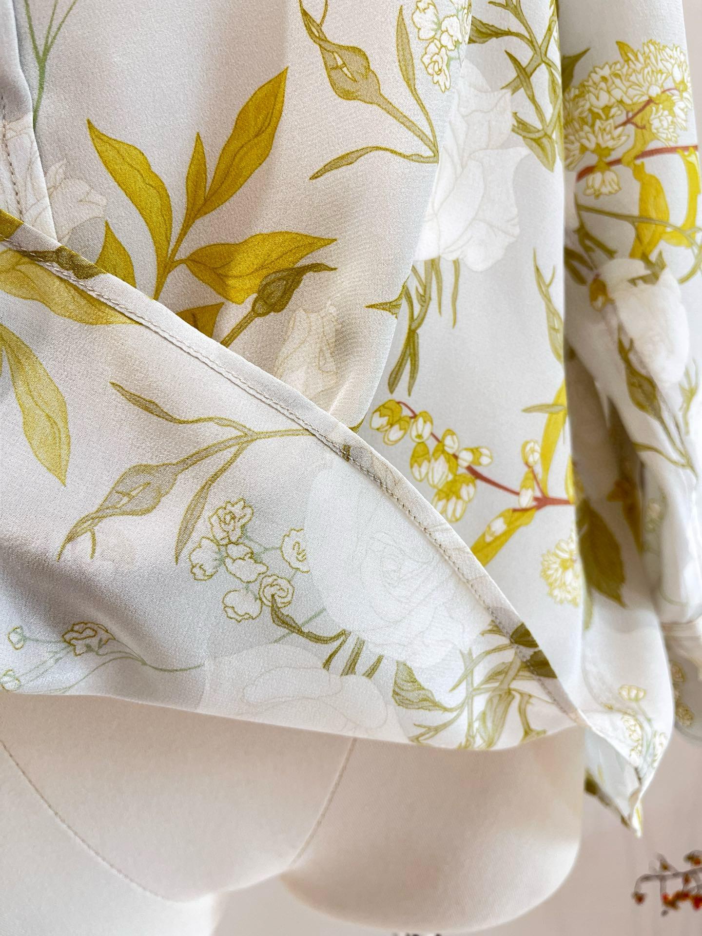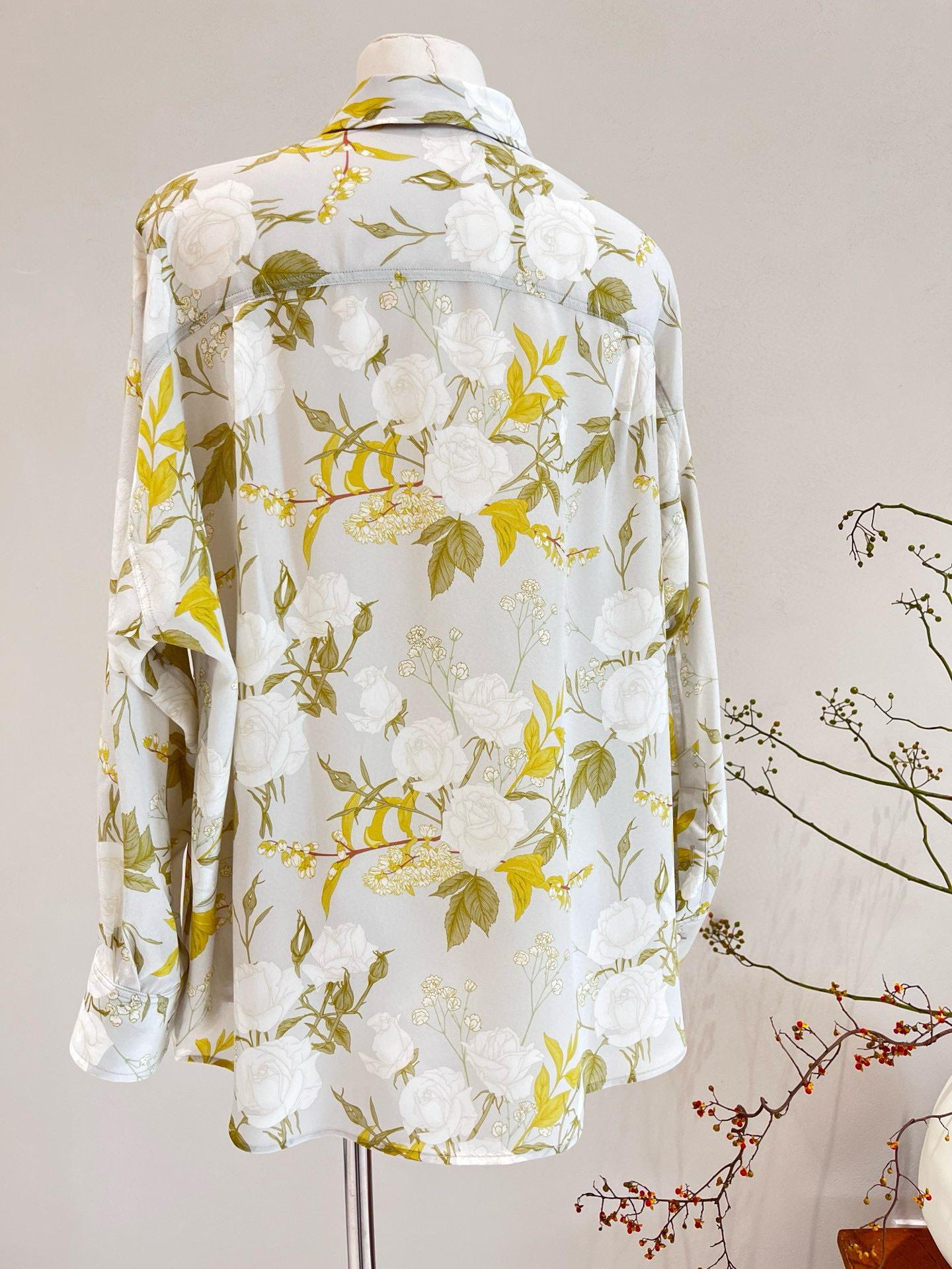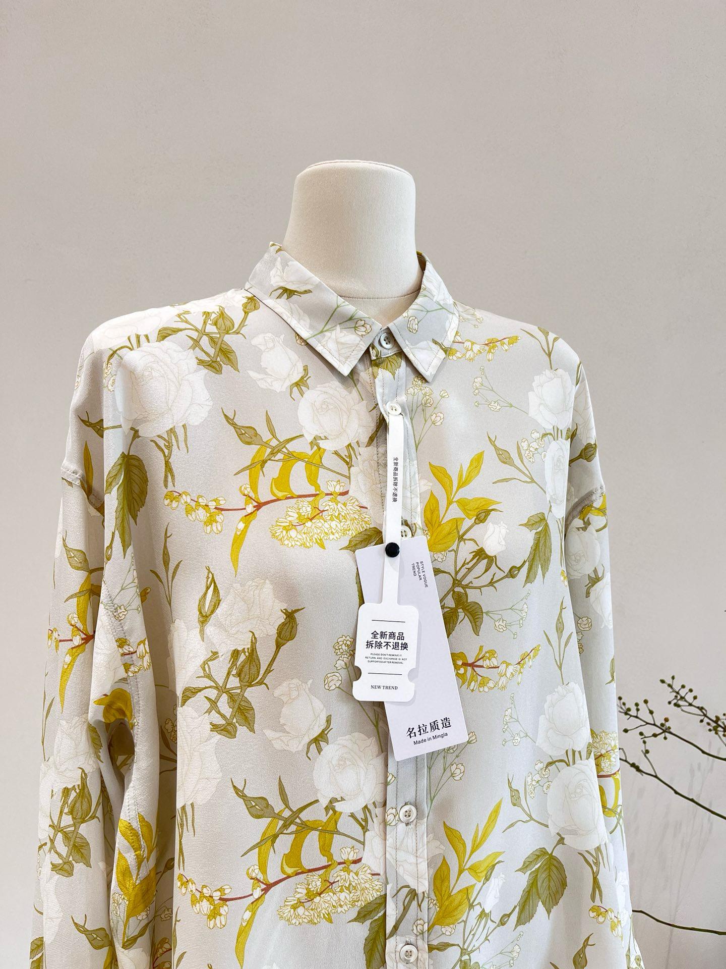 Camisa de Seda para Mujer 2025 Primavera y Verano Nueva Crepé de China Estampado Floral Manga Larga Holgada Manga Murciélago Camisa de Seda de Morera